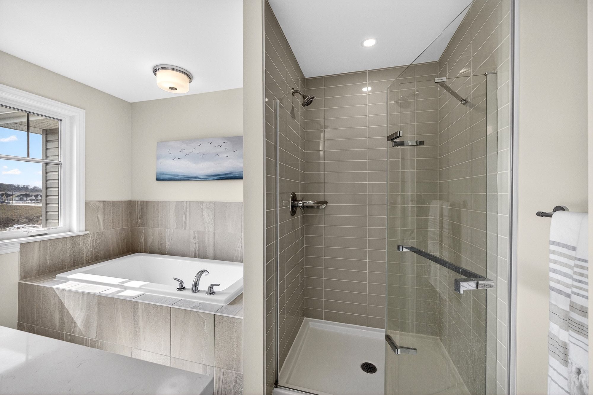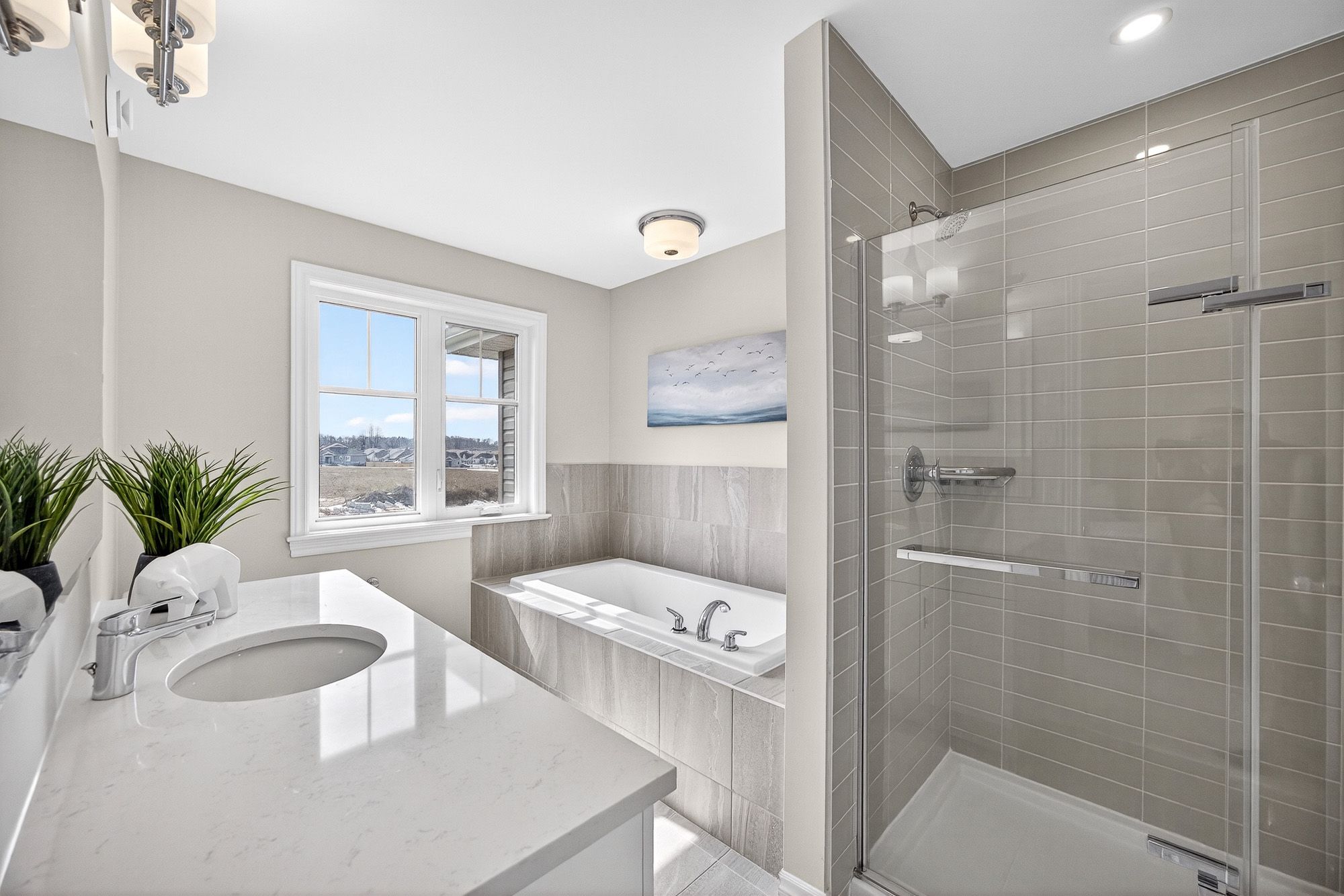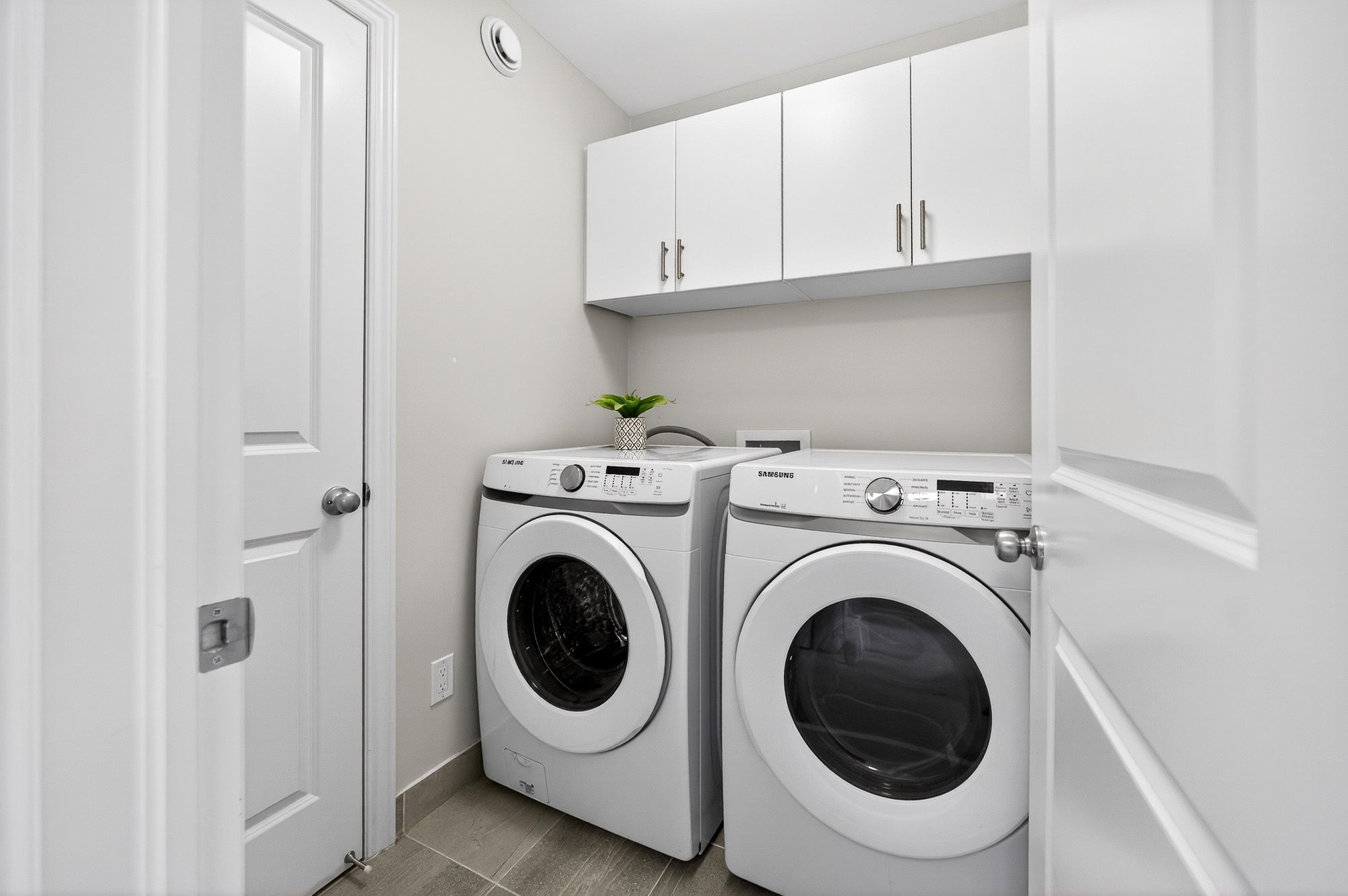 • Modern kitchen with quartz countertops and walk-in pantry for convenience.