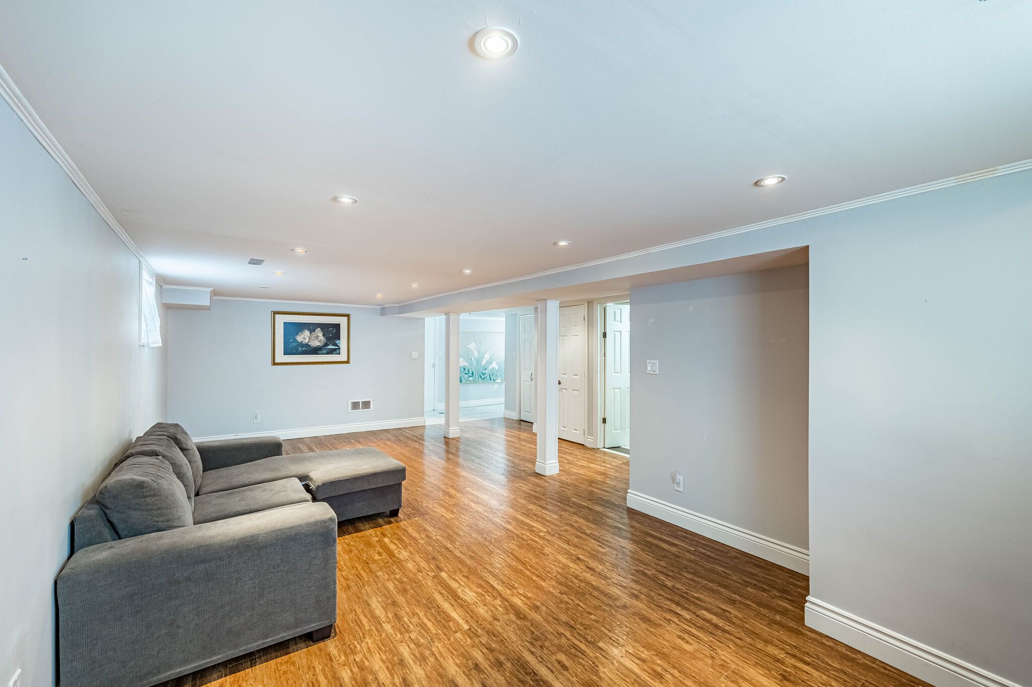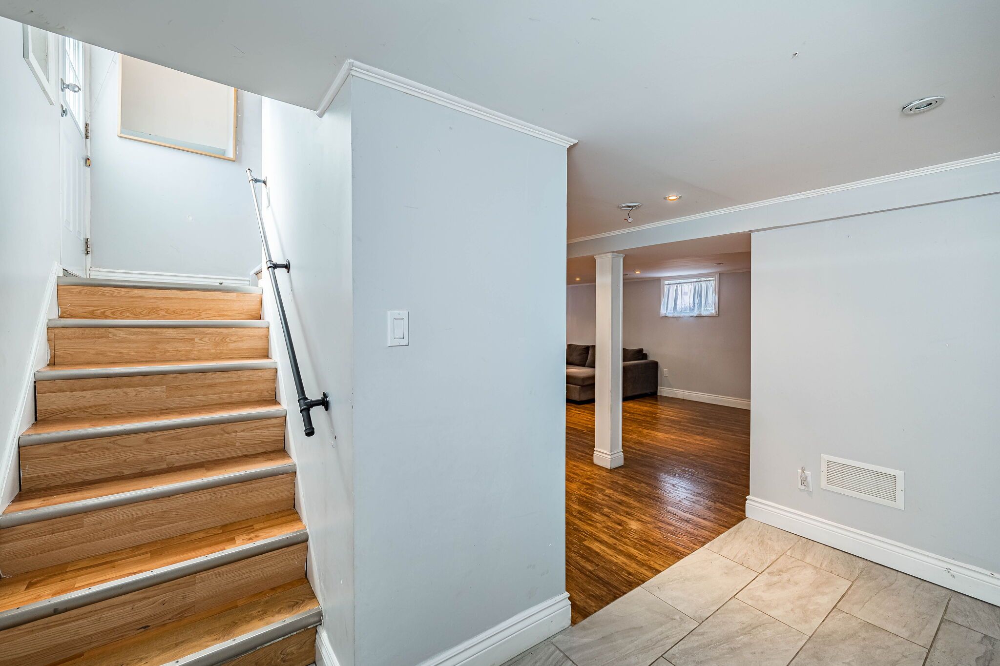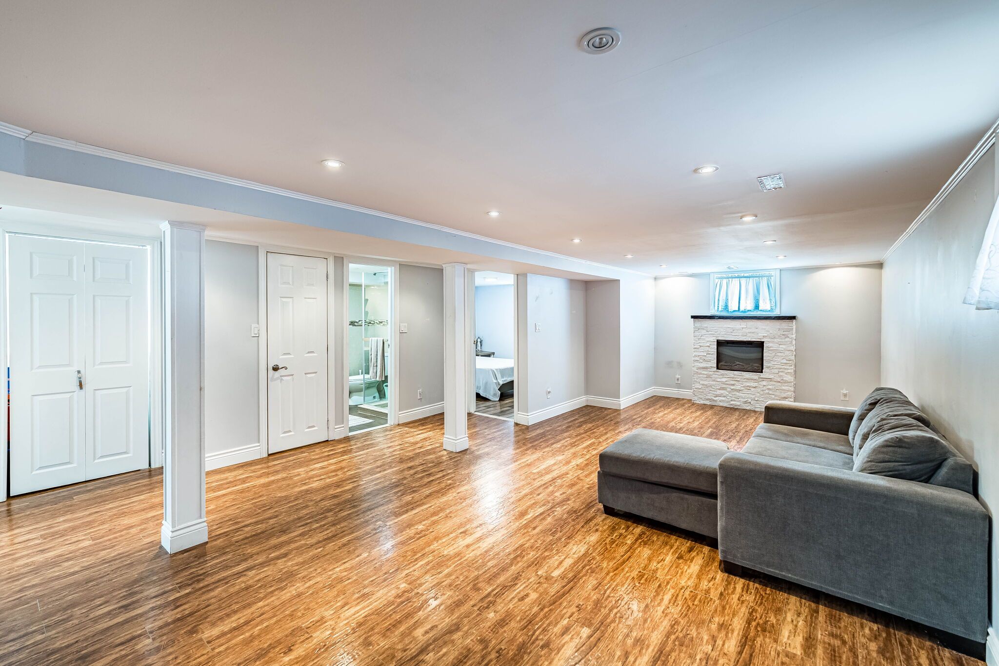 • Finished basement with separate entrance, extra bedroom, and living area.