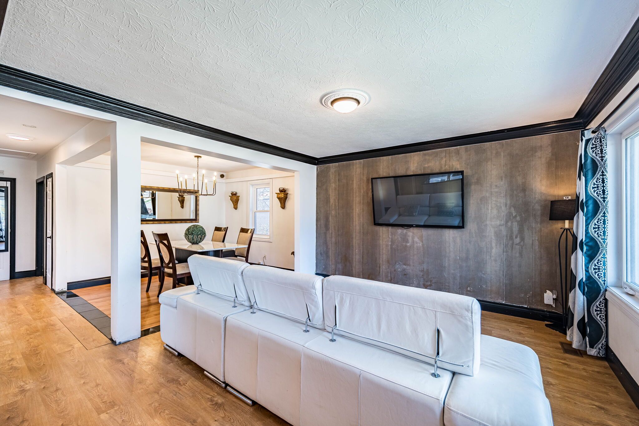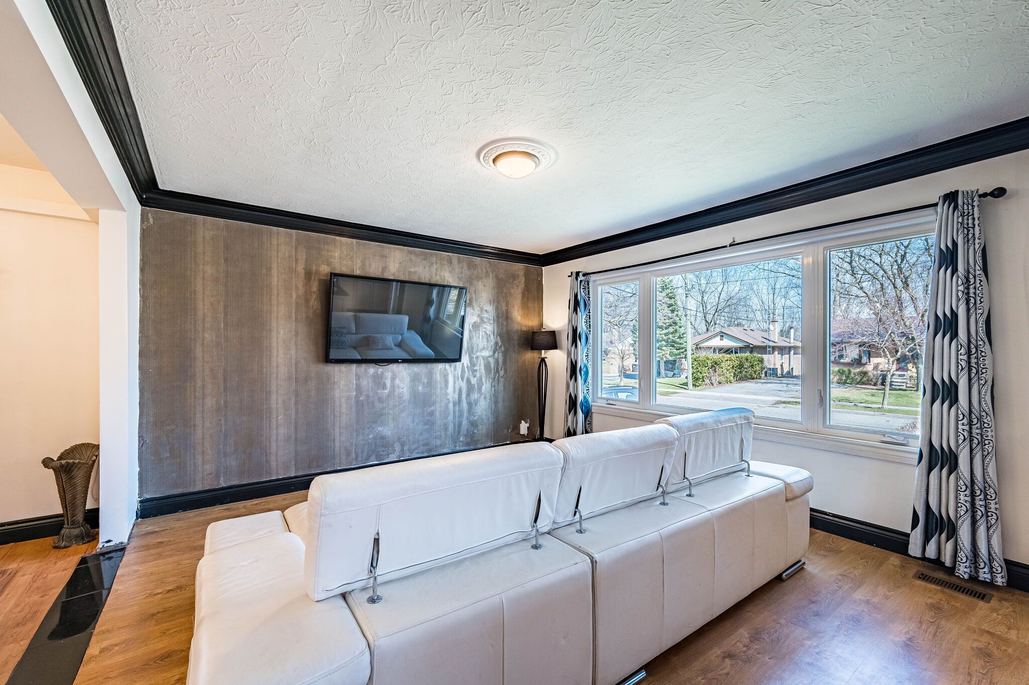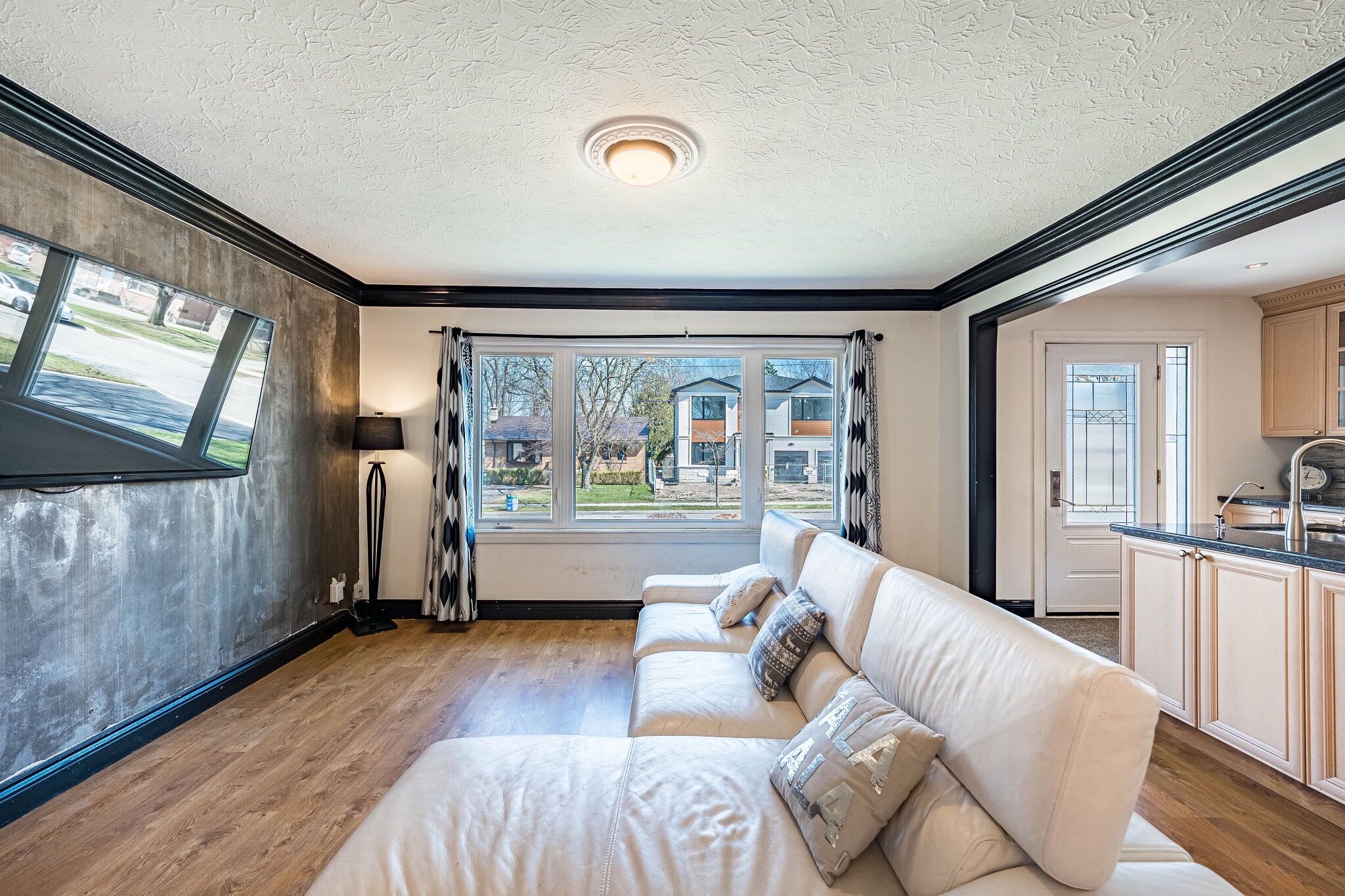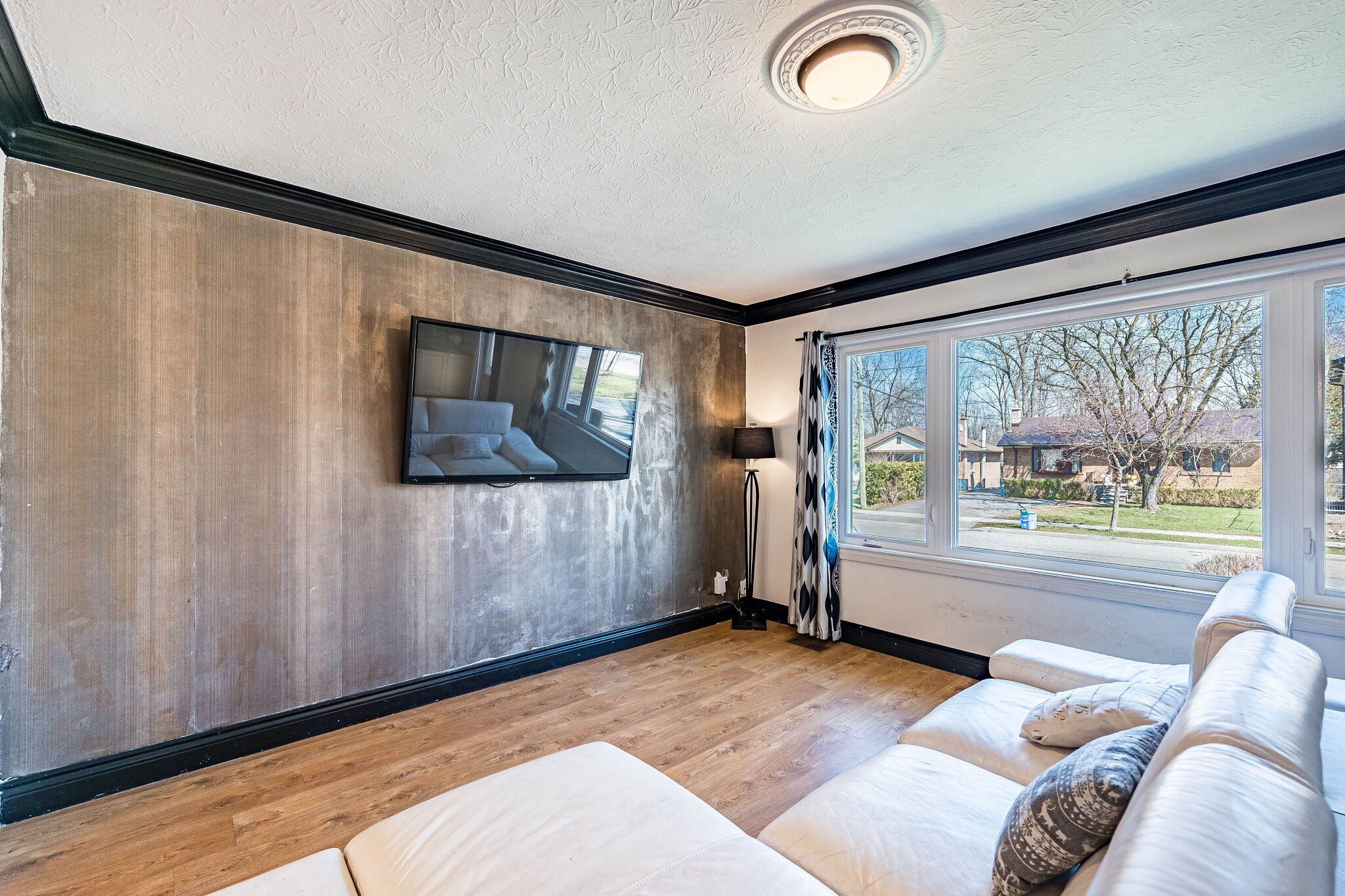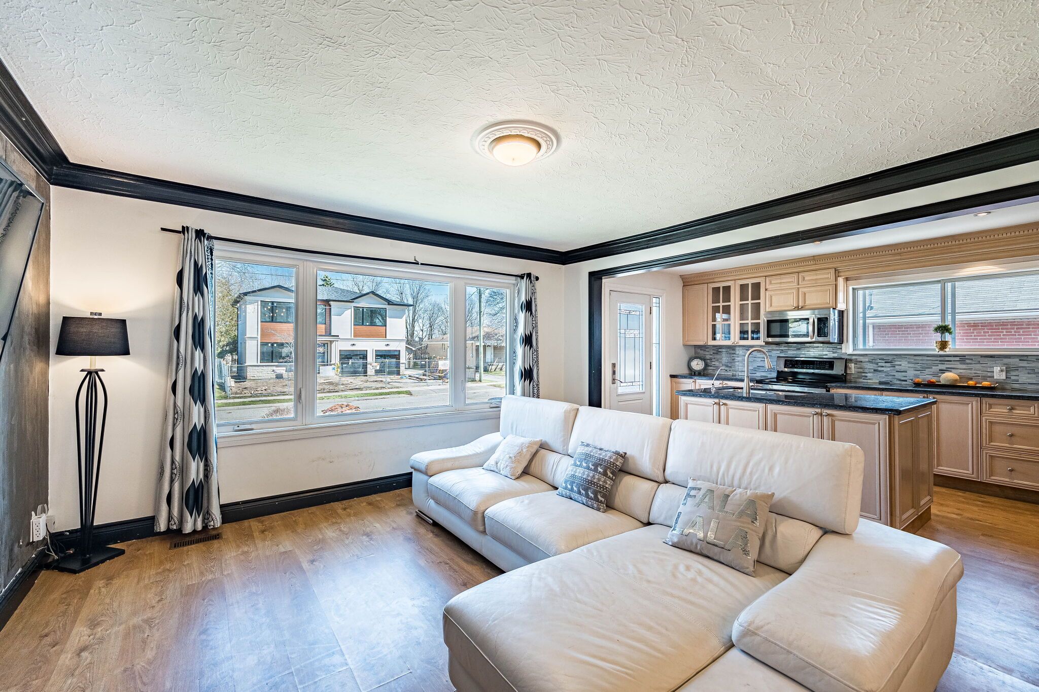 • Bright interior features hardwood floors and large windows for natural light.