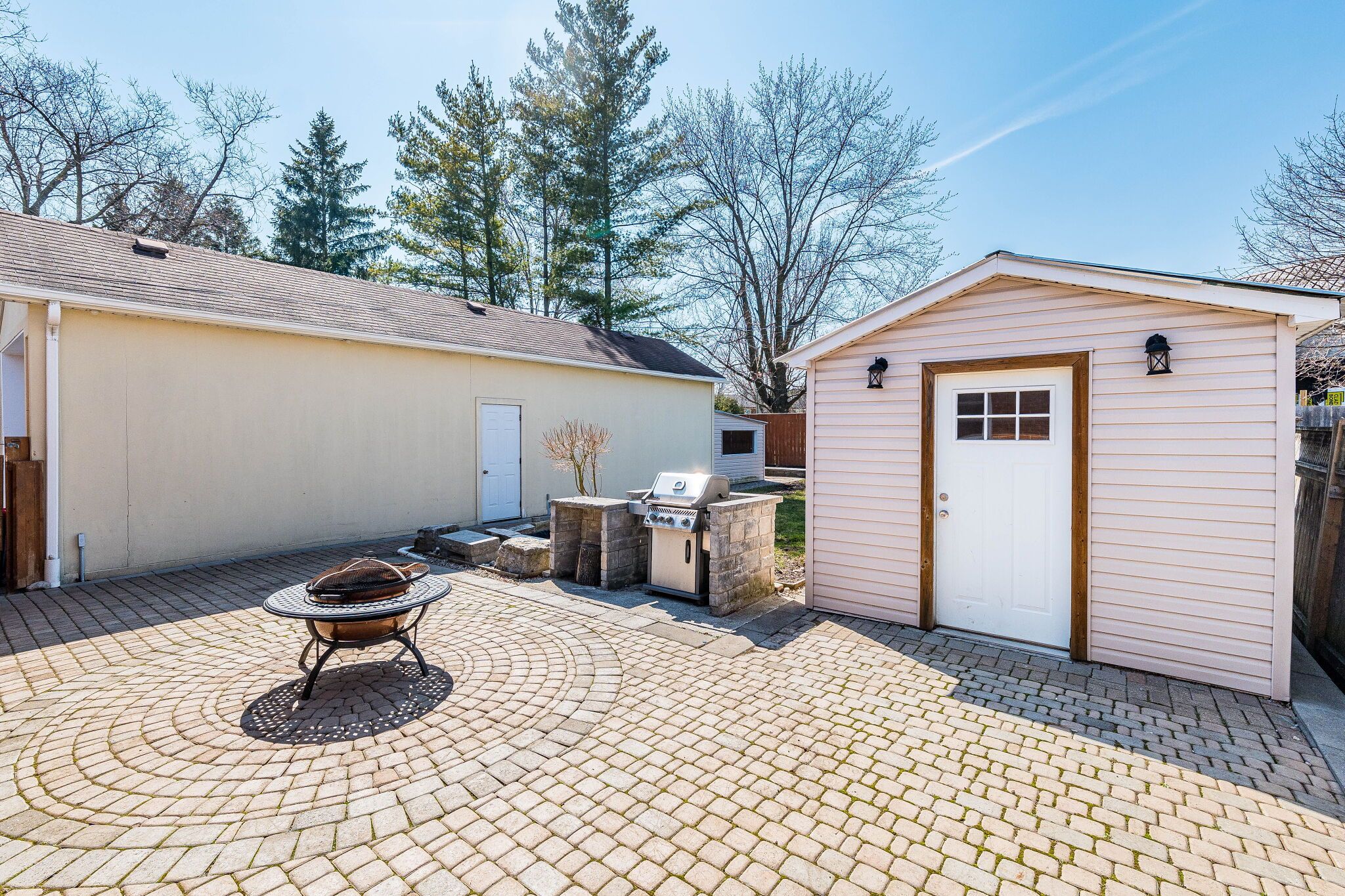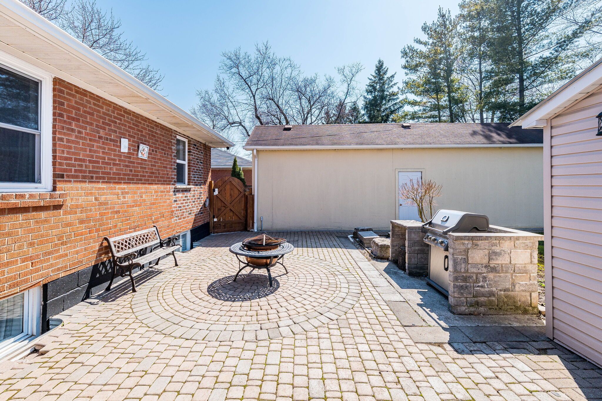 • Private outdoor space with fenced yard, cooking area, and double garage.