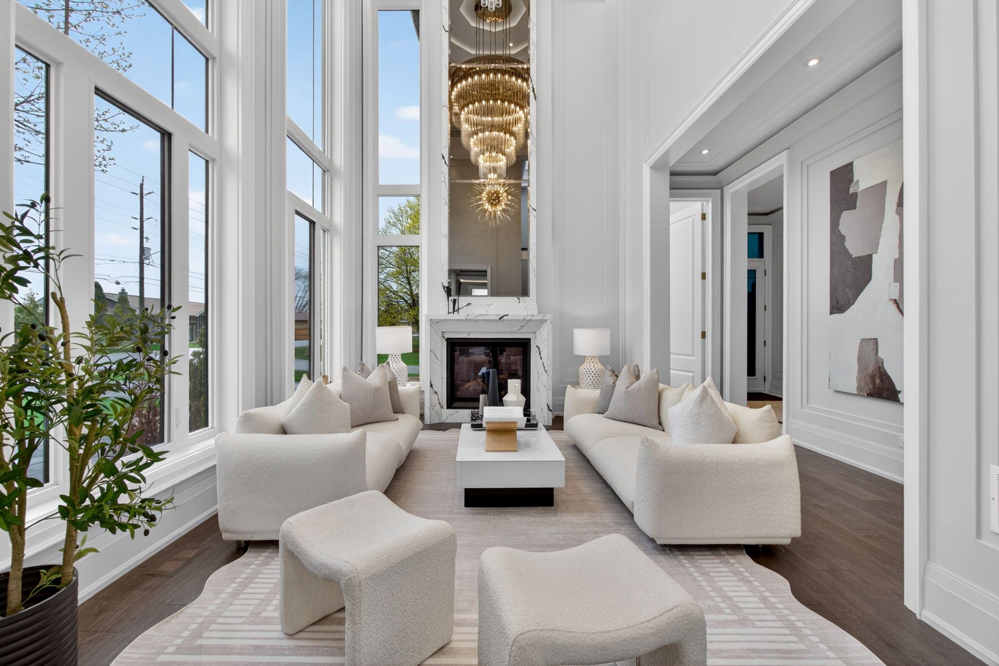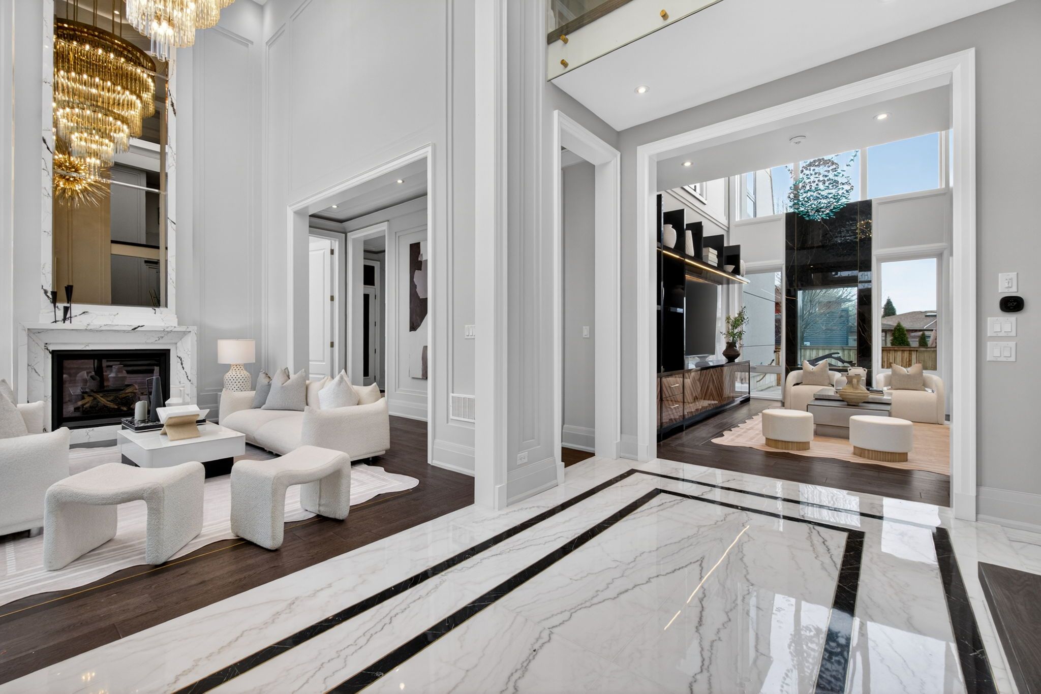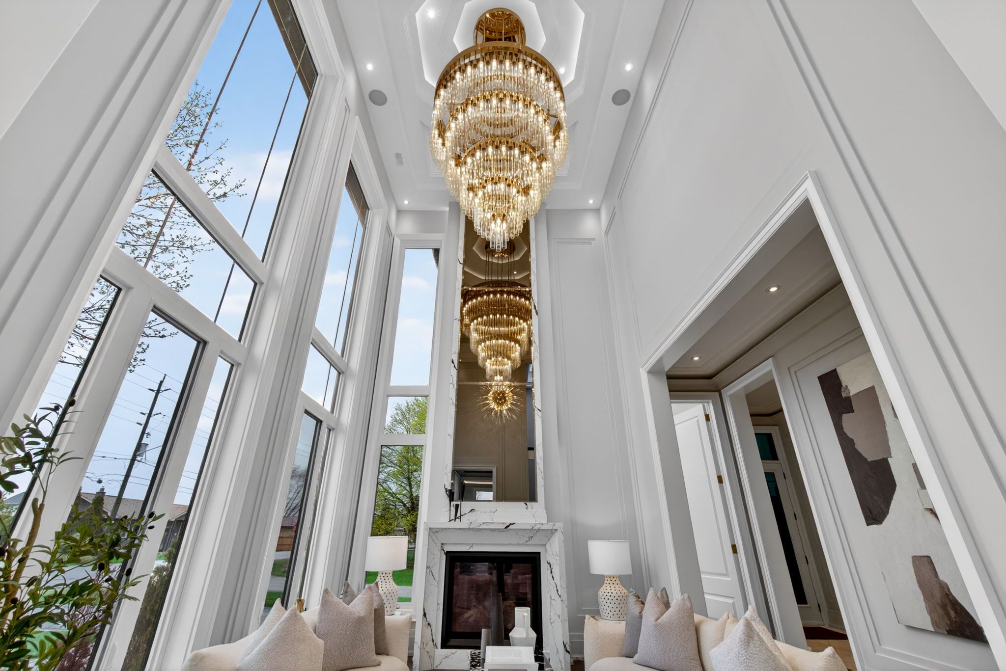 There are homes that impress, & others that linger long after you've left. This newly built oakville estate, inspired by classic european manor design, is unmistakably the latter. From arrival, the façade sets a tone of quiet grandeur, where symmetry is defined by stately columns, arched windows, & intricate stonework, blending timeless craftsmanship w/ modern refinement. A striking dbl glass-door entry welcomes you inside, where nearly 6,000 sqft unfold w/intention & ease. The marble foyer introduces a refined palette that carries through rich hrdwd & granite finishes. Beyond, the living & great rms feature soaring 23' ceilings & expansive walls of glass, filling the home w/natural light & creating a seamless sense of openness. Coffered ceilings w/led cove lighting, built-in speakers, & recessed illumination add a sophisticated contemporary layer throughout. At the heart of the home, the kitchen balances beauty & function w/ built-in appliances, quartz countertops, custom cabinetry, & an oversized isl& designed for gathering & entertaining. The upper lvl is anchored by a skylit hall & seamless glass railings leading to the serene primary suite. Here, a curved sitting area enhances the sense of space, while the spa-inspired ensuite offers marble flrs & walls, a freestanding tub, rainfall shower, & dbl vanity. A custom w/i closet completes the retreat. Bdrms two, three, & four each feature their own ensuite & custom storage. The finished lwr lvl extends the living space with a bdrm, full bath, living area, second kitchen, & walk-up access, ideal for multi-generational living or extended stays. Outdoors, a stone patio, lush green space, & fireplace create an inviting setting, w/ permit already in place for a future pool. Perfectly located mins from the 403, top schools, shopping, & dining, this residence offers both convenience & prestige. A rare blend of timeless elegance & modern luxury, crafted for elevated everyday living.