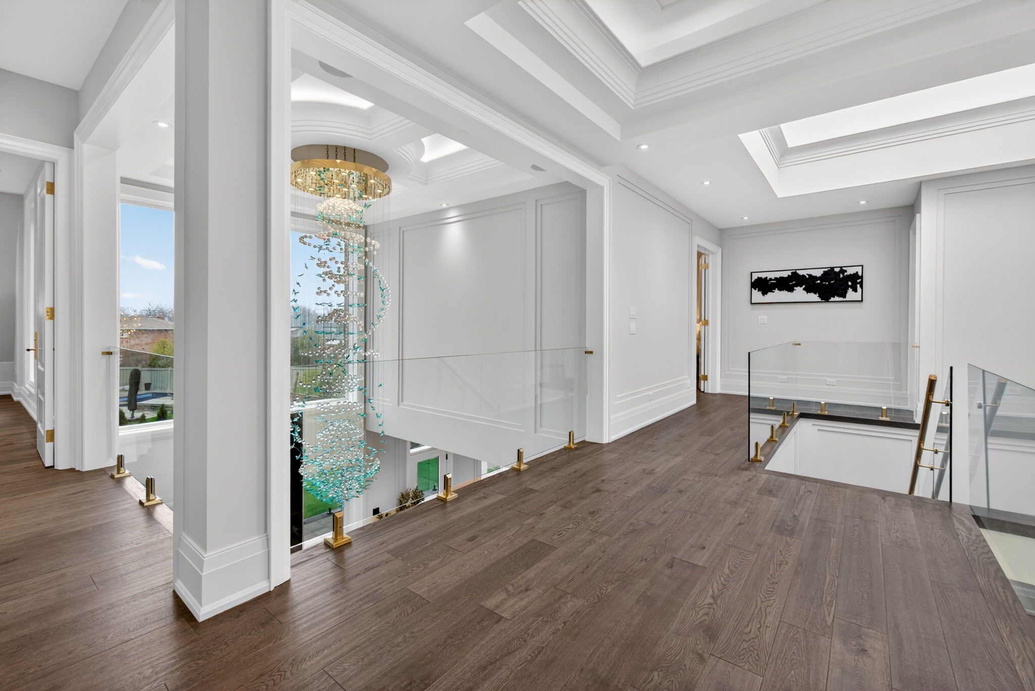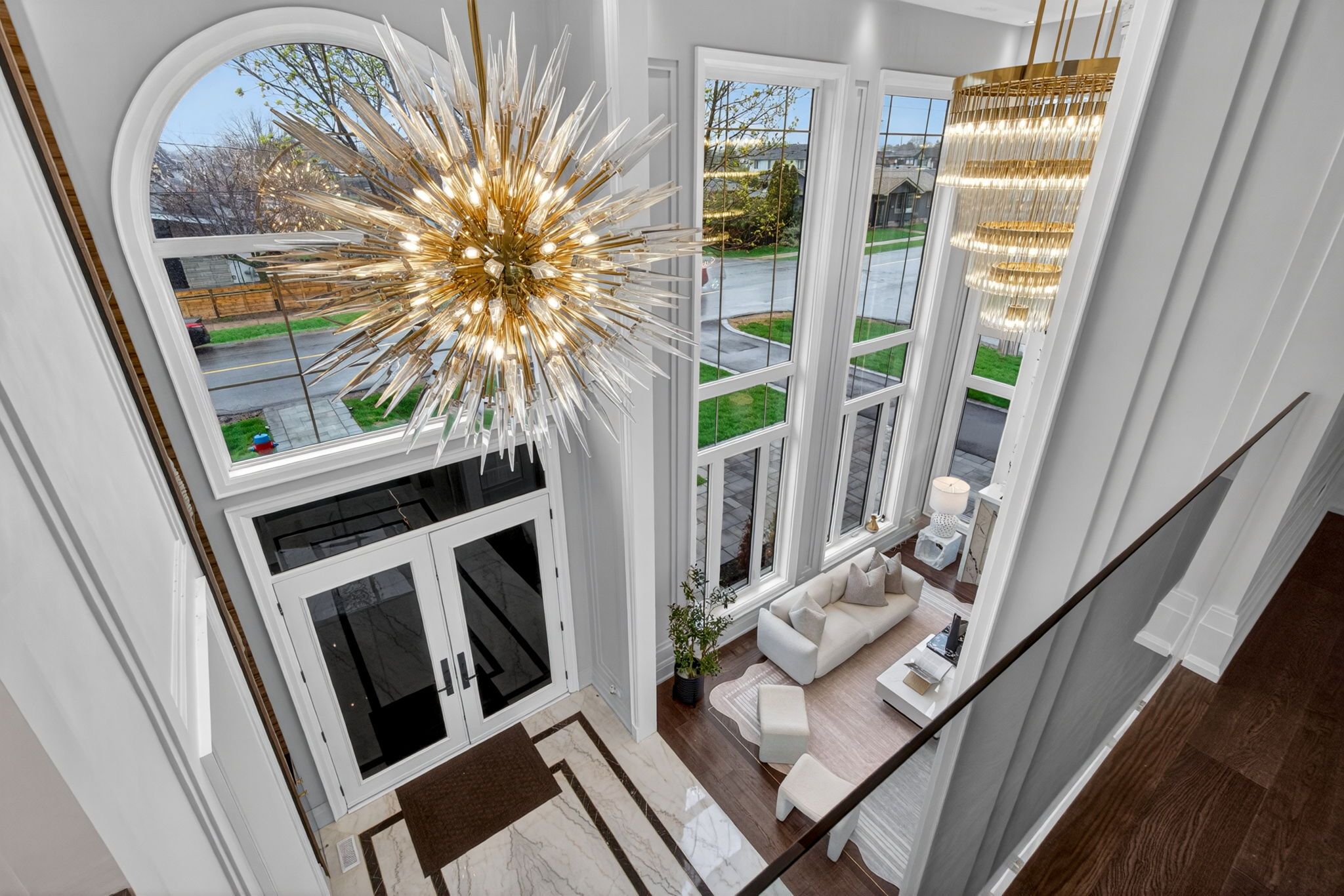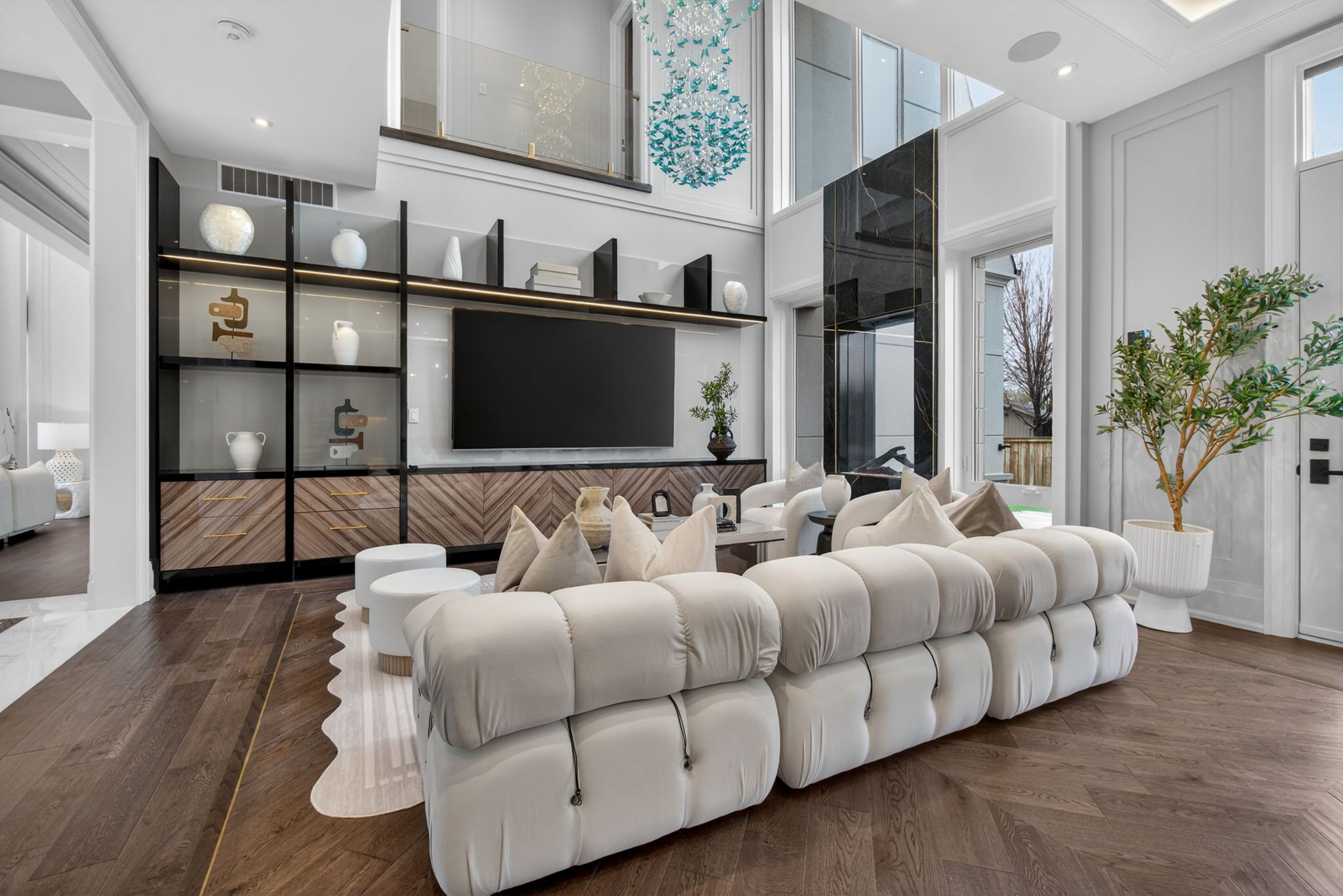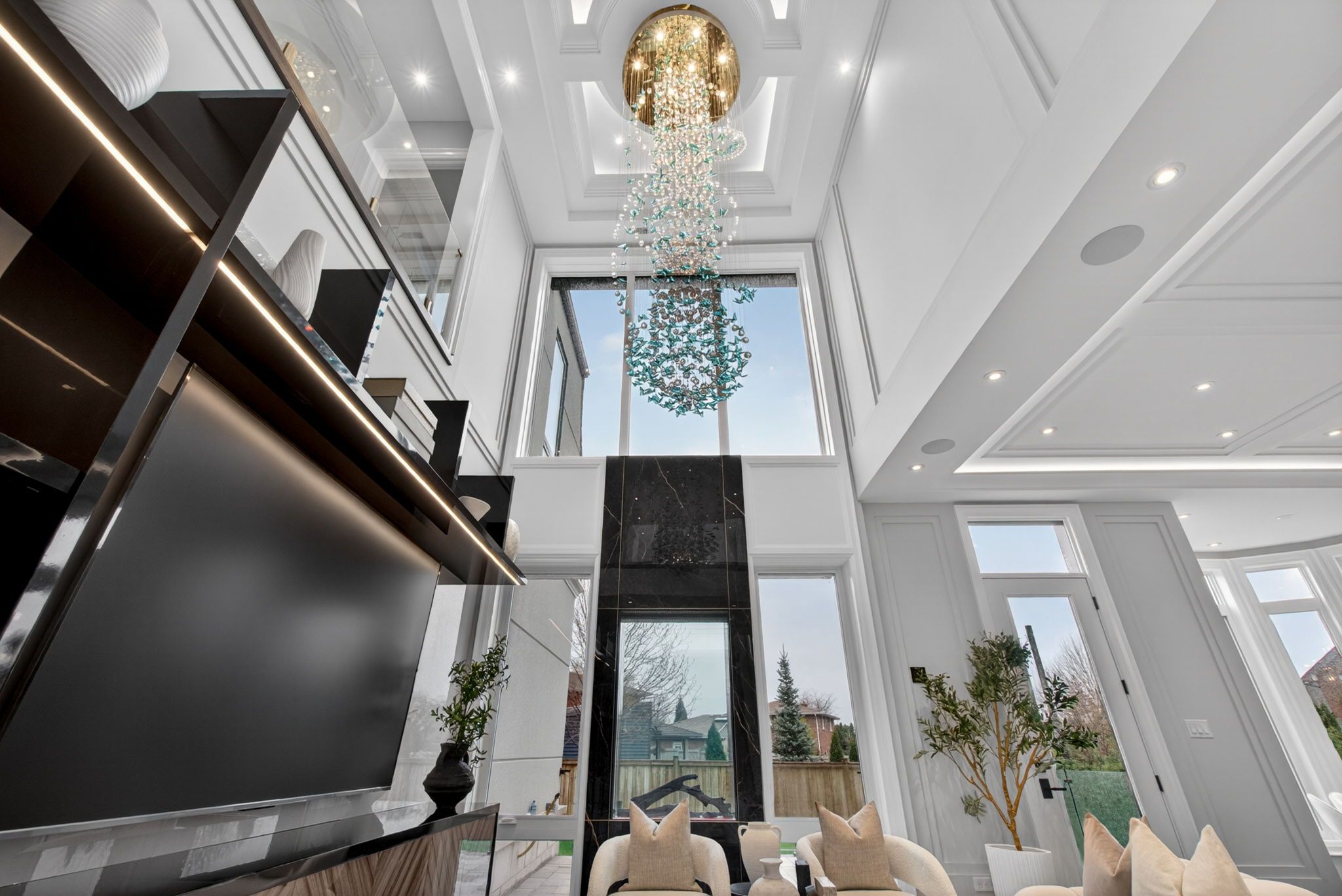 There are homes that impress, & others that linger long after you've left. This newly built oakville estate, inspired by classic european manor design, is unmistakably the latter. From arrival, the façade sets a tone of quiet grandeur, where symmetry is defined by stately columns, arched windows, & intricate stonework, blending timeless craftsmanship w/ modern refinement. A striking dbl glass-door entry welcomes you inside, where nearly 6,000 sqft unfold w/intention & ease. The marble foyer introduces a refined palette that carries through rich hrdwd & granite finishes. Beyond, the living & great rms feature soaring 23' ceilings & expansive walls of glass, filling the home w/natural light & creating a seamless sense of openness. Coffered ceilings w/led cove lighting, built-in speakers, & recessed illumination add a sophisticated contemporary layer throughout. At the heart of the home, the kitchen balances beauty & function w/ built-in appliances, quartz countertops, custom cabinetry, & an oversized isl& designed for gathering & entertaining. The upper lvl is anchored by a skylit hall & seamless glass railings leading to the serene primary suite. Here, a curved sitting area enhances the sense of space, while the spa-inspired ensuite offers marble flrs & walls, a freestanding tub, rainfall shower, & dbl vanity. A custom w/i closet completes the retreat. Bdrms two, three, & four each feature their own ensuite & custom storage. The finished lwr lvl extends the living space with a bdrm, full bath, living area, second kitchen, & walk-up access, ideal for multi-generational living or extended stays. Outdoors, a stone patio, lush green space, & fireplace create an inviting setting, w/ permit already in place for a future pool. Perfectly located mins from the 403, top schools, shopping, & dining, this residence offers both convenience & prestige. A rare blend of timeless elegance & modern luxury, crafted for elevated everyday living.
