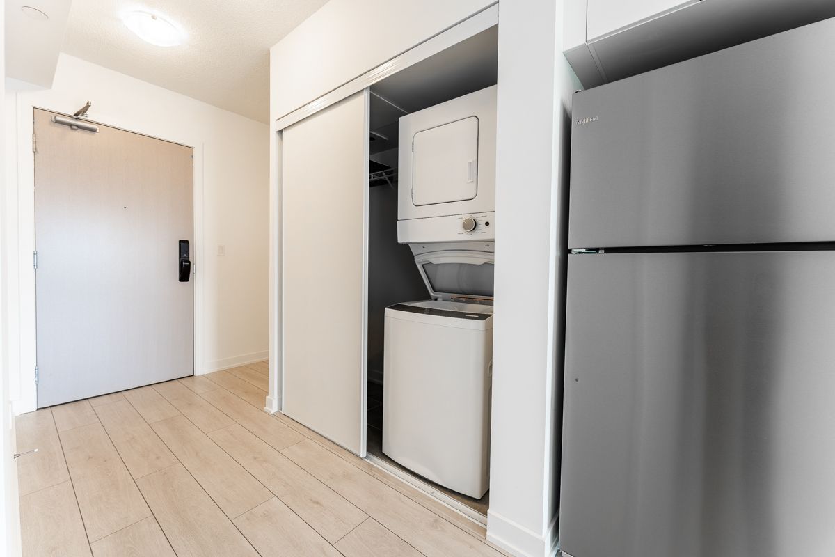 Welcome to the valera one of burlington's most sought-after modern residences. This stunning 1 bedroom +study, 1 bath condo offers a bright, open-concept layout with sleek contemporary finishes throughout. Enjoy acarpet-free interior featuring wide-plank flooring, floor-to-ceiling windows, and a stylish kitchen complete with quartzcountertops and stainless steel appliances. The versatile study space is perfect for a home office or reading nook. Designed for comfort and style, this unit is flooded with natural light and showcases clean lines and modern touchesthroughout. Residents enjoy top-notch amenities including a fully equipped fitness centre, yoga studio, rooftop pooland terrace, party room, concierge service, and more. Located in an unbeatable burlington location close toshopping, dining, transit, major highways, and everyday conveniences. Includes 1 parking space (level b #14) and1 locker (level 1 #41). Move in and experience upscale condo living at the valera.