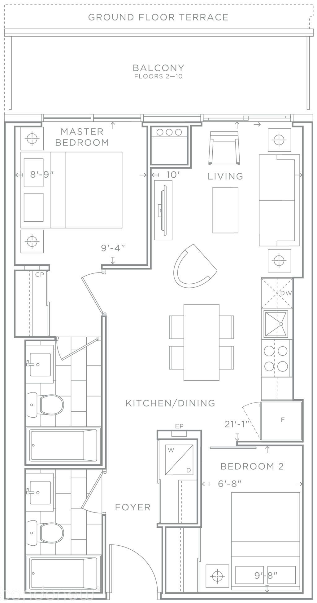 • Spacious 2 bedroom, 2 bathroom unit with plenty of natural light.