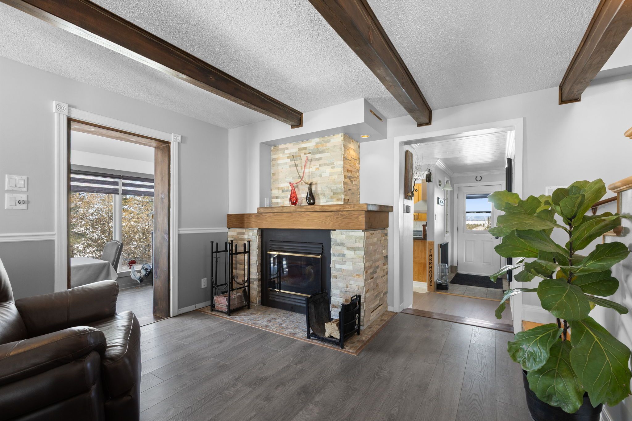 Country living at it's best with this extensively renovated 4 bedroom/2 bathroom century home with gorgeous curb appeal sitting on a14. 86 acre lot surrounded by nature and tranquility. This one of a kind home has been thoughtfully updated from top to bottom while still maintaining some elements of it's original charm such as exposed ceiling beams, solid wood interior doors and decorative windows. The modern exterior has been completely updated with brand new siding (2025), new roof shingles (2023) and an impressive concrete deck with panoramic glass panels allowing for an unobstructed view of the picturesque landscape. The home was lifted and a new concrete foundation was poured (2022) which gives the unspoiled basement 10ft high ceilings, a new 200 amp panel (2022) as well as a rough-in for a 3rd bathroom. The lower level also features a convenient separate entrance and a large cold storage area. Newly installed high grade laminate flooring can be found throughout the main level as well as in the 4 season solarium. A cozy fireplace with a modern ledgestone facade is the focal point of the living area. The updated kitchen comes complete with new countertops, a convenient glass cooktop and dual built-in ovens. A spa like main bathroom which features an oversized soaker tub as well as a seperate shower with jets and rain shower head can also be found on the main level along with a spacious master bedroom retreat. The second level boasts 3 bedrooms plus a convenient loft as well as a brand new bathroom with modern glass shower (2025). This home is ideal for those seeking a peaceful retreat embracing their homesteading lifestyle surrounded by fruit trees, acres and acres of land as well as your very own plantation with silver maples, white spruce and tamarack trees. This is a special home with so much to offer conveniently located just minutes away from alfred and 15 mins from hawkesbury.