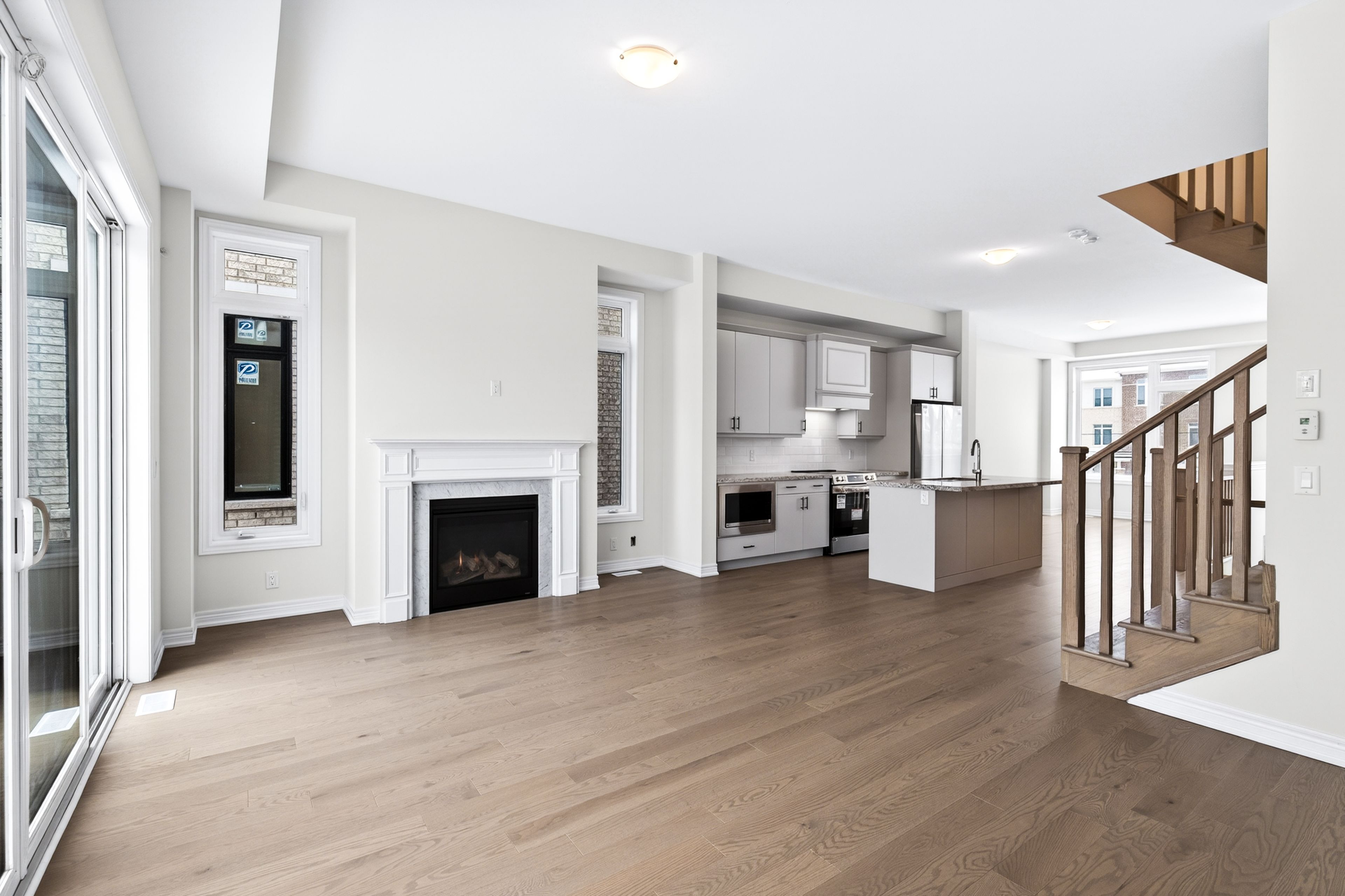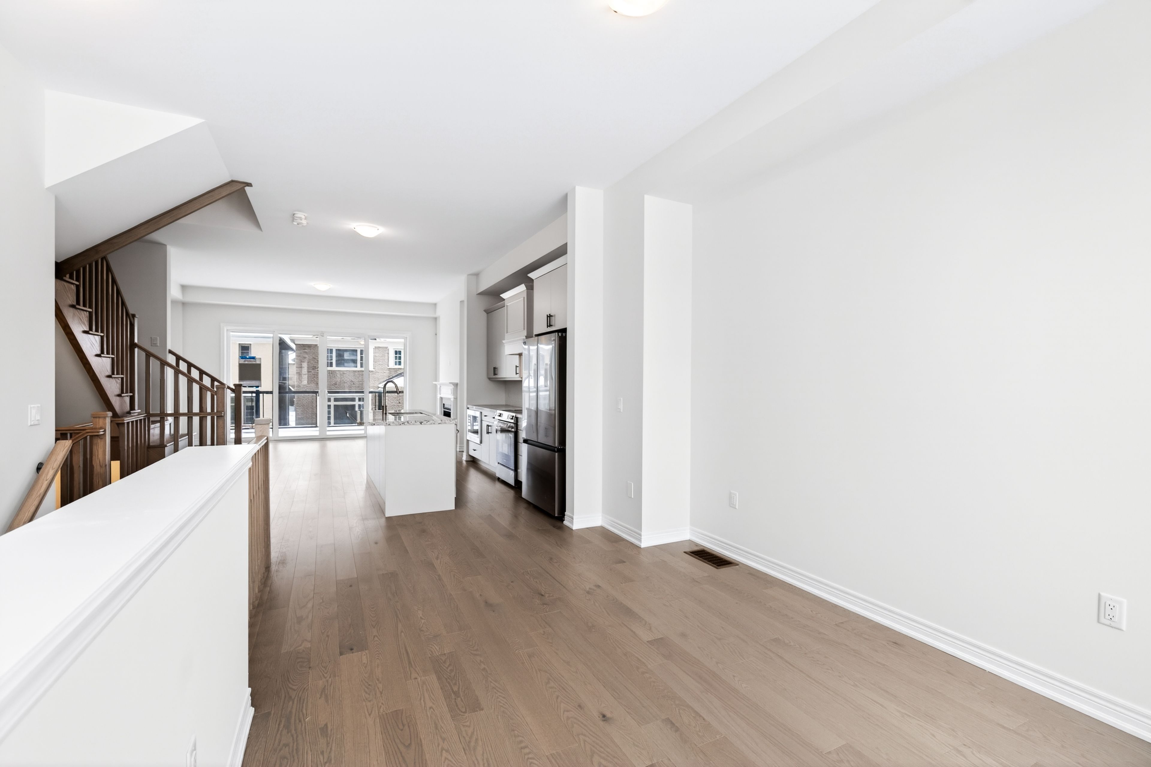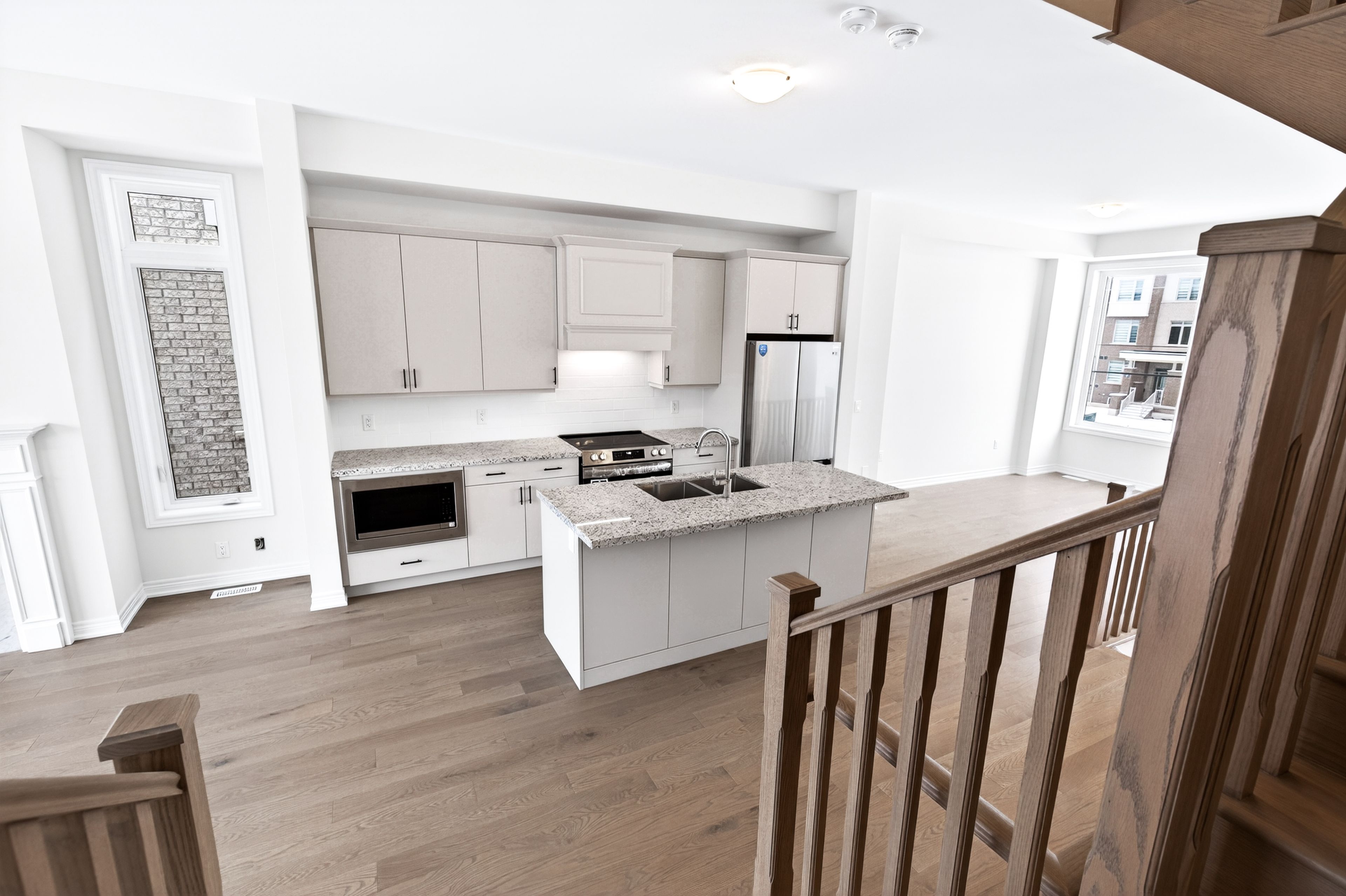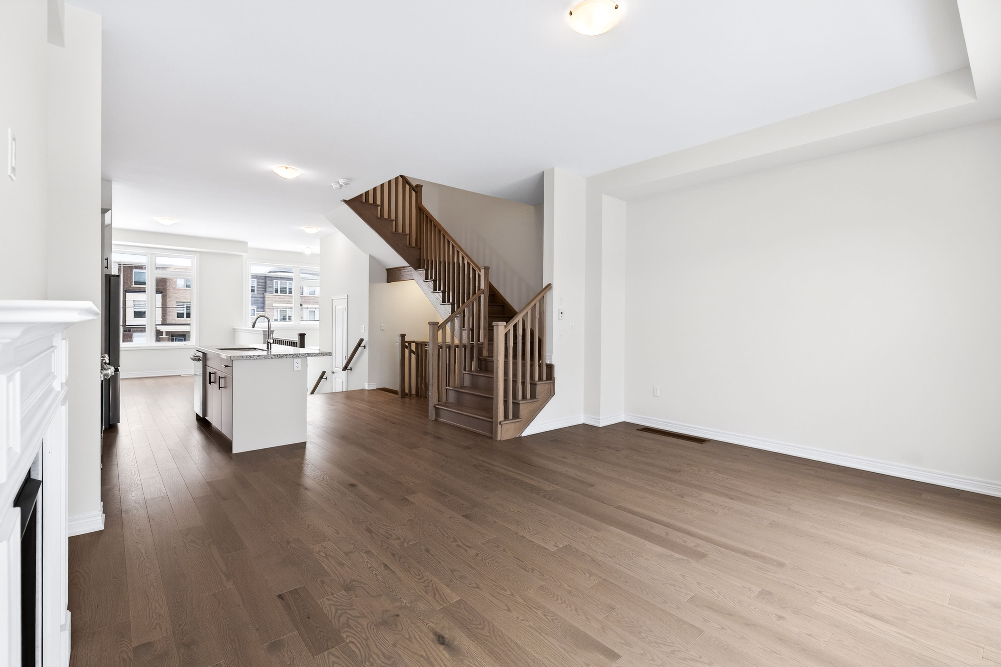 • Functional open-concept layout with a modern kitchen and large island.