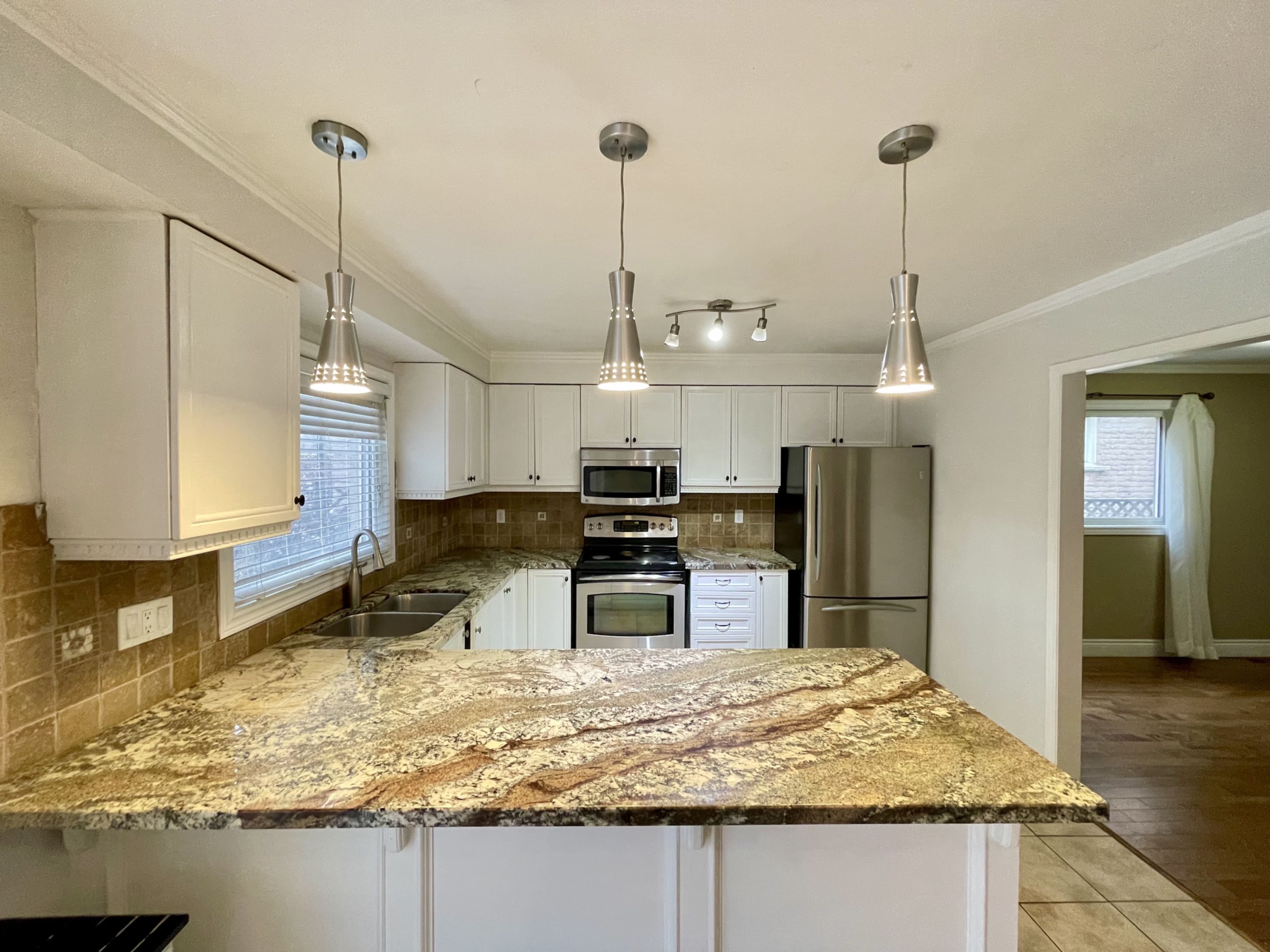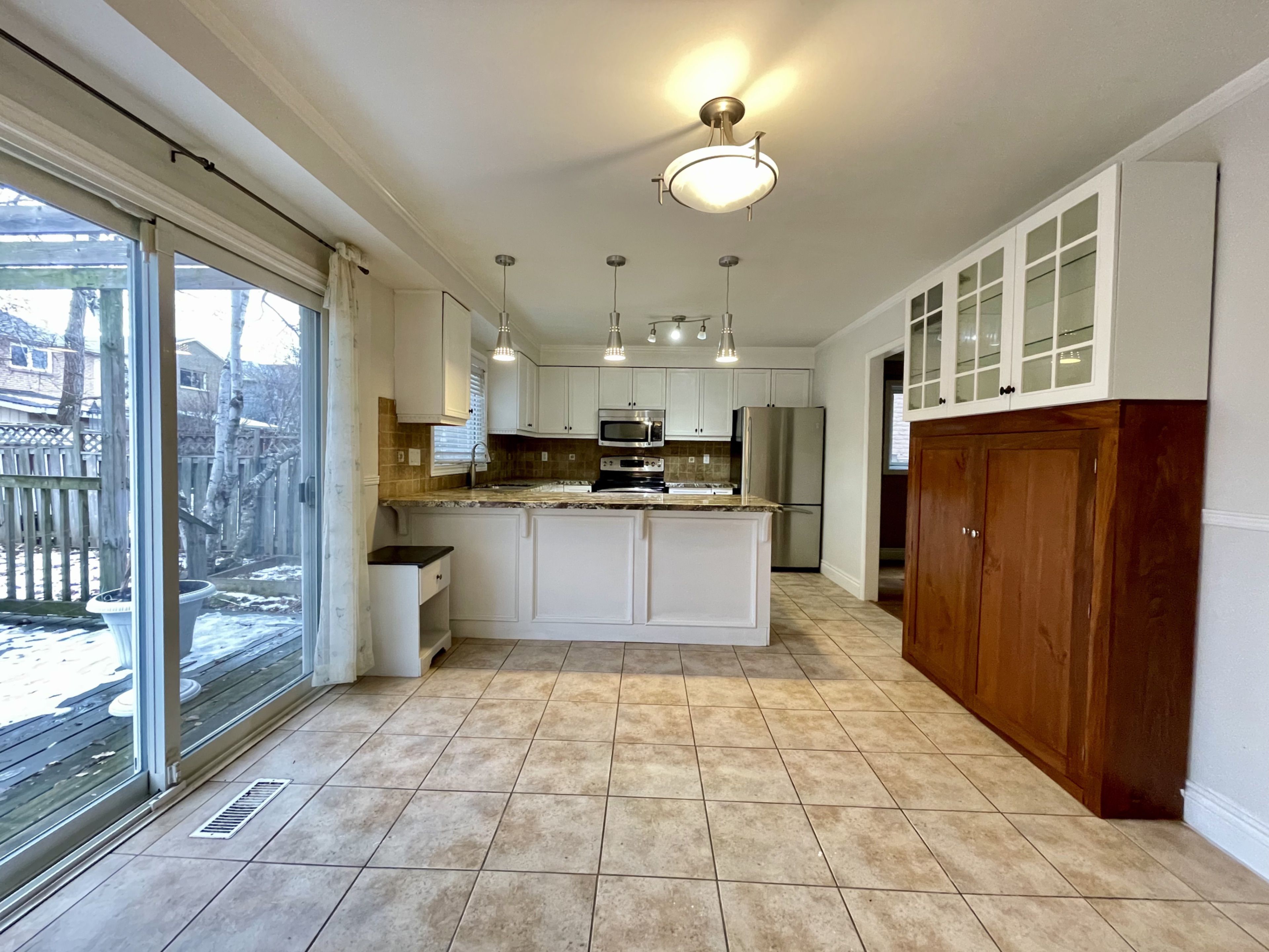 • Beautiful eat-in kitchen with granite countertops and a walk-out to the backyard.