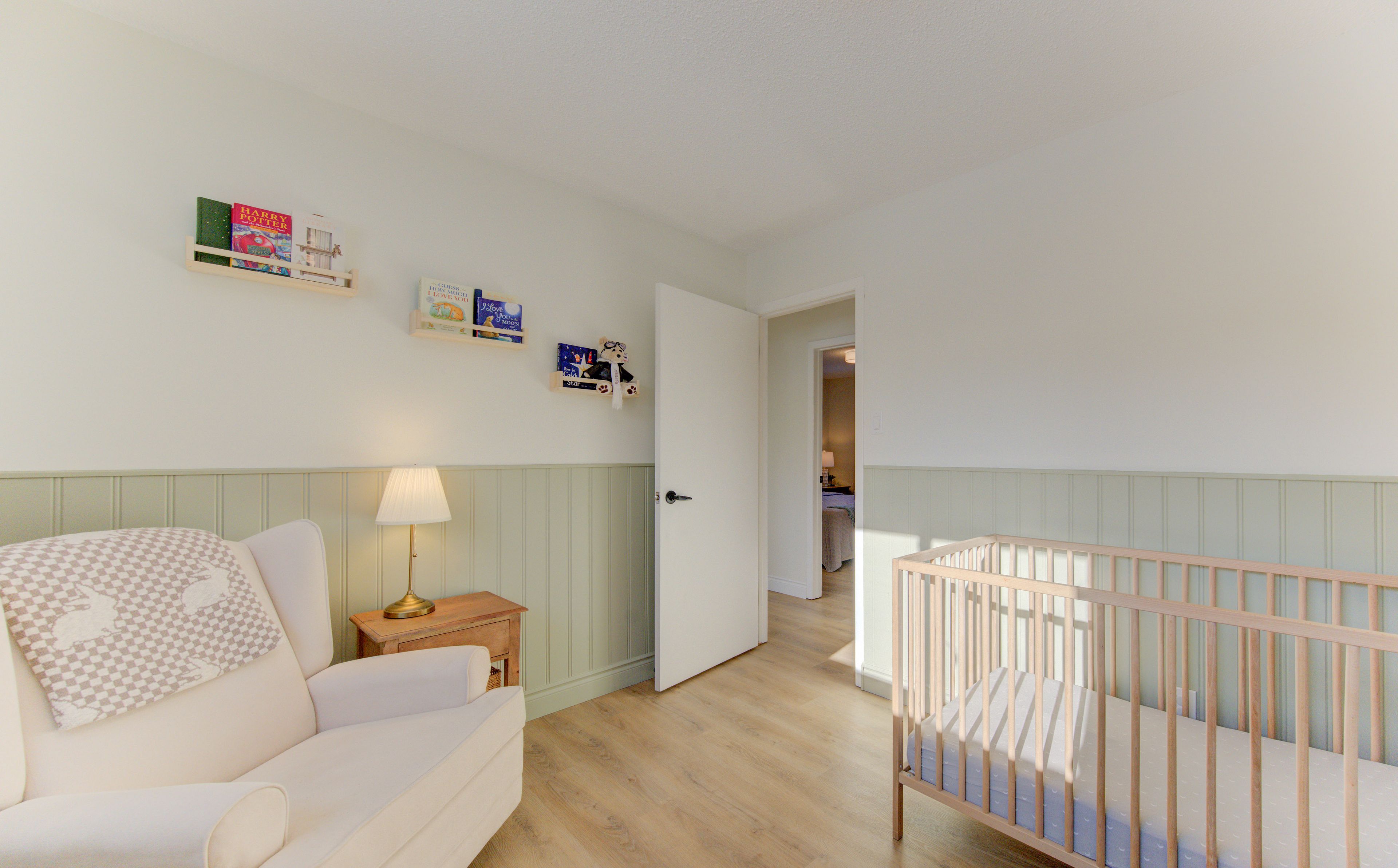 • Open layout with elegant wainscoting and a cozy gas fireplace.