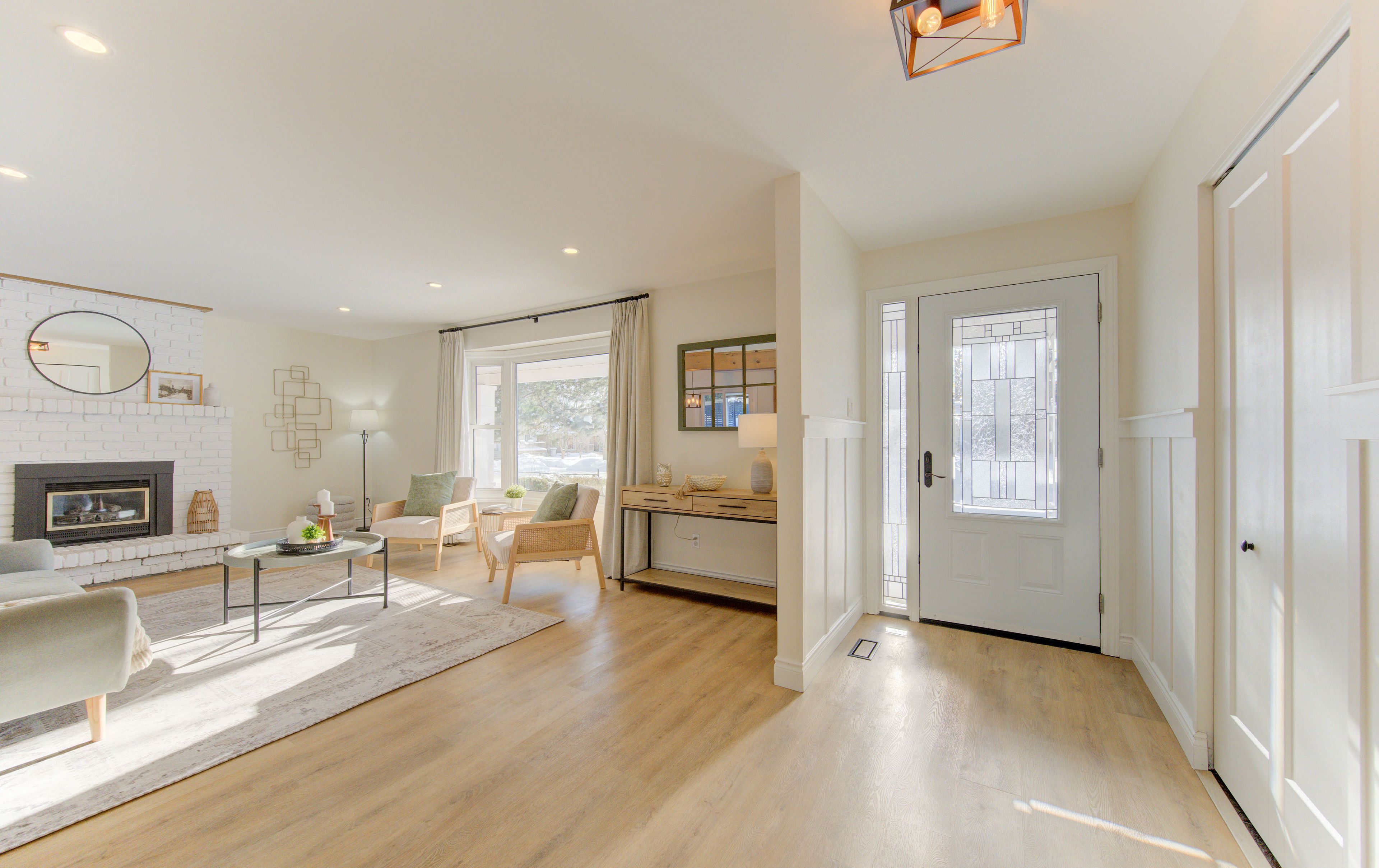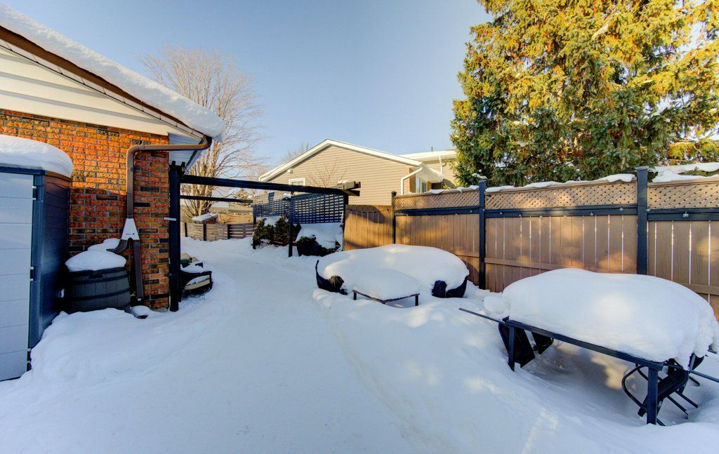 This is the one you have been waiting for. This beautifully updated four level sidesplit offers space for everyone and feels straight out of the pages of "home&design". From the moment you step inside, the wide open layout stands out, featuring elegant wainscoting, a welcoming family room with a large bay window and cozy gas fireplace. The spacious kitchen offers ample white cabinetry, a chimney style vent hood, and a centre island with breakfast bar seating. Sliding doors provide easy access to the fully fenced, landscaped backyard with patio. Upstairs you will find three bedrooms and a family bath, including a primary bedroom with a convenient two piece private ensuite. Just a few steps down, a versatile living area provides the perfect place to unwind and can be configured to suit a variety of needs. The space keeps going! The fourth level adds even more flex space with an updated laundry area and mechanicals. Notable dates: windows-2018, appliances, sump pump, driveway-2020, floors, bathroom-2021, kitchen-2022, laundry-2023, furnace, garage door-2024, eavethrough-2025. This is a home you truly need to see in person, schedule your private showing today!