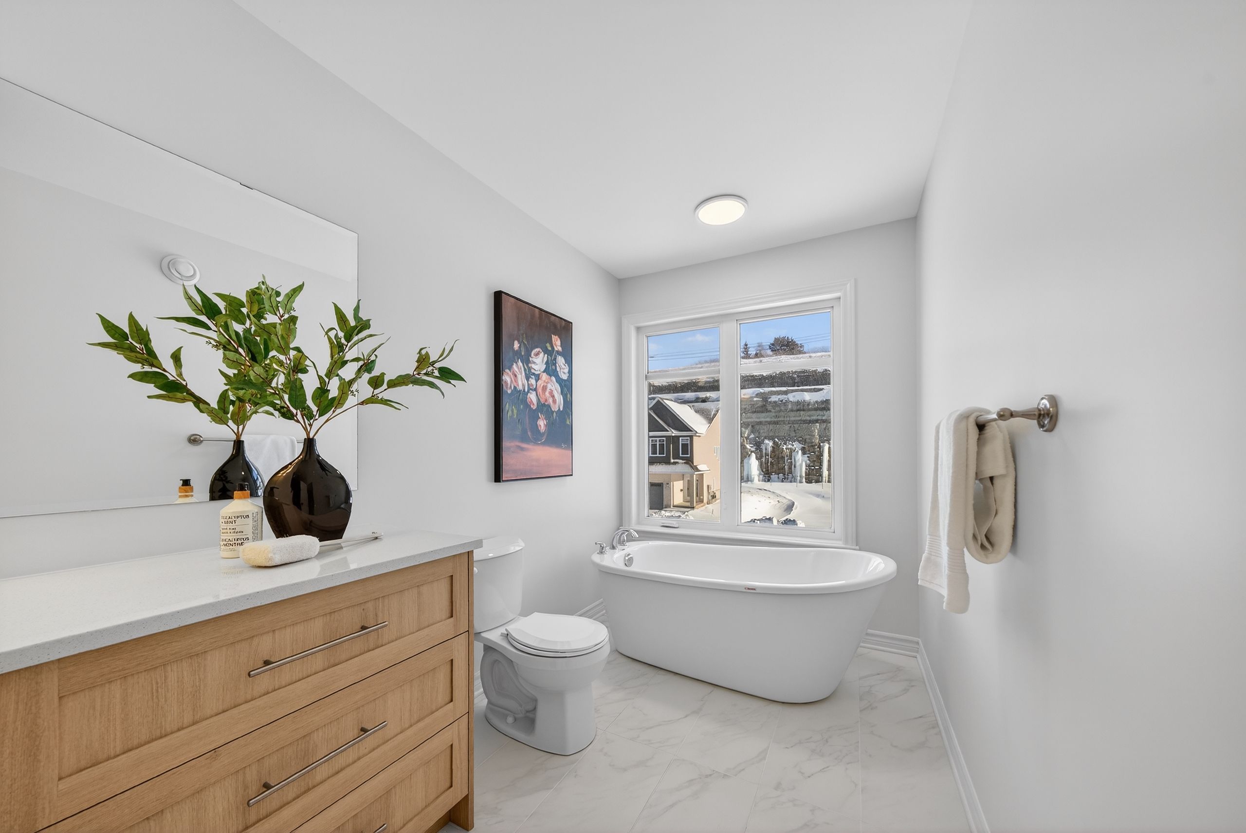 • Primary suite offers a freestanding soaker tub and walk-in shower.