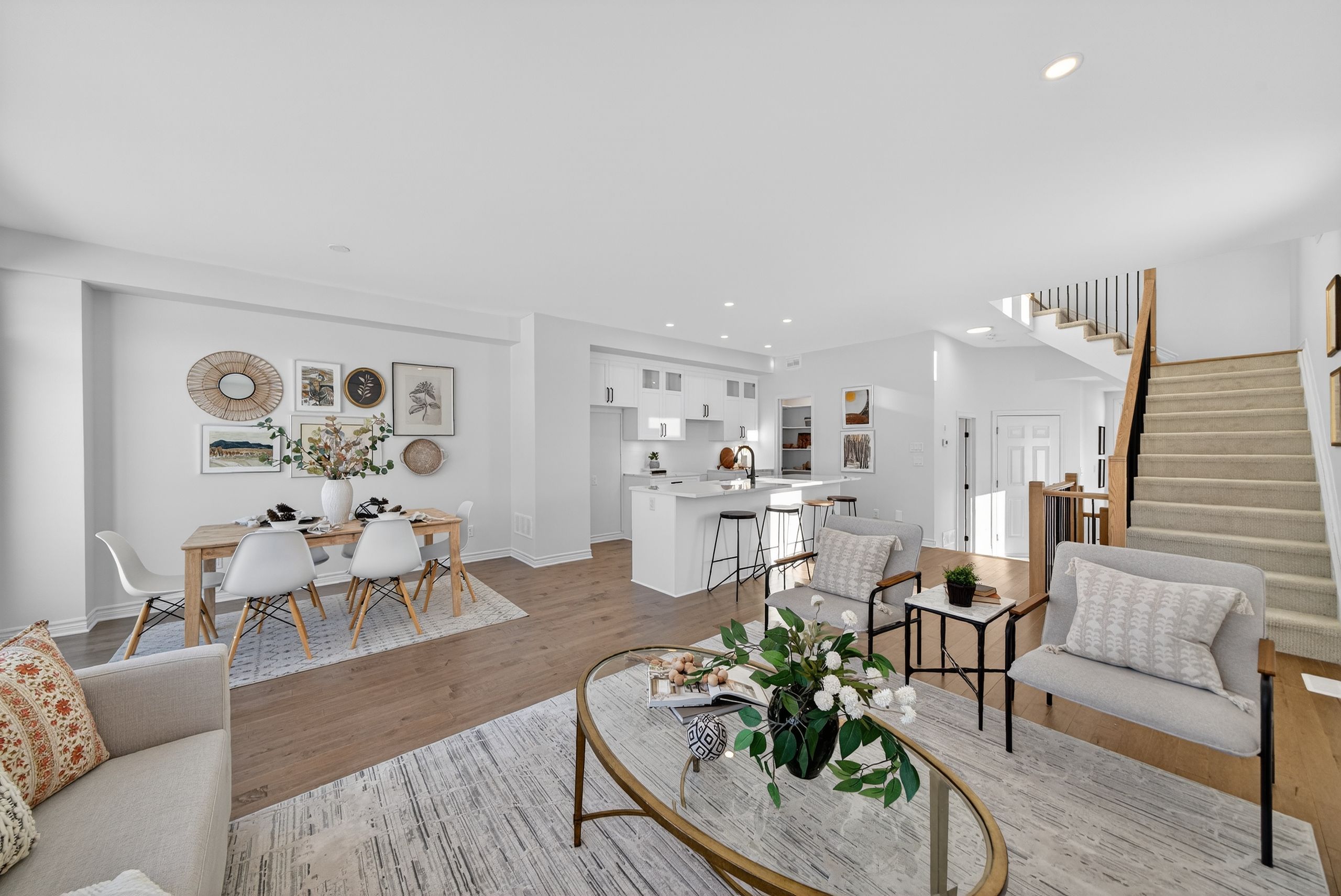 Welcome to the camden model in sought-after riverview shores. This modern elevation end unit offers 2,160 sq. Ft. Of finished living space and has been thoughtfully upgraded throughout, including central air conditioning and hardwood flooring for lasting comfort and value. The stylish kitchen features quartz countertops, muskoka kitchen cabinetry, and a functional layout ideal for everyday living and entertaining. The primary suite is a true retreat, complete with a freestanding soaker tub and a walk-in tile and glass shower, blending modern design with spa-like comfort. A rare combination of contemporary finishes, generous space, and an excellent kingston location, this end-unit offers refined living in one of the area's most desirable communities.