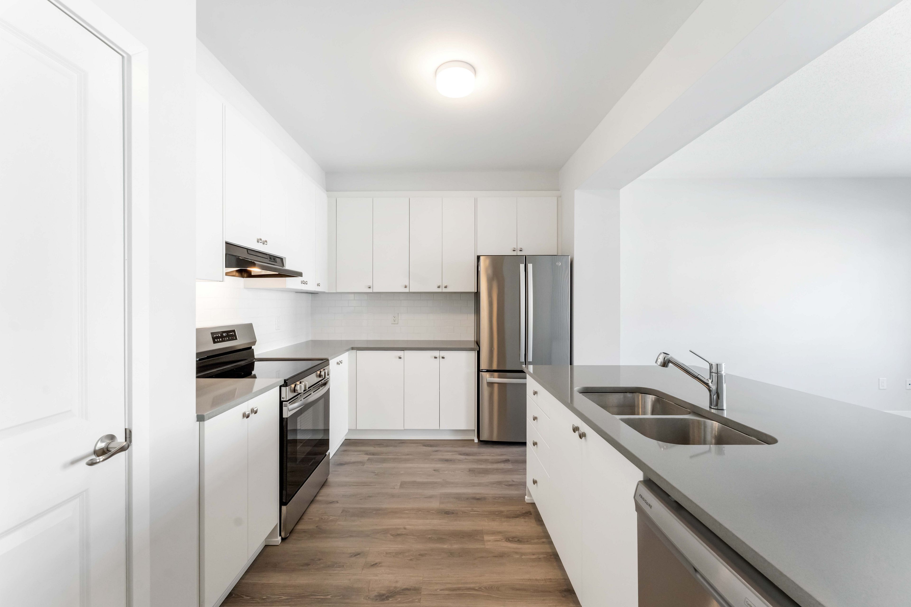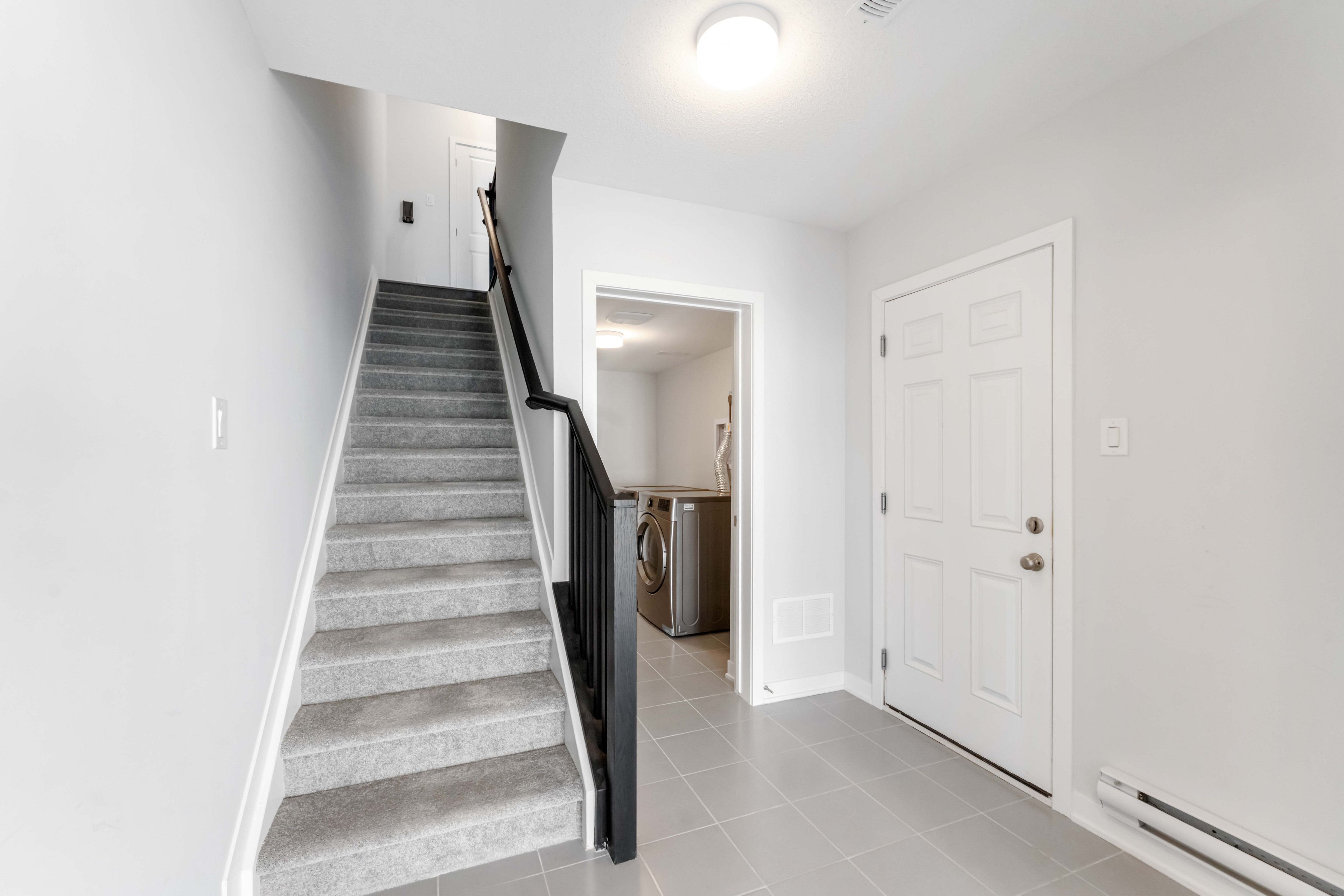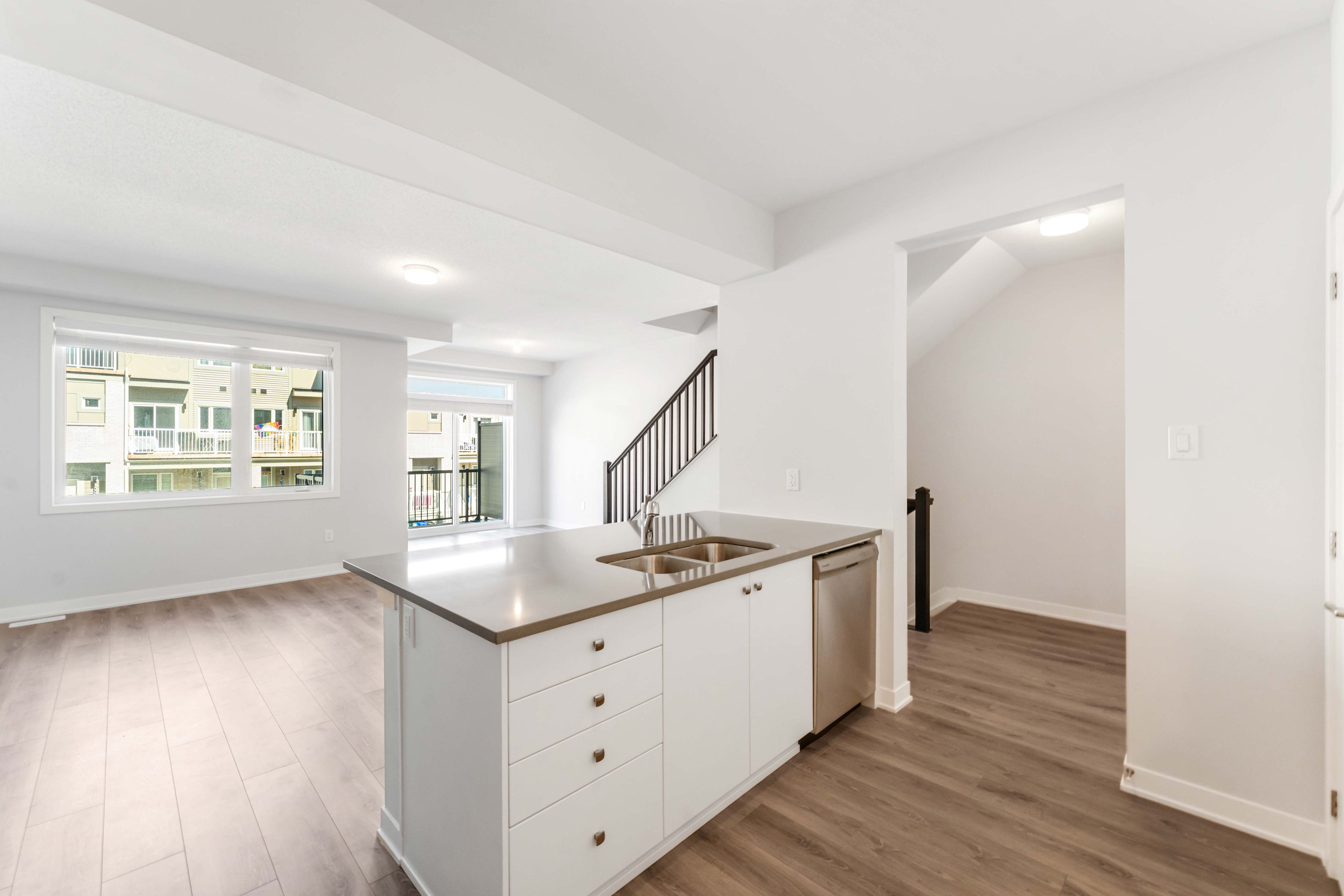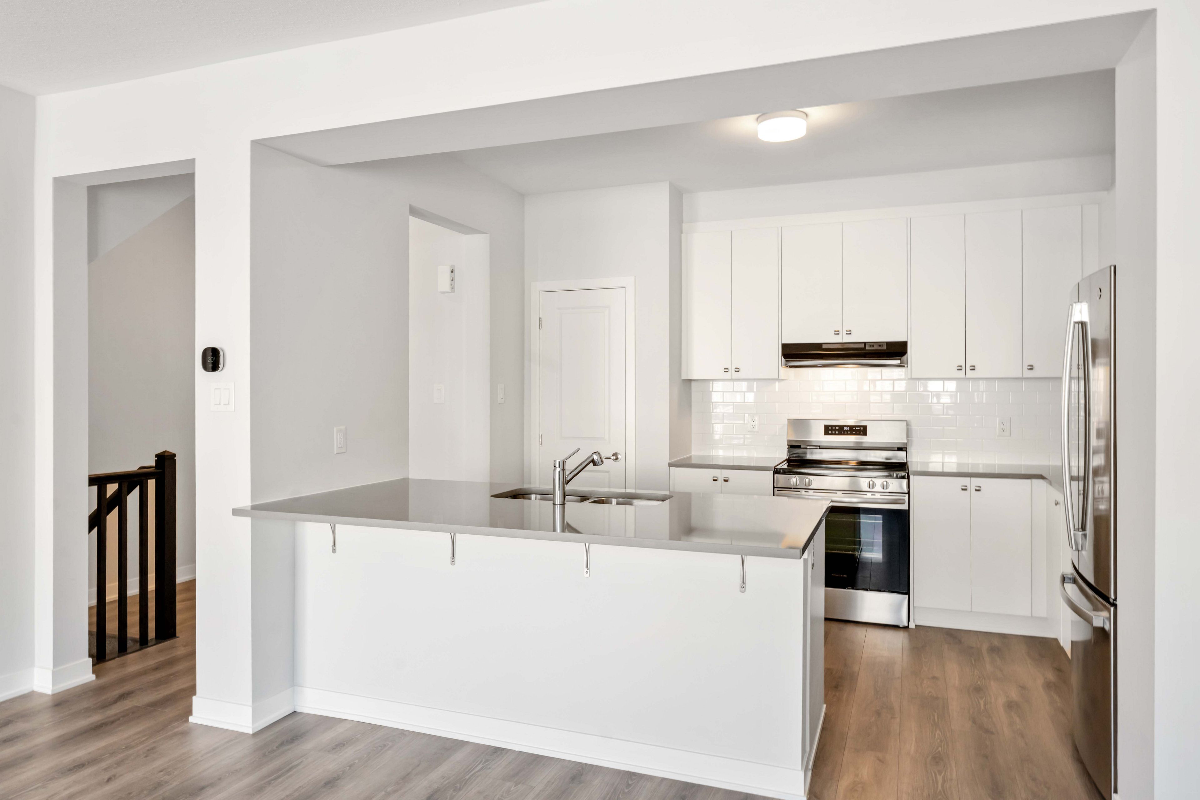 **new build! (2024) never lived in!** (garage only used for storage). **minutes from grocery, shopping, gym, restaurants, public transit and more!** welcome to this beautiful open concept home that is sure to impress. With the kitchen open to the living and dining area this open floor plan is ideal for entertaining friends and family. Oversized windows let the sunlight flood in. The dining area provides easy access to the second floor balcony, featuring an excellent view of the neighborhood. This brand new kitchen provides ample counter space with quartz countertops, gorgeous cabinetry and a backsplash for your enjoyment. Peninsula provides additional seating and prep space with built-in pantry providing additional storage. The bright primary bedroom features cozy carpeting, access to the main bathroom, and a spacious walk-in closet. Maintenance fee $215. 30; geothermal rental fee - $100. 57/m.