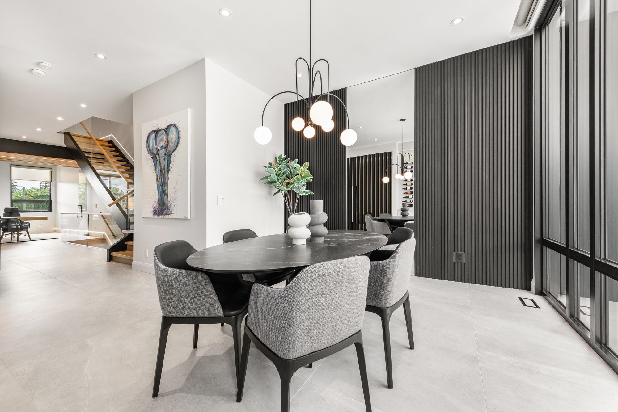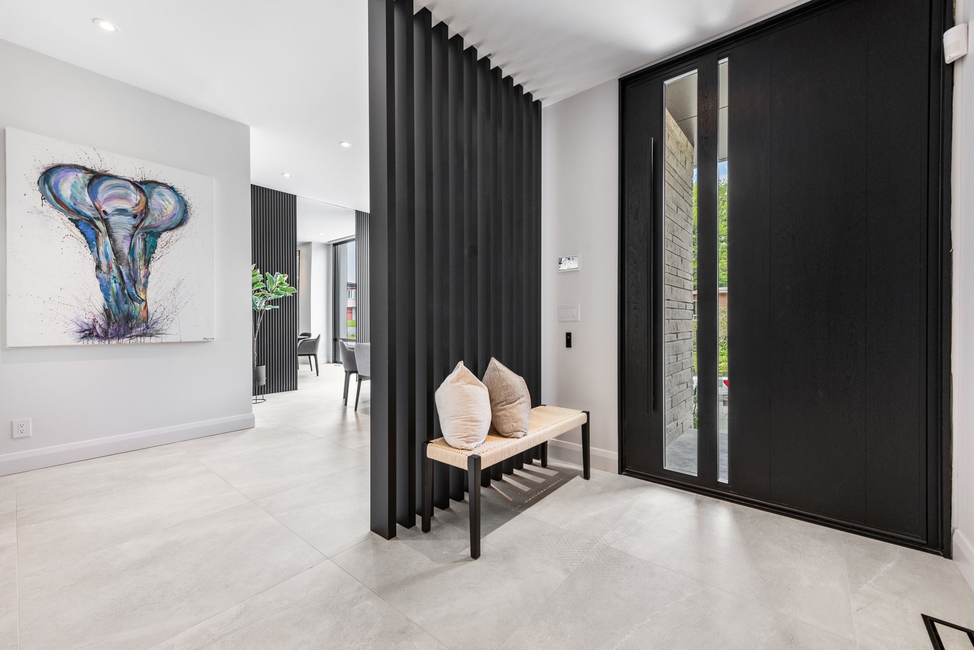 • Sleek foyer with custom cabinetry and impressive dining area.