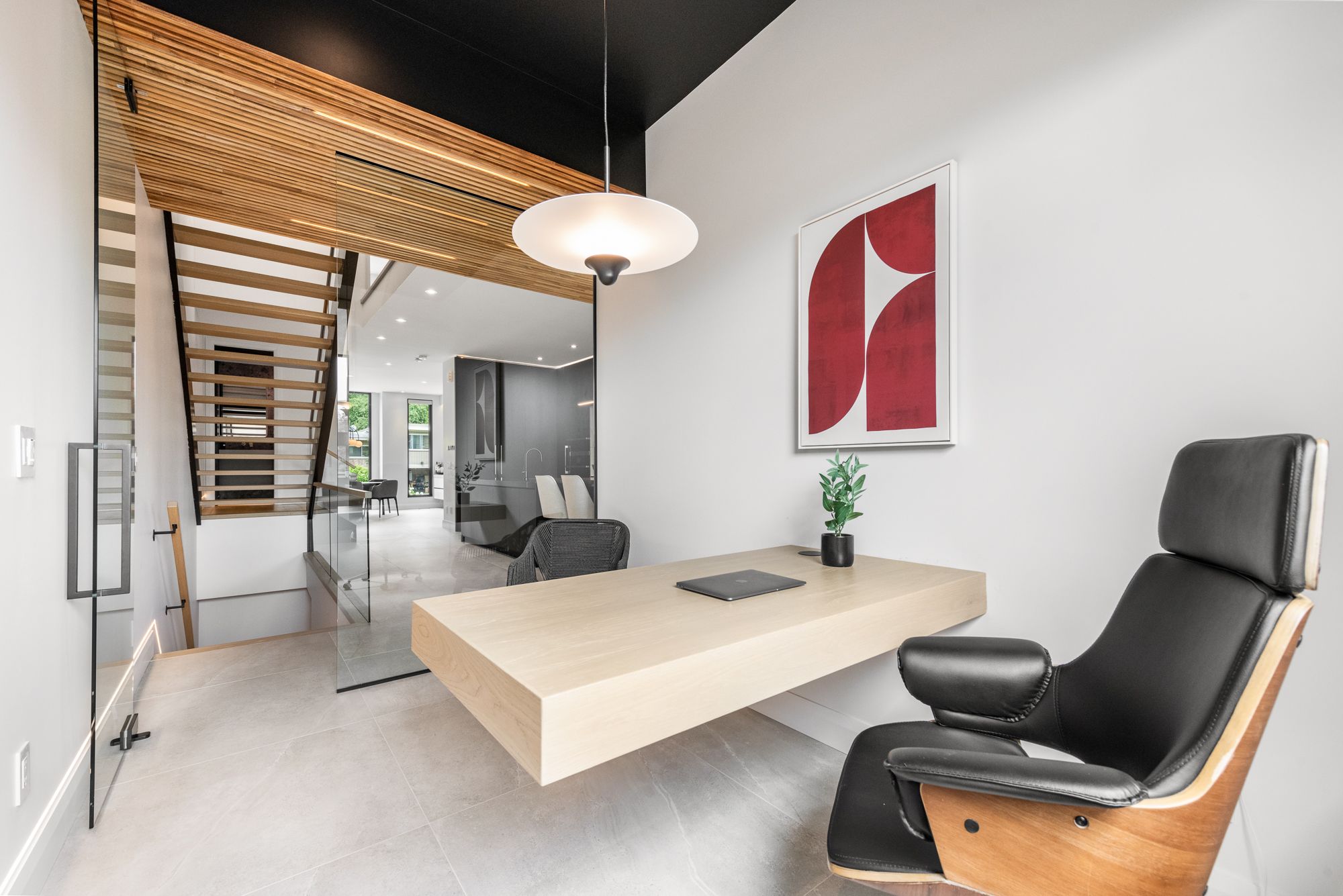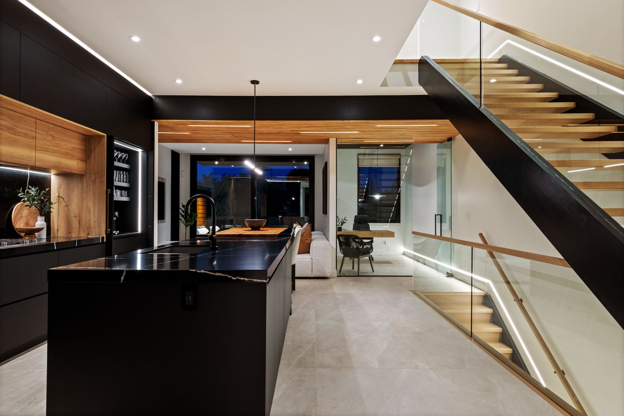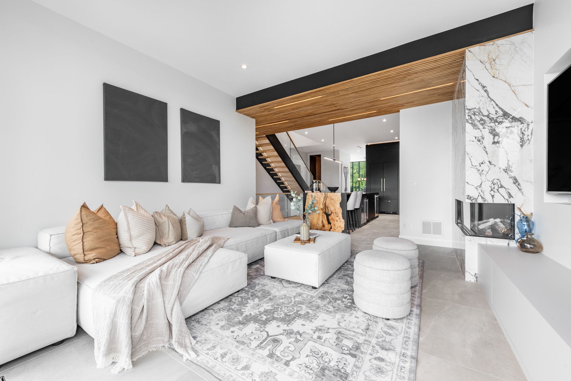 Luxury blends with futuristic in this one of a kind home! Featuring a heated driveway, walkway and exterior stairs! The 5x9 custom pivot door leads into a sleek foyer with custom cabinetry and wood accents peeking into the oversized formal dining room with a wall feature, bar and wine rack. Followed by a dream kitchen with high end appliances, hidden coffee bar and custom 3d maple/resin slab with waterfall. Open living space showcases a tiled fireplace and recessed tv, office with white oak floating desk and a massive deck w speakers and included hot tub. Whole main floor has heated floors and is complemented by leds throughout. Second floor features a primary with a balcony, spa-like en suite boasting a skylight in shower and a huge millworked walk-in closet! Second floor continues with a full size laundry room, two large bedrooms and a full bath. Lower sdu has a heated outdoor walkway, modern kitchen with epoxy floors and in-unit laundry. All main blinds are automated, speakers throughout the house. An absolute must see! Sdu can be opened up to form a basement from main unit! Come and see what this wonderful community has to offer!
