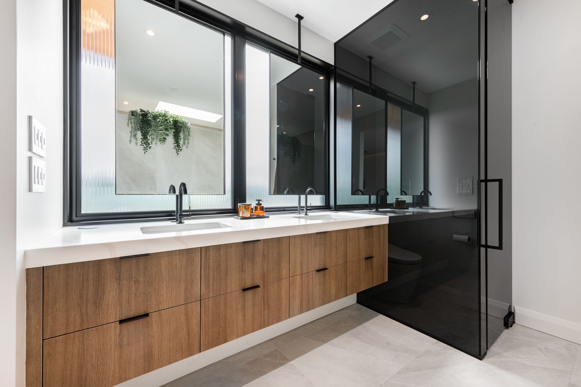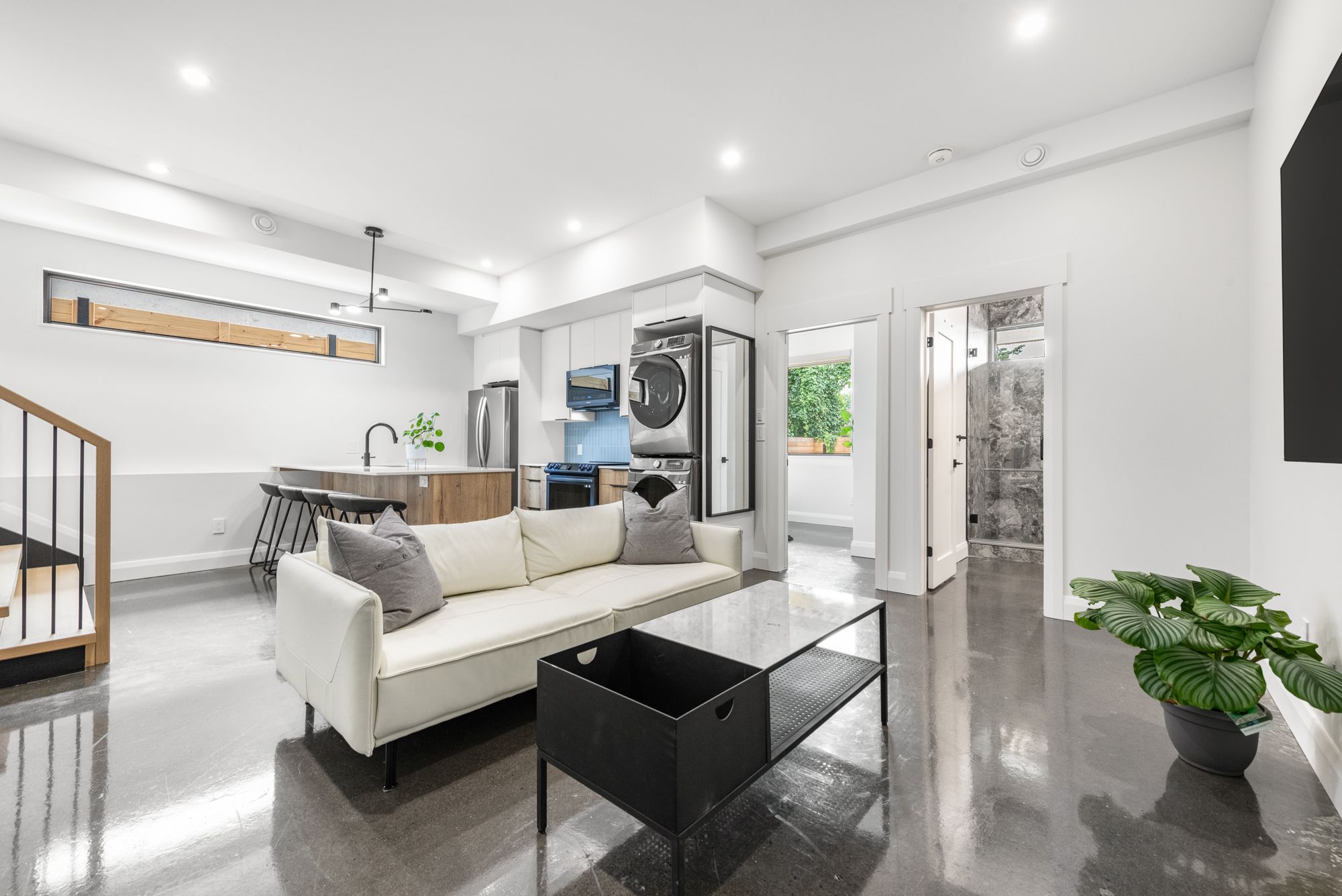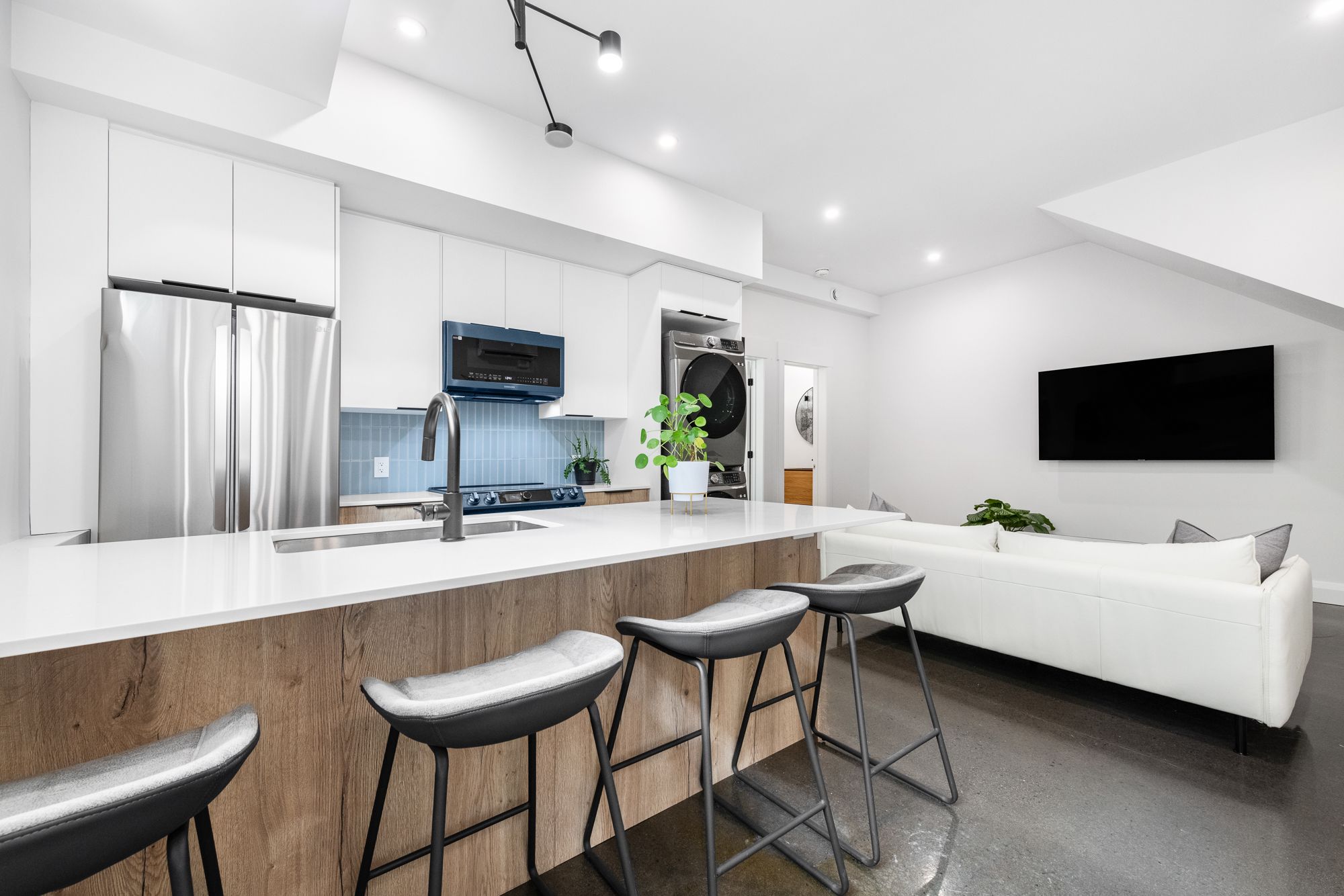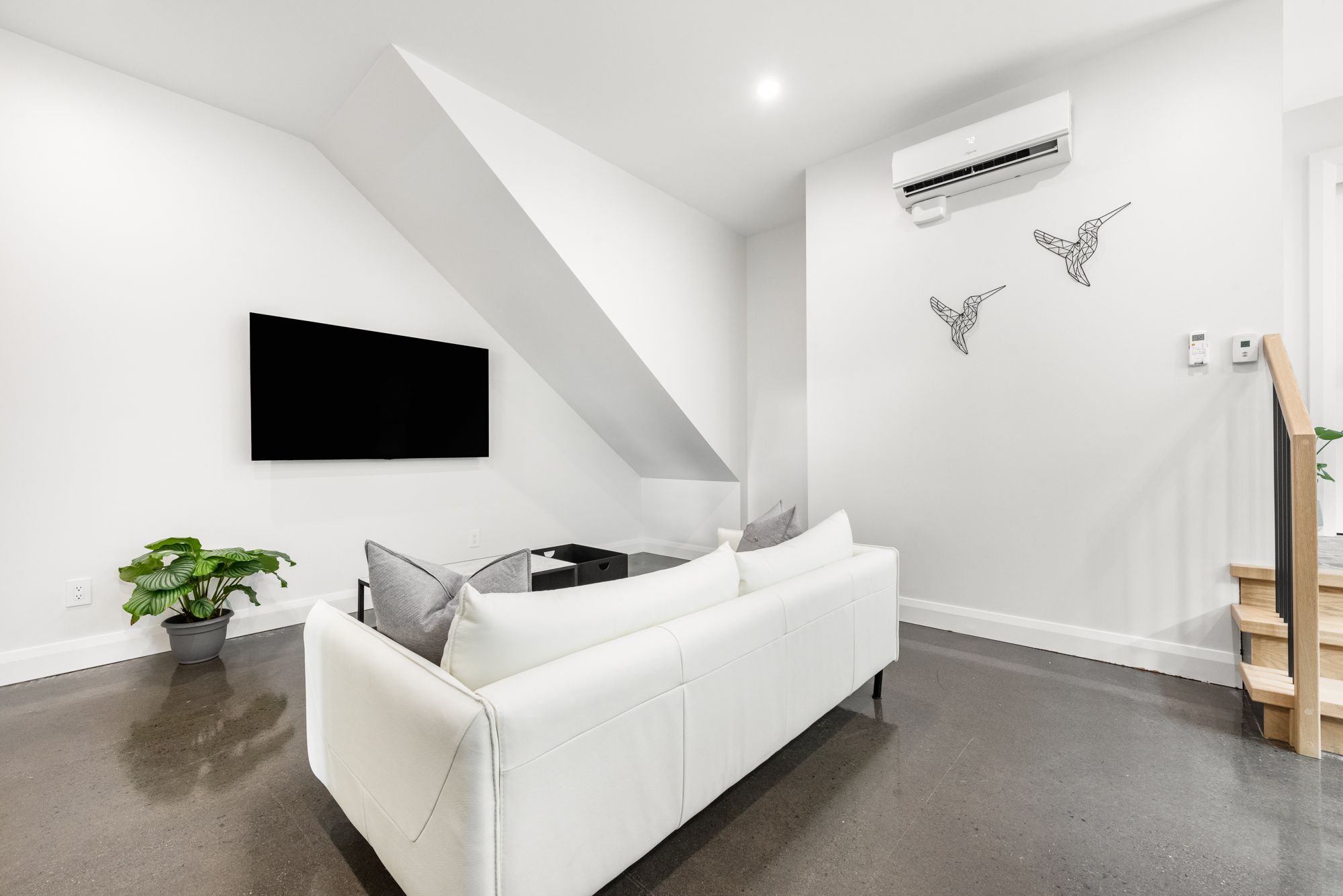 Luxury blends with futuristic in this one of a kind home! Featuring a heated driveway, walkway and exterior stairs! The 5x9 custom pivot door leads into a sleek foyer with custom cabinetry and wood accents peeking into the oversized formal dining room with a wall feature, bar and wine rack. Followed by a dream kitchen with high end appliances, hidden coffee bar and custom 3d maple/resin slab with waterfall. Open living space showcases a tiled fireplace and recessed tv, office with white oak floating desk and a massive deck w speakers and included hot tub. Whole main floor has heated floors and is complemented by leds throughout. Second floor features a primary with a balcony, spa-like en suite boasting a skylight in shower and a huge millworked walk-in closet! Second floor continues with a full size laundry room, two large bedrooms and a full bath. Lower sdu has a heated outdoor walkway, modern kitchen with epoxy floors and in-unit laundry. All main blinds are automated, speakers throughout the house. An absolute must see! Sdu can be opened up to form a basement from main unit! Come and see what this wonderful community has to offer!