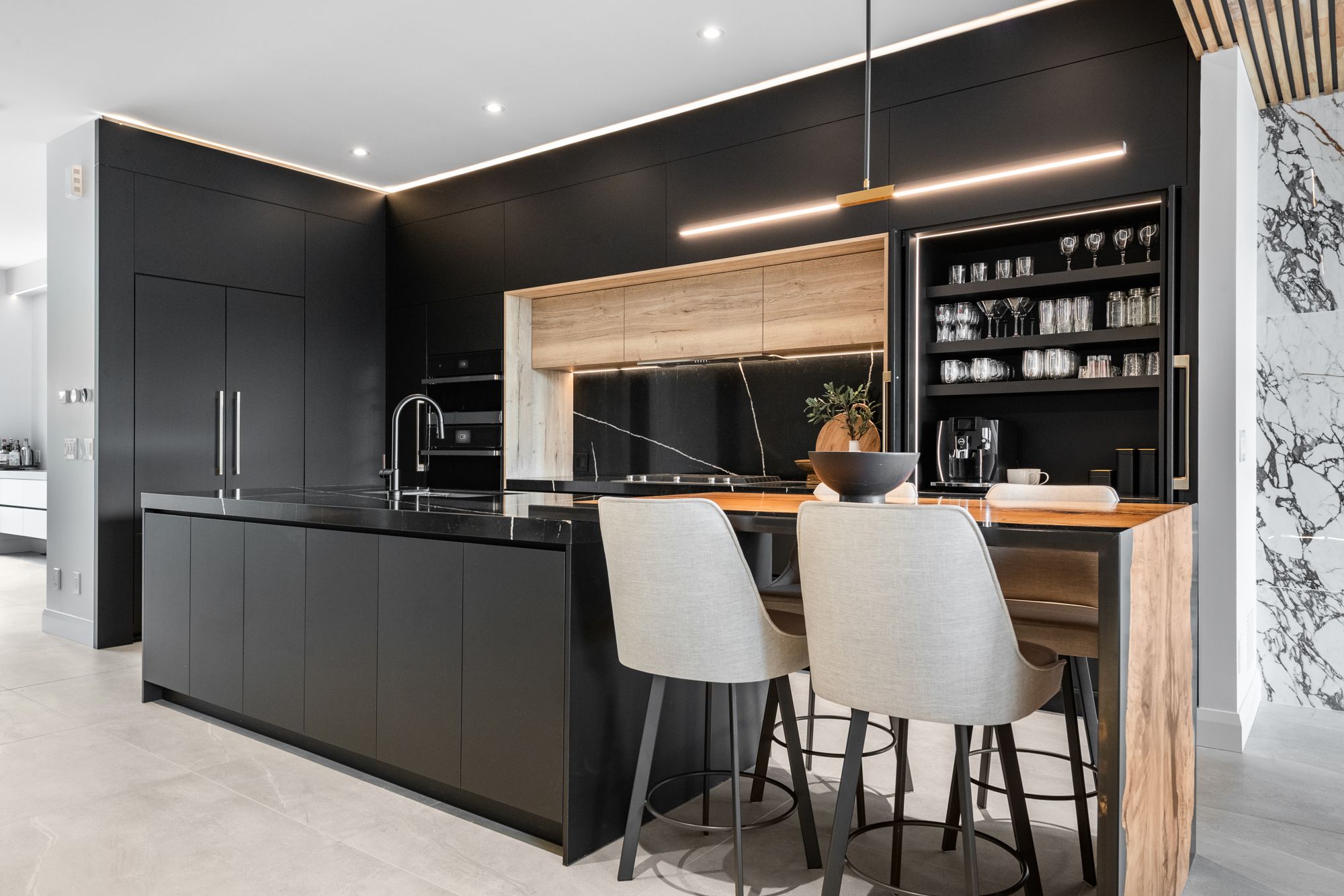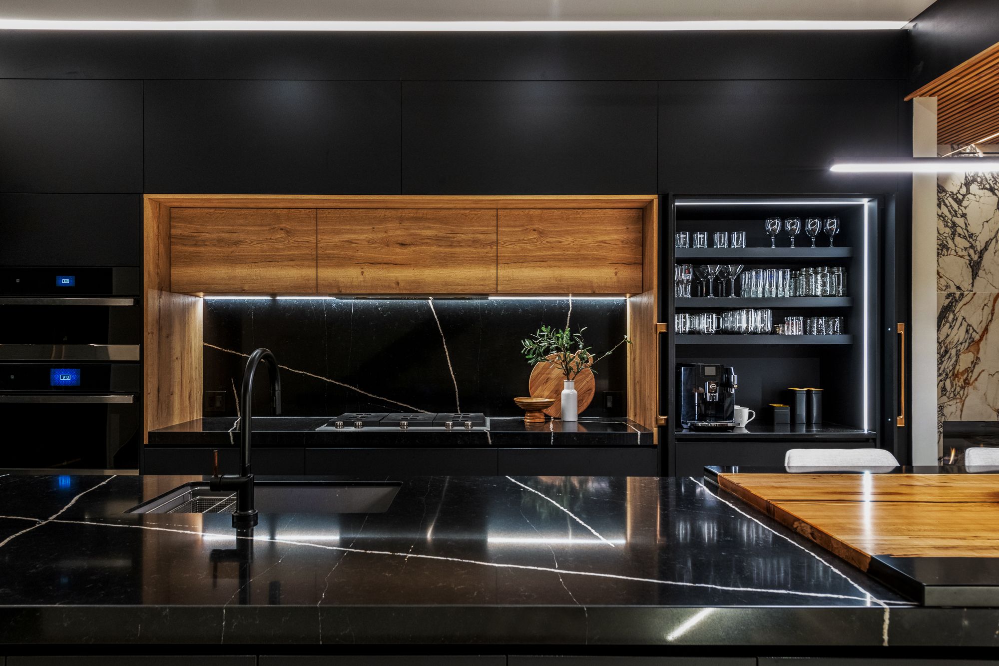 • Dream kitchen with high-end appliances and hidden coffee bar.