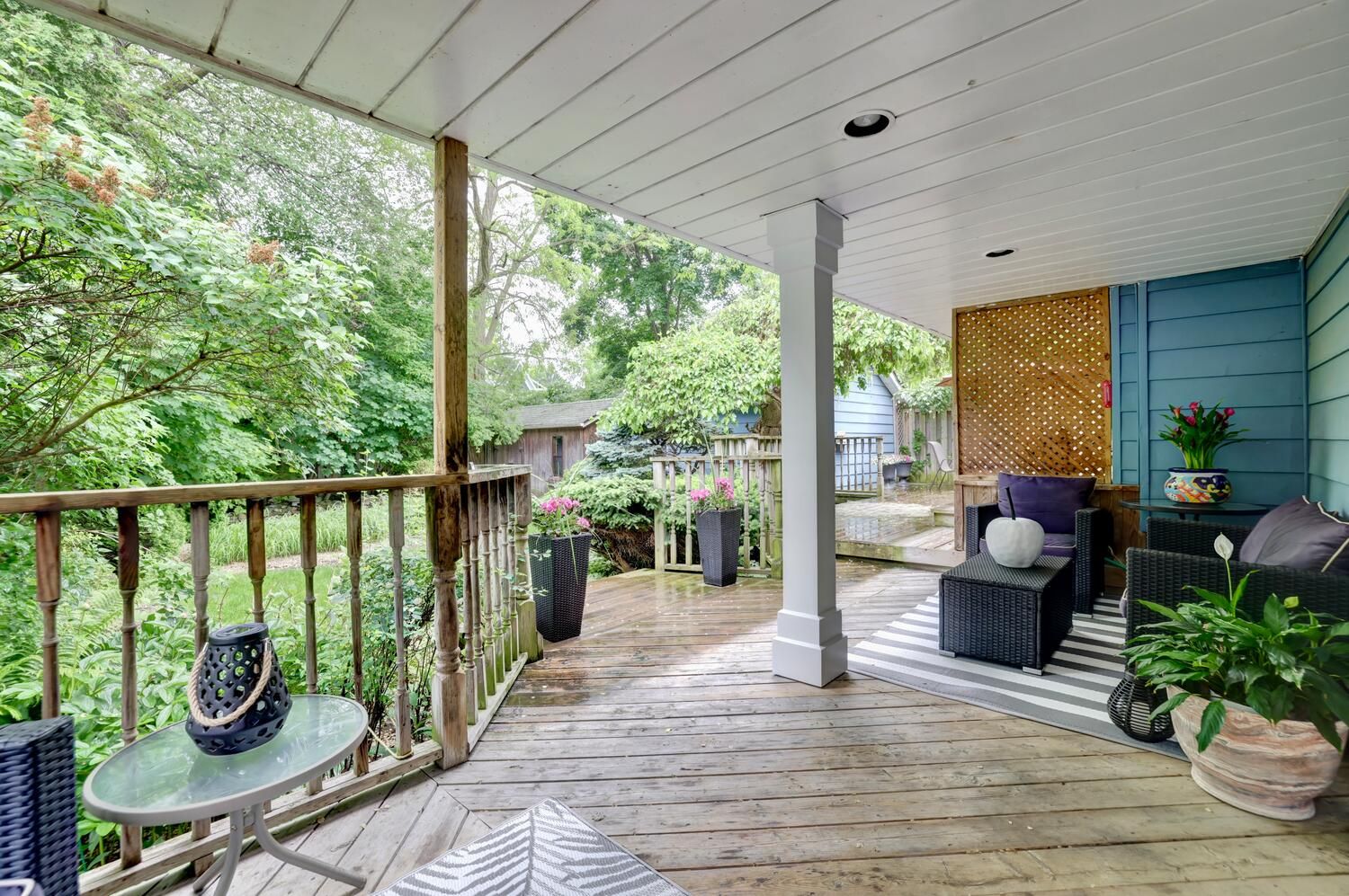 Improved opportunity! Discover this charming family home nestled in the heart of old oakville, one of the area's most desirable neighbourhoods. Meticulously maintained 1. 5-storey residence on a beautifully landscaped 50' x 141. 8' lot, tucked away on a quiet, tree-lined cul-de-sac. Surrounded by inviting covered porches and decks, a peaceful setting to enjoy nature while remaining close to all amenities. Originally purchased over 40 years ago as a quaint cottage and thoughtfully renovated in 1992, features generously sized principal rooms, including a sunken, oversized family room. This inviting space showcases a reclaimed brick, wood-burning fireplace with a barn board mantel, along with a matching bar and sliding doors that open to a muskoka-inspired backyard. Expansive rear-facing windows flood the home with natural light and lead to a spacious 36'4" x 14'6" deck-perfect for entertaining or relaxing year-round. With over 2,050 sq. Ft. Of above-grade living space, this home seamlessly blends timeless character with modern comfort. The home offers 3+1 well-appointed bedrooms, 4 bathrooms, and a versatile living room currently used as a formal dining space. The finished basement provides additional flexibility for growing families. The main floor includes a bedroom that can also serve as a home office or den, along with an updated bathroom. Hardwood flooring and ceramic tiles enhance the main level, while the spacious kitchen features abundant cabinetry, a large pantry, and a double sink. Additional highlights include a separate main floor laundry room with a utility sink, folding counter, and ample storage. At the rear of the property, two detached outbuildings, with electricity offer excellent potential for a workshop, studio, or garden storage. This property offers endless possibilities for renovation or addition. Just minutes from top-ranked public and private schools, downtown oakville, whole foods, lcbo, charming shops, the lakefront, parks, walk to go transit