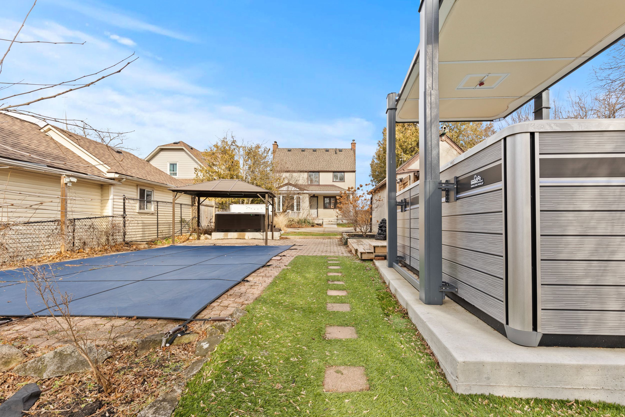 Welcome to 322 queenston street, where country living meets city convenience. Set on an expansive 42 x 425 ft lot and backing onto the garden city golf & country club, this exceptional property offers spectacular rear views that truly capture a peaceful, country-like atmosphere, private and serene while remaining close to amenities. Inside, you're welcomed by a cozy living room with fireplace, a convenient 2-piece bathroom, and main-floor laundry. A spacious formal dining room flows seamlessly into the kitchen, creating a functional and inviting layout ideal for everyday living and entertaining. The kitchen is beautifully appointed and thoughtfully designed as the heart of the home. Upstairs, the generous primary bedroom features walk-in closets and a well-designed 5-piece bathroom. A second beautifully finished bedroom completes the upper level. The fully finished basement adds tremendous versatility and features an impressive theatre room, perfect for movie nights, entertaining guests, or watching the big game. Step outside to your own private backyard retreat with no rear neighbours. Enjoy an inground saltwater pool with a newer liner approximately 2 years old, offering peace of mind while enhancing the outdoor lifestyle. The yard also presents a special opportunity to incorporate a luxury swim spa, elevating the space into a true resort-style setting. Additional highlights include a roof from 2013, furnace and air conditioning from 2016, and many new high-efficiency windows. Ideally located in close proximity to public transit, highways, parks, shopping, and all amenities, this home offers the perfect balance of privacy, lifestyle, and convenience.