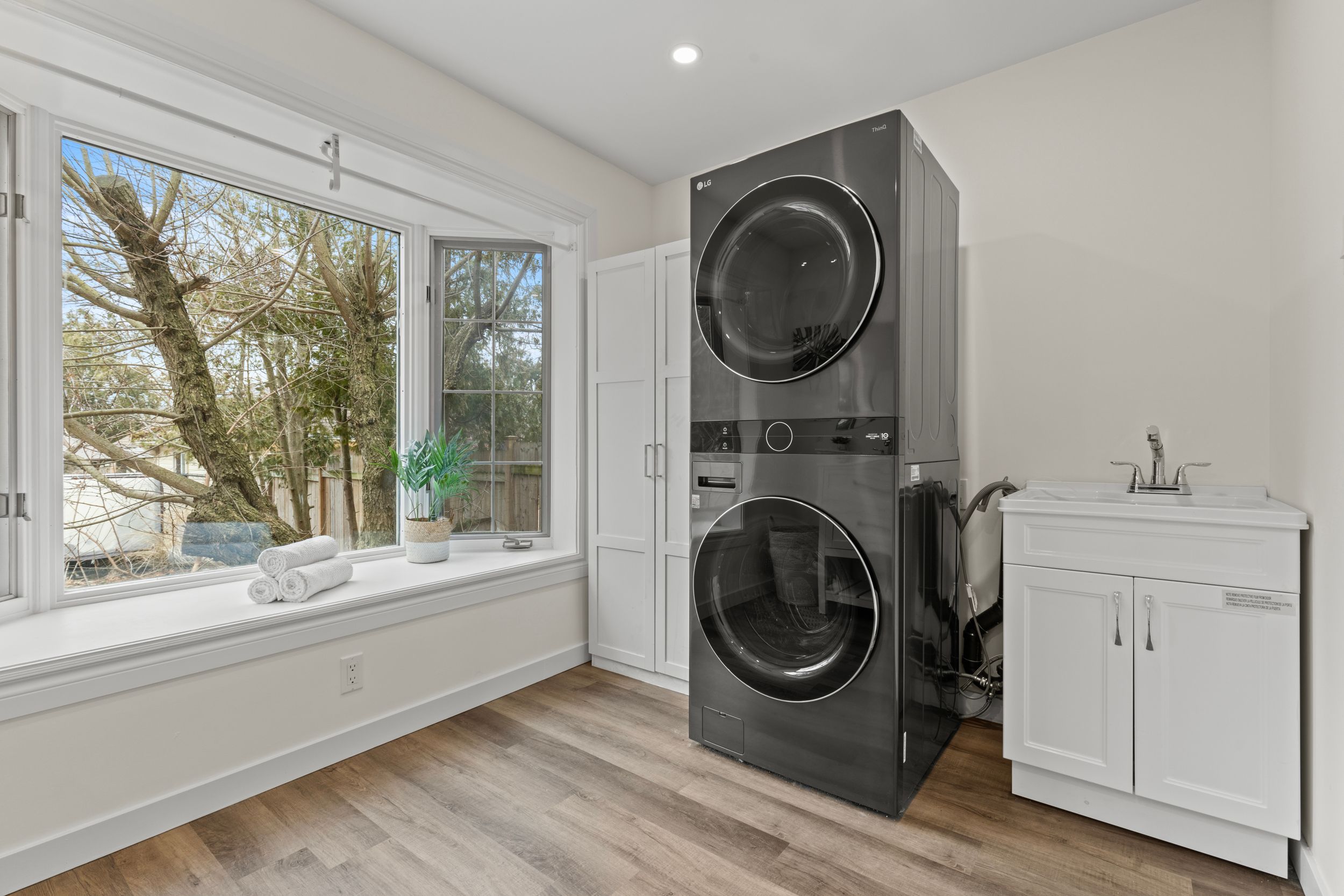 • Cozy living room with fireplace and main-floor laundry for convenience.