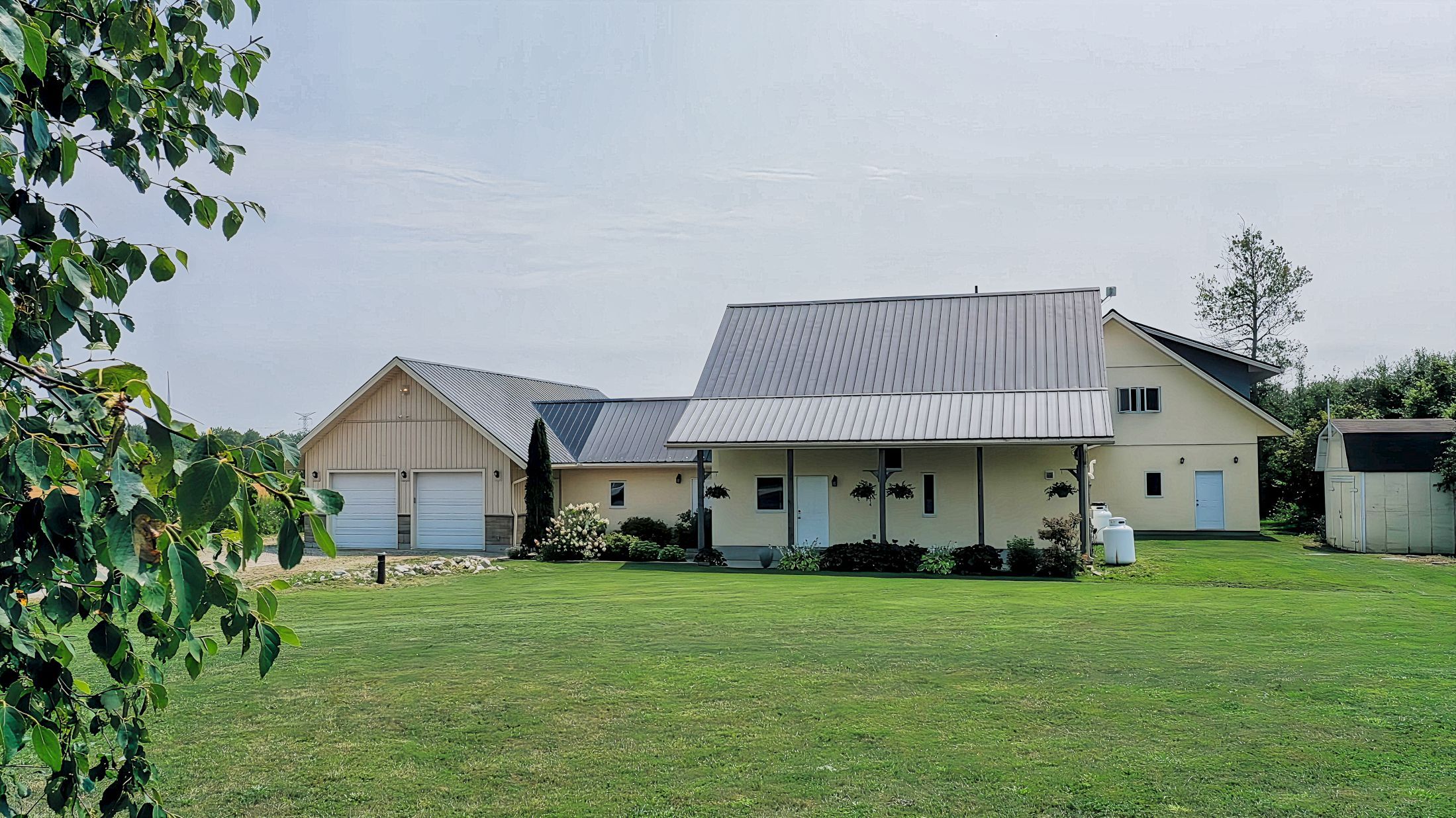 Countryside forever!! Discover the best of modern country living just 5 min drive from the charming town of grand valley & the luther lake conservation lands ideal for nature lovers, canoeing & bird watching. Set on a peaceful rural 1 acre property on a paved road, this 4500 square foot home is energy efficient, passive solar and embraces sustainable living, blending modern comfort with environmentally responsible design. It is an stunning expansive home offering 6 bedrooms & 5 bathrooms!! Built with natural eco-friendly material including concrete, metal, wood, straw insulation & plaster including conventional construction. This property has a low-carbon footprint without sacrificing style or function. Constructed with premier planning, process & engineering standards. The thoughtfully designed layout offers a very spacious open airy main residence (could be 2 residences !) & a beautiful separate self contained 1 bedroom apartment with laundry . The 2 car attached garage is 30 ft. X 23 ft. Plus an attached rear workshop/garage 17 ft. X 23 ft. With a rear roll up door. Parking for 8-10 cars. Large entry 20 ft. X 11 ft. Radiant in-floor heating & practical porcelain tile throughout the main floor. The reading area leads to a gym / home office & a l-shaped great room with an inviting wood stove & a spacious play area. The open concept design features deep window sills, built-in shelves, reclaimed elm & maple floors, 3 walkouts to the garden courtyard, solid wood doors, custom maple kitchen, walk-in pantry & pot lighting throughout!! Built with top quality materials starting from a concrete foundation, in floor radiant heat, framed construction, aluminum roof, high end fibreglass windows, r 40 walls & r 60 ceilings, 400 amp electrical service, 2 tankless hot water tanks w/ heat exchangers, 2 hrv's & a waterloo biofilter septic. The well has a constant pressure system. This home has a warm organic look, thick sculpted walls, deep window sills & a natural plaster finish.