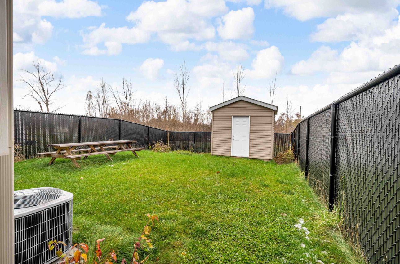 • Private backyard with a 6' fence and oversized shed for extra storage.