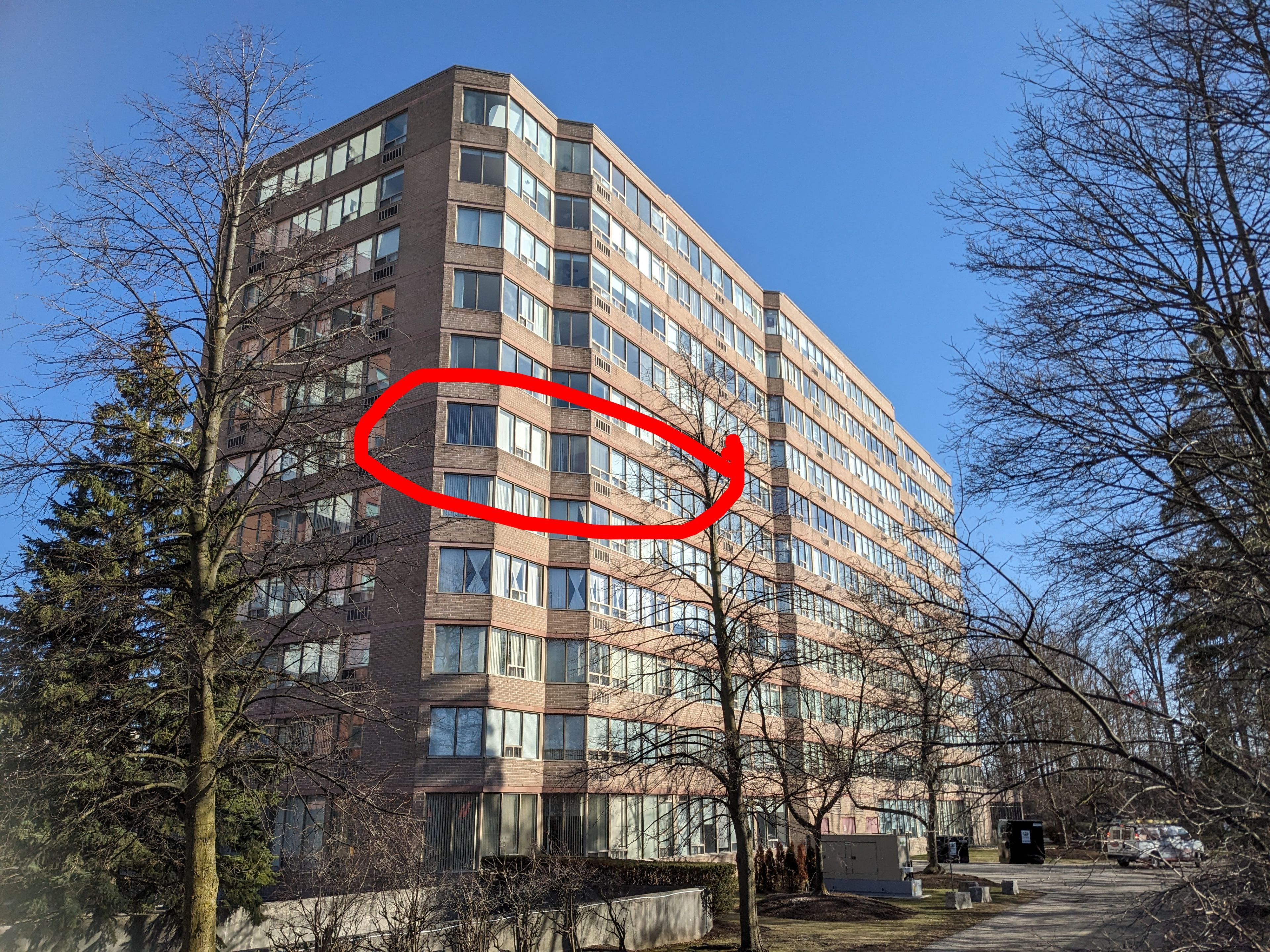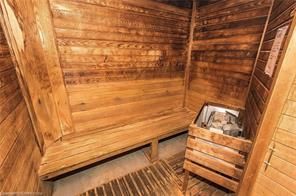 • Building amenities include a gym, indoor pool, sauna, and party rooms.