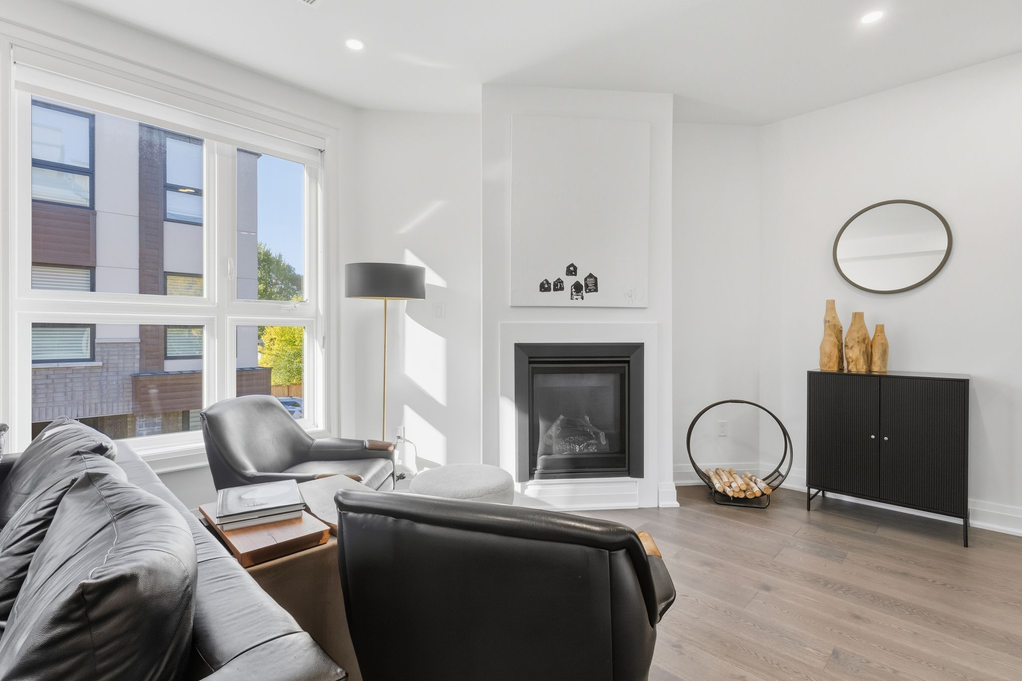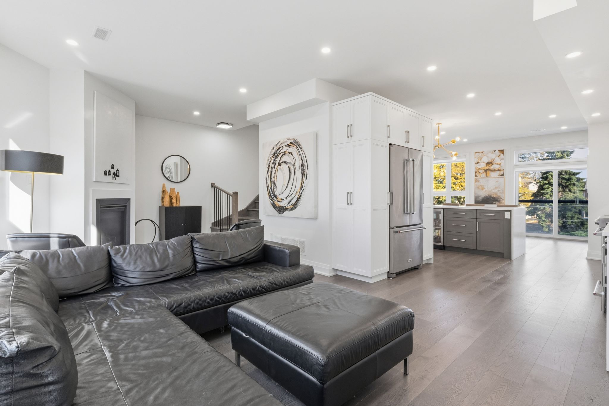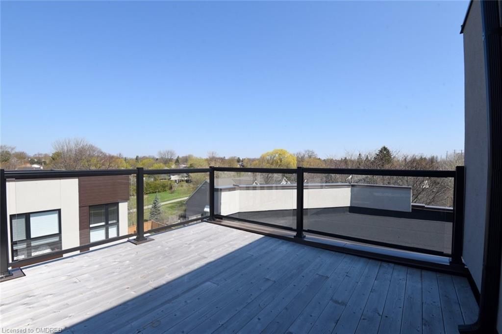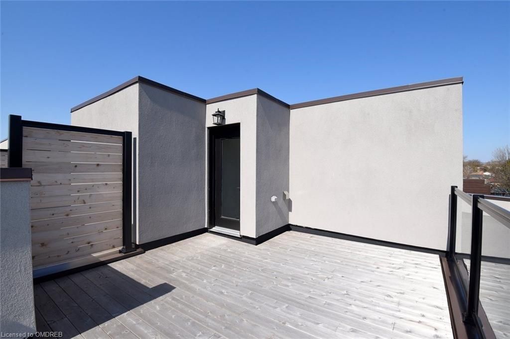 A one-of-a-kind freehold townhome in a sought-after community, exceptional in both design and scale, this beautiful three-bedroom home stands apart as the largest and widest floorplan in this exclusive ten-residence enclave. Every detail has been carefully chosen, creating a bright, refined living space filled with natural light from its extra-large windows. The exterior blends brick, stone, and stucco with a striking 8-foot modern entrance door. Inside, you'll find 9-foot ceilings on every level, 8-foot solid interior wood doors, upgraded trim, and hardwood floors throughout no carpet anywhere. The custom kitchen is the heart of the home, featuring soft-close cabinetry, quartz countertops and backsplash, a waterfall island with undermount sink, kitchenaid appliances including a gas stove, and a built-in beverage fridge. The open-concept living area flows seamlessly and features a gas fireplace and juliette balcony, creating a space that feels both stylish and inviting. The oak staircase with metal pickets and hunter douglas blinds continue the homes attention to detail. Upstairs, the primary suite offers a spa-like retreat with heated floors, a frameless glass shower, and double comfort-height vanities. Additional thoughtful upgrades such as custom closet organizers, led pot lights, and a full-sized washer and dryer finishes the space beautifully. The appeal extends outdoors with a rare 375-square-foot rooftop terrace finished in cedar and complete with a gas line for barbecuing perfect for relaxing or entertaining under the open sky. Additional conveniences include inside garage entry, a large window in the garage, a covered second parking space, and an owned hot water tank. Located close to downtown burlington, shopping, schools, parks, the burlington centennial bike path, public transportation, major highways and the go train. This is a home worth seeing... You will truly be impressed.