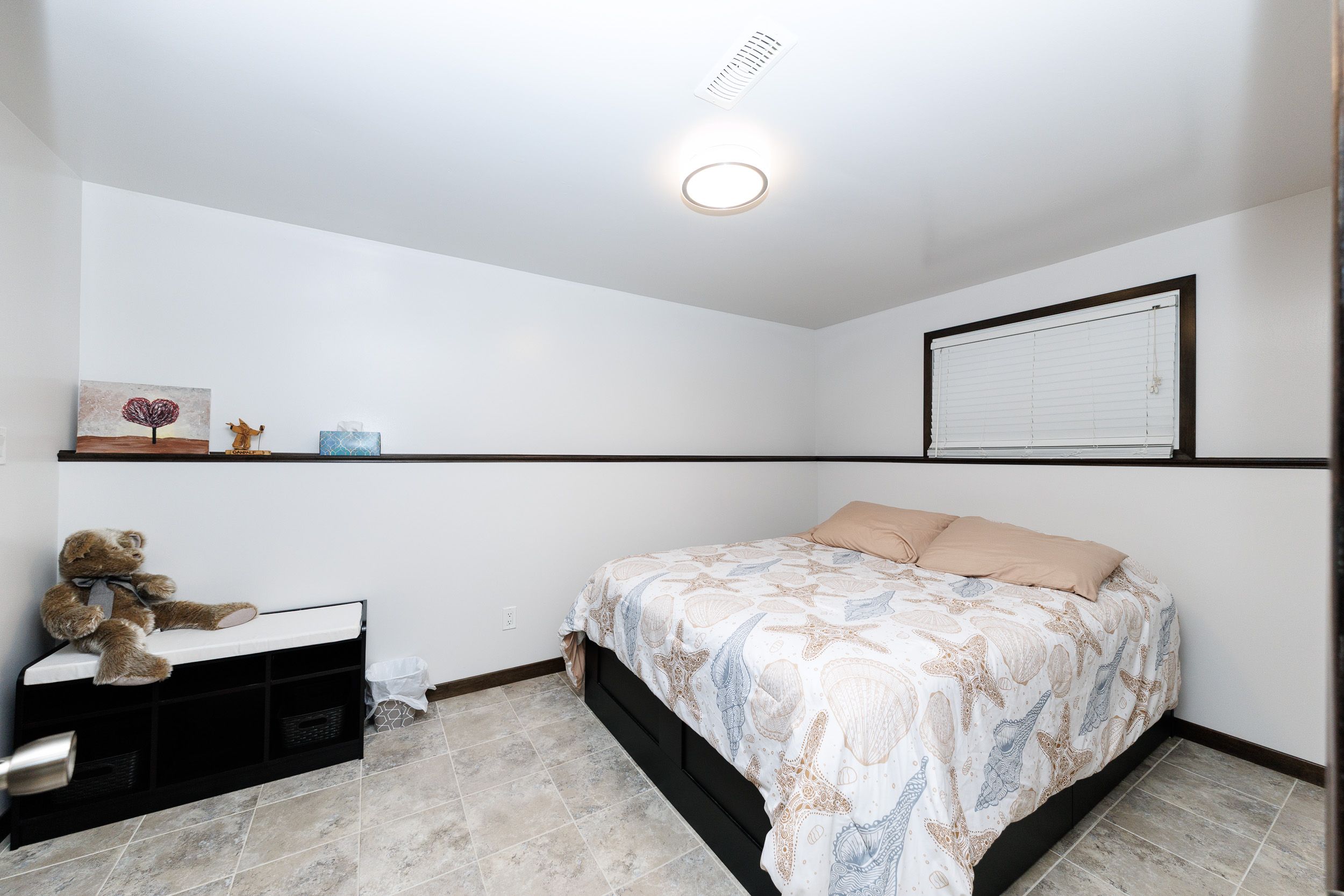 • Finished lower level with additional bedroom and cozy rec room.