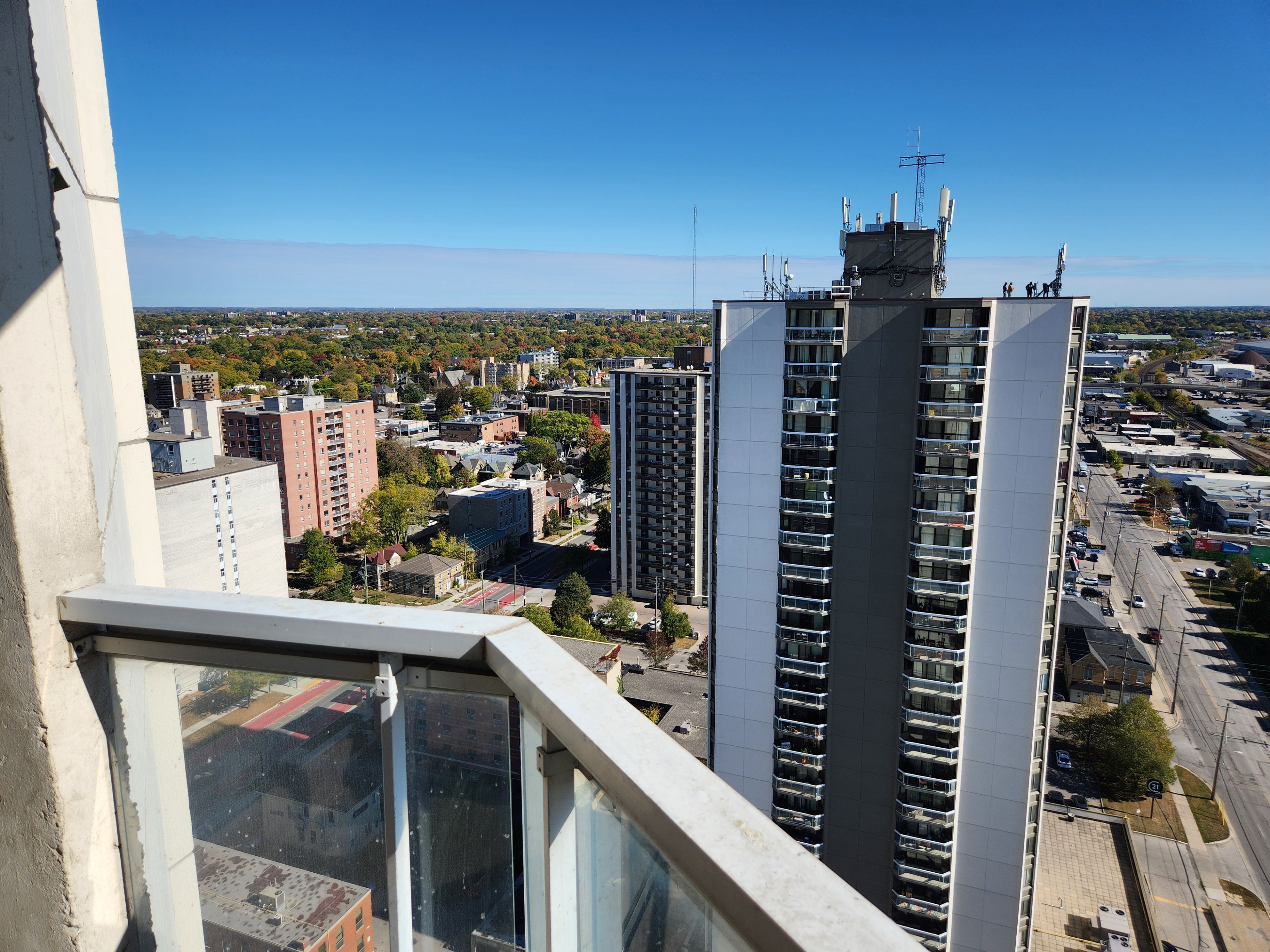 1 bedroom apartment available for lease; located on the 26th floor with spectacular views from the large balcony! This condo is in great shape, and boasts many renovations, including a beautifully updated kitchen, ceiling speakers, and cabinetry added to the bonus storage room. Apartment also has in-suite laundry, walk in closet for the spacious bedroom, and 1 underground parking spot. The building offers many amenities, including an indoor pool, tennis courts, sauna, exercise room, guest suite, common bbq area, party room, and plenty of visitor parking. All in a convenient downtown location, with public transit, victoria park, canada life place, grand theatre, shopping, and richmond row all closeby. No smokers please.