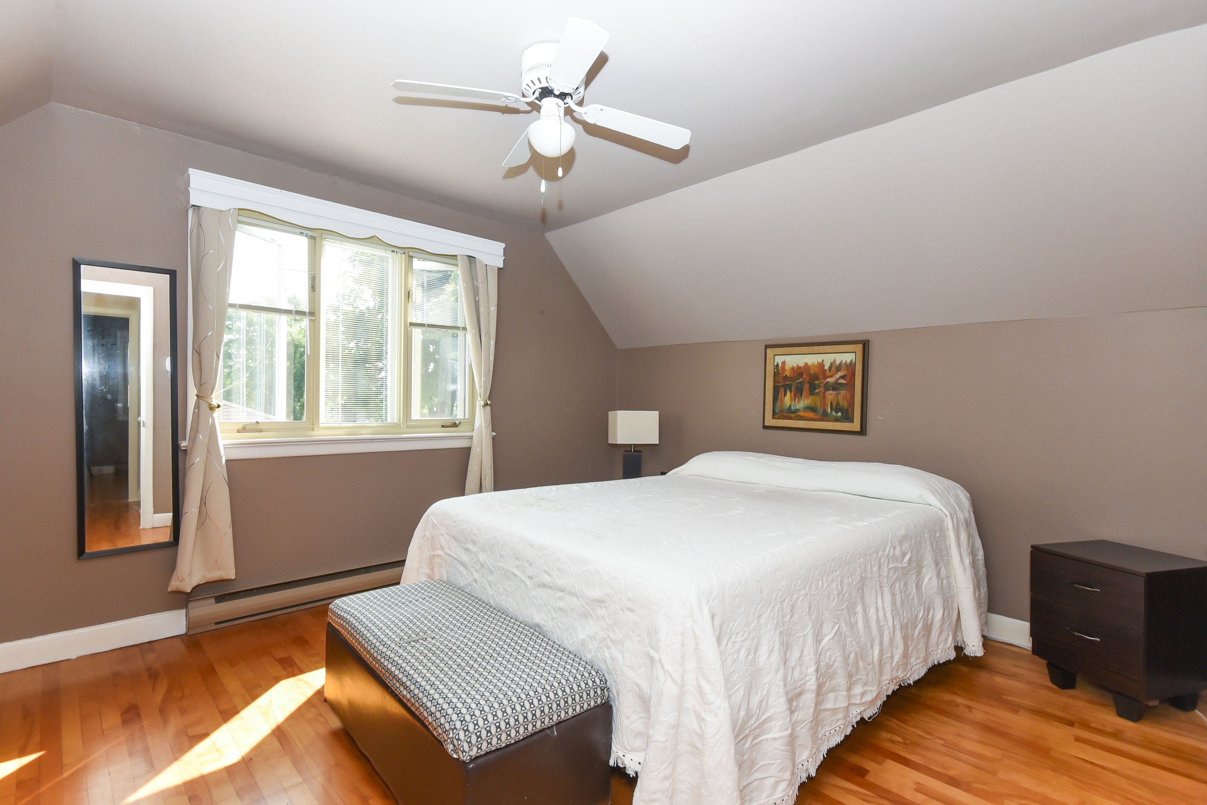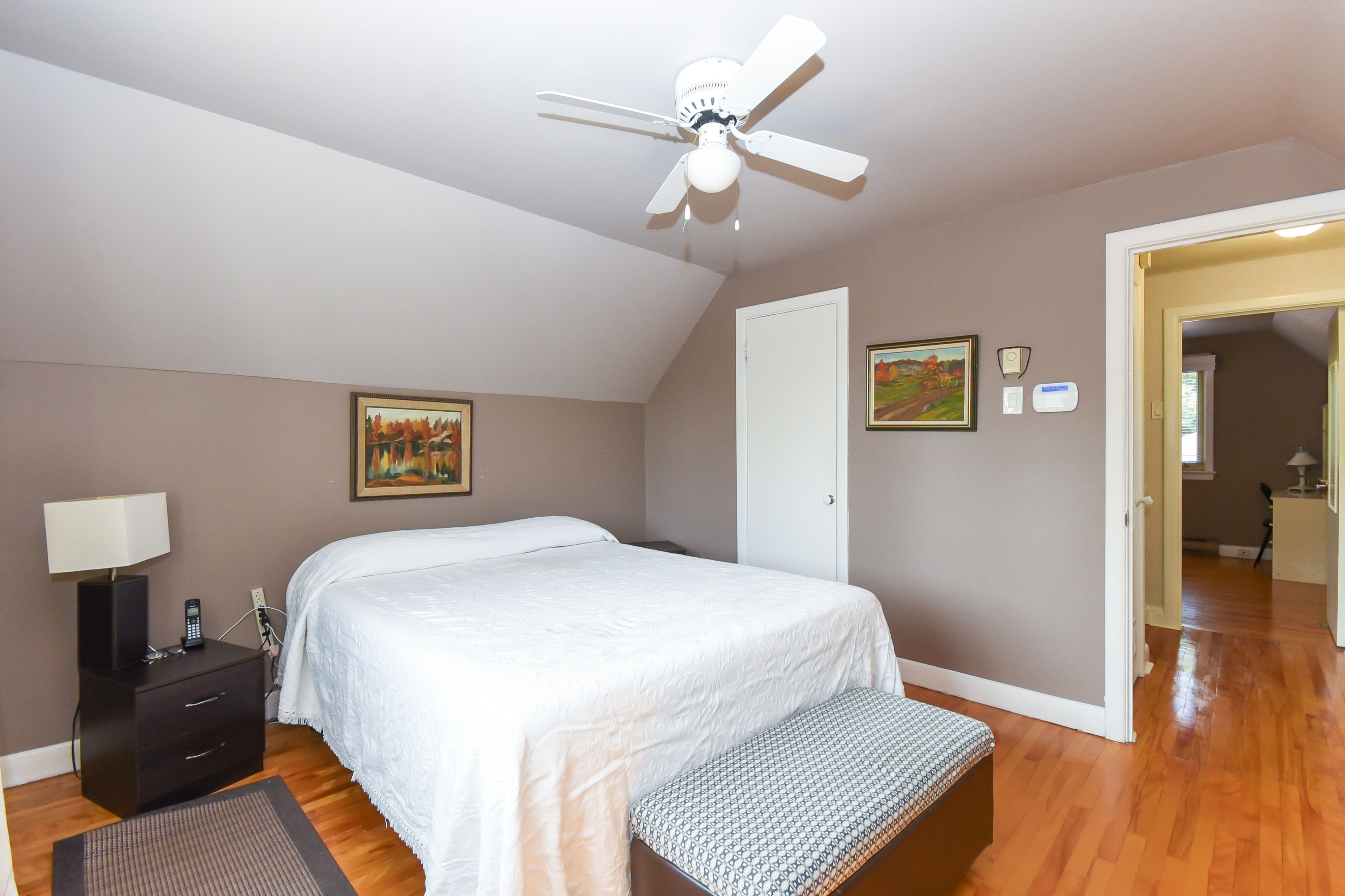 Lovingly maintained, this castle heights gem offers more than meets the eye. Set on a generous 50 x 100ft lot, this charming 1. 5-storey home features 2 bedrooms (formerly 3) and a flexible, layout ideal for modern living. Comfort is assured year-round with a new furnace and a/c (nov 2025) and an upgraded electrical panel (aug 2025). Inside, you'll find beautiful original strip hardwood floors and a bright, spacious eat-in kitchen filled with natural light and overlooking the large backyard. The kitchen is updated with quartz countertops (2025), cooktop (2024), fridge and dishwasher (2024), making it both stylish and functional. The former main-floor primary bedroom is currently used as a dining room, offering excellent layout flexibility and featuring a convenient main-floor powder room. Upstairs, two generous bedrooms with hardwood floors are complemented by a 4-piece main bath. The mostly finished lower level includes a cozy rec room or teen retreat, a wet bar, and a 3-piece bathroom, plus a large unfinished area ideal for laundry, storage, or future expansion. Outside, the property truly shines. Enjoy extensive landscaping, perennials, a 12' x 12' deck (2023), beautiful interlock patio, a large shed, mature hedges for privacy, and the standout 18' x 18' workshop features a cement pad, electricity, and lighting, and may offer potential for garage conversion with proper city approvals. The workshop would be perfect for the wood working enthusiast, as an art studio, home gym or so much more. Curb appeal is enhanced by interlock front steps, attractive planters, and a classic front brick façade. The widened driveway provides excellent parking for family and guests. Ideally located close to st. Laurent shopping centre, transit, schools, places of worship, and offering quick highway access for commuters. Snow removal contract for the season has been paid, so just move in and enjoy.