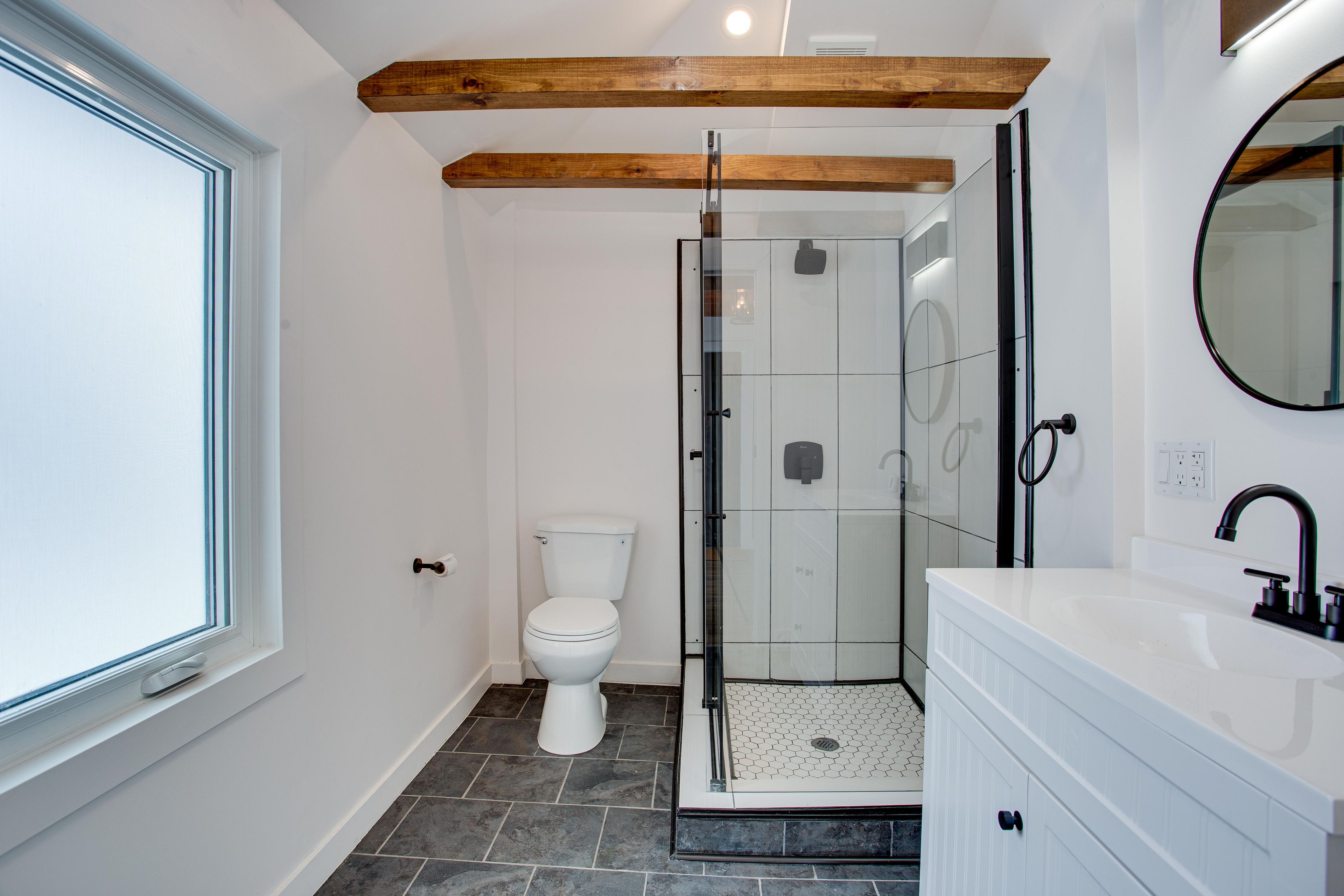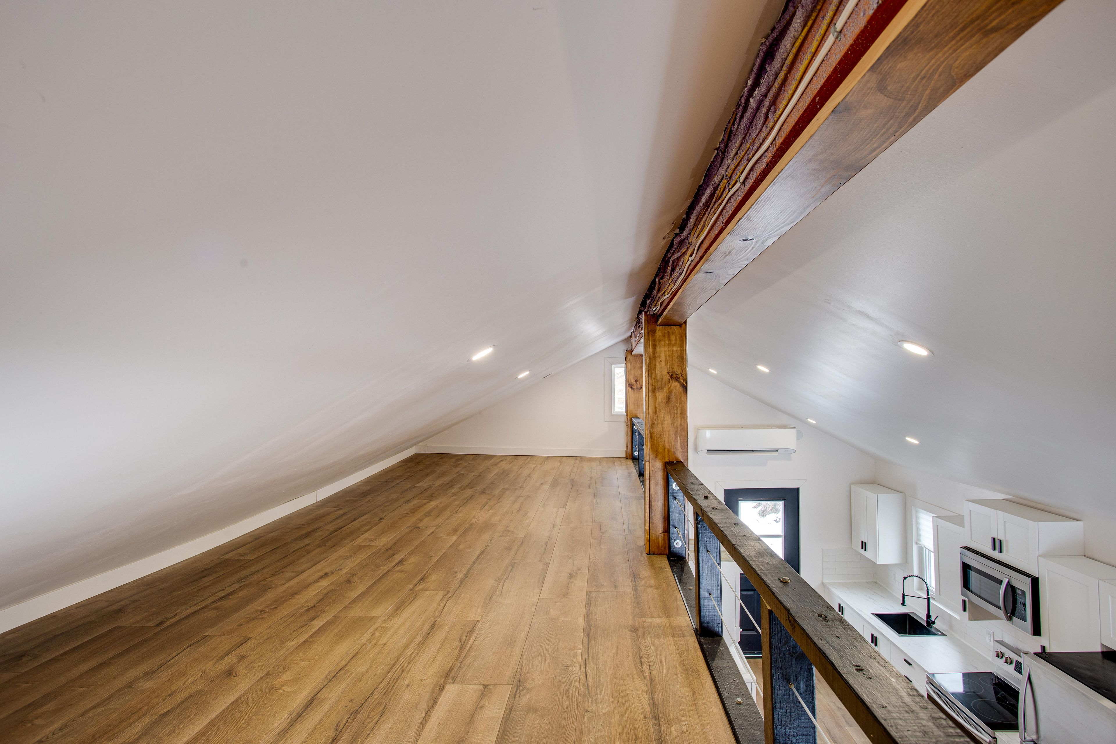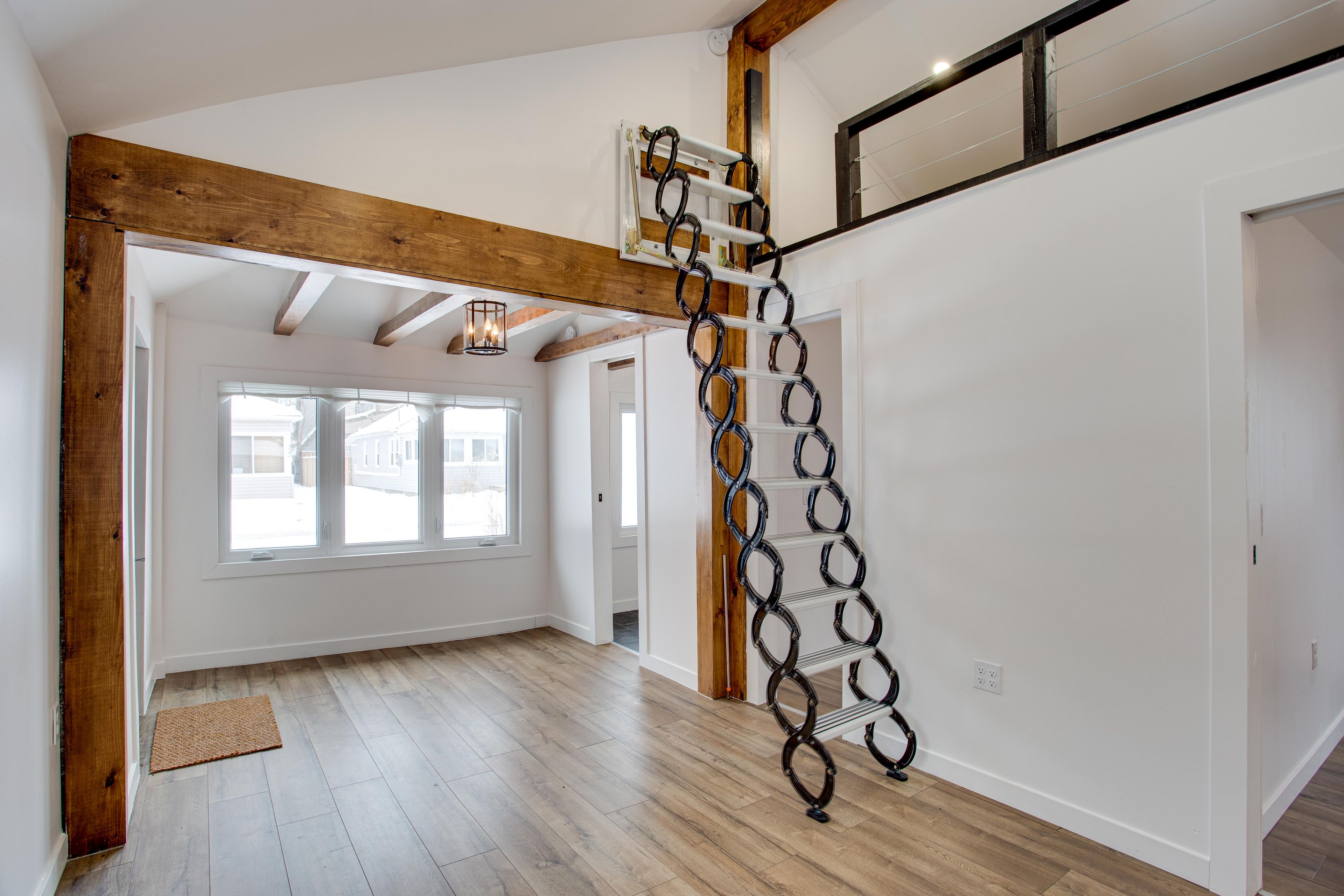 • Bright open-concept living area with vaulted ceilings and natural light.