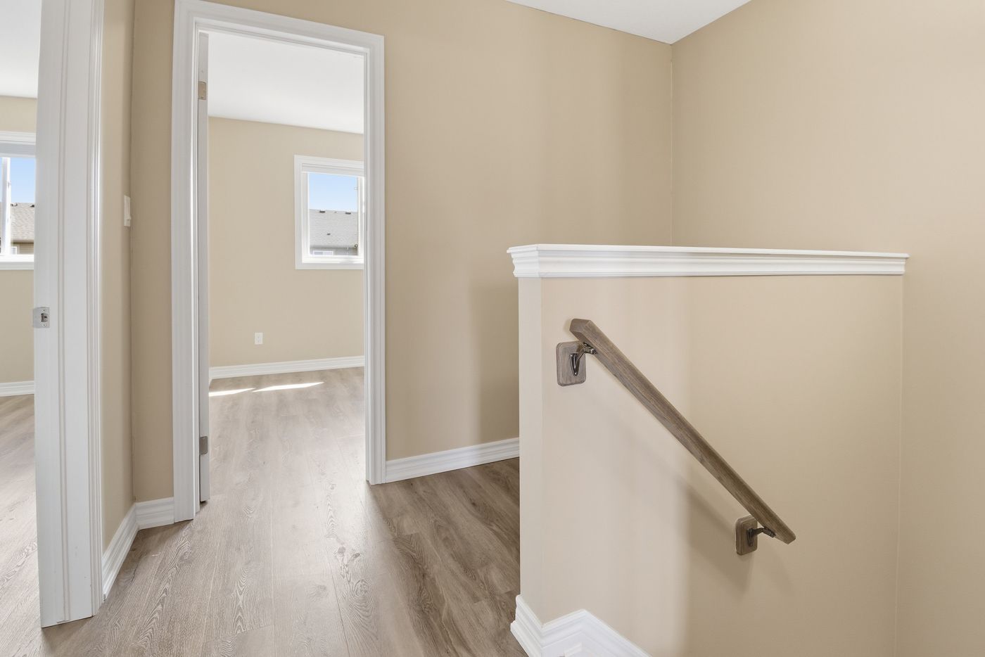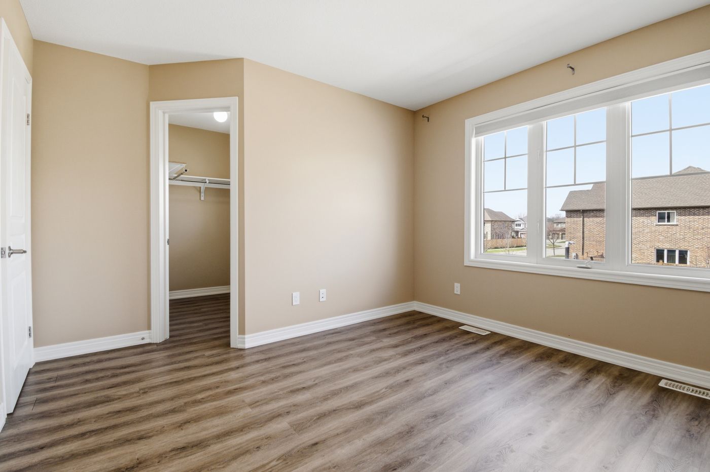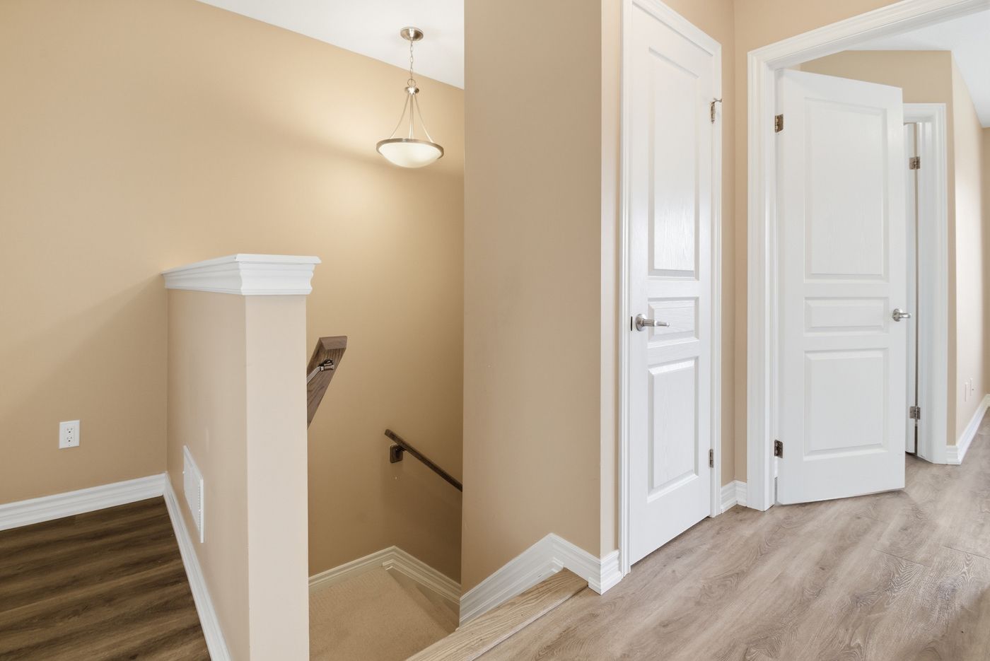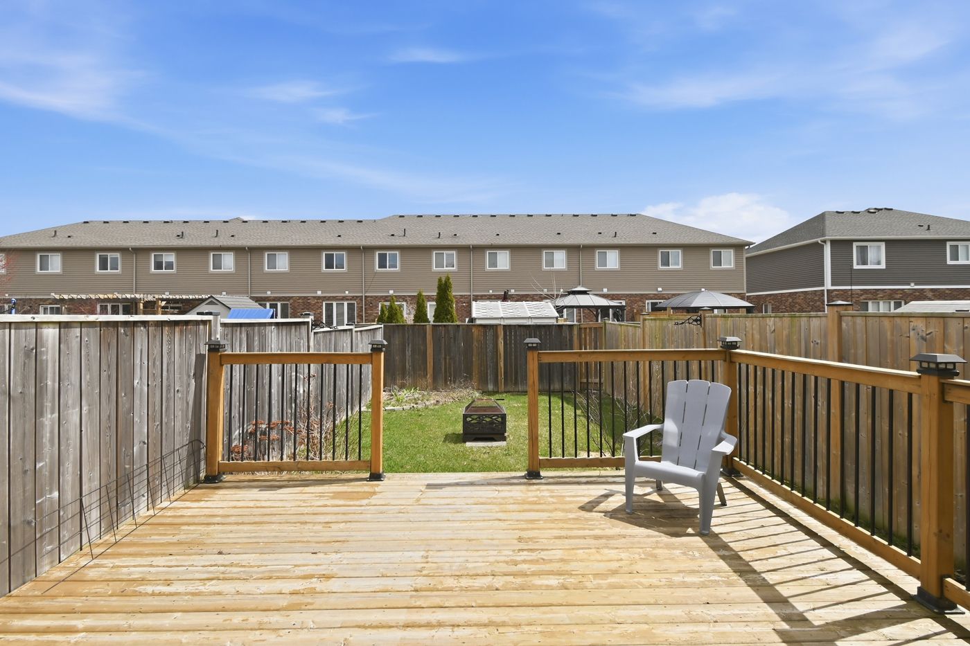 Freehold townhome in harvest estates, part of the coyle creek area in welland. Built in 2017 this home has space for a growing family. 3 bedrooms up with a walk in closet in primary and double closets in the other 2 . A 4 piece bath and a small nook round out this floor. The main floor entry way is easy care ceramic leading past the 2 piece powder room to the kitchen, dining , living space where you'll find triple windows in the living area spilling lots of sunshine in and sliding doors in the kitchen area to a 16 x 16 deck with railings and fully fenced back yard. Natural gas line for your bbq too. An extra bank of kitchen cabinets expands pantry & storage use and 4 stainless steel appliances are included . Plus there is a fully insulated floor to ceiling basement ready to be finished exactly how you dreamed it to be. Lots of space to grow in. Gaiser park is just a walk down the street where you or the kids can play on the basketball or tennis court, playground and walking trail or take a short drive to find one of several local golf courses.