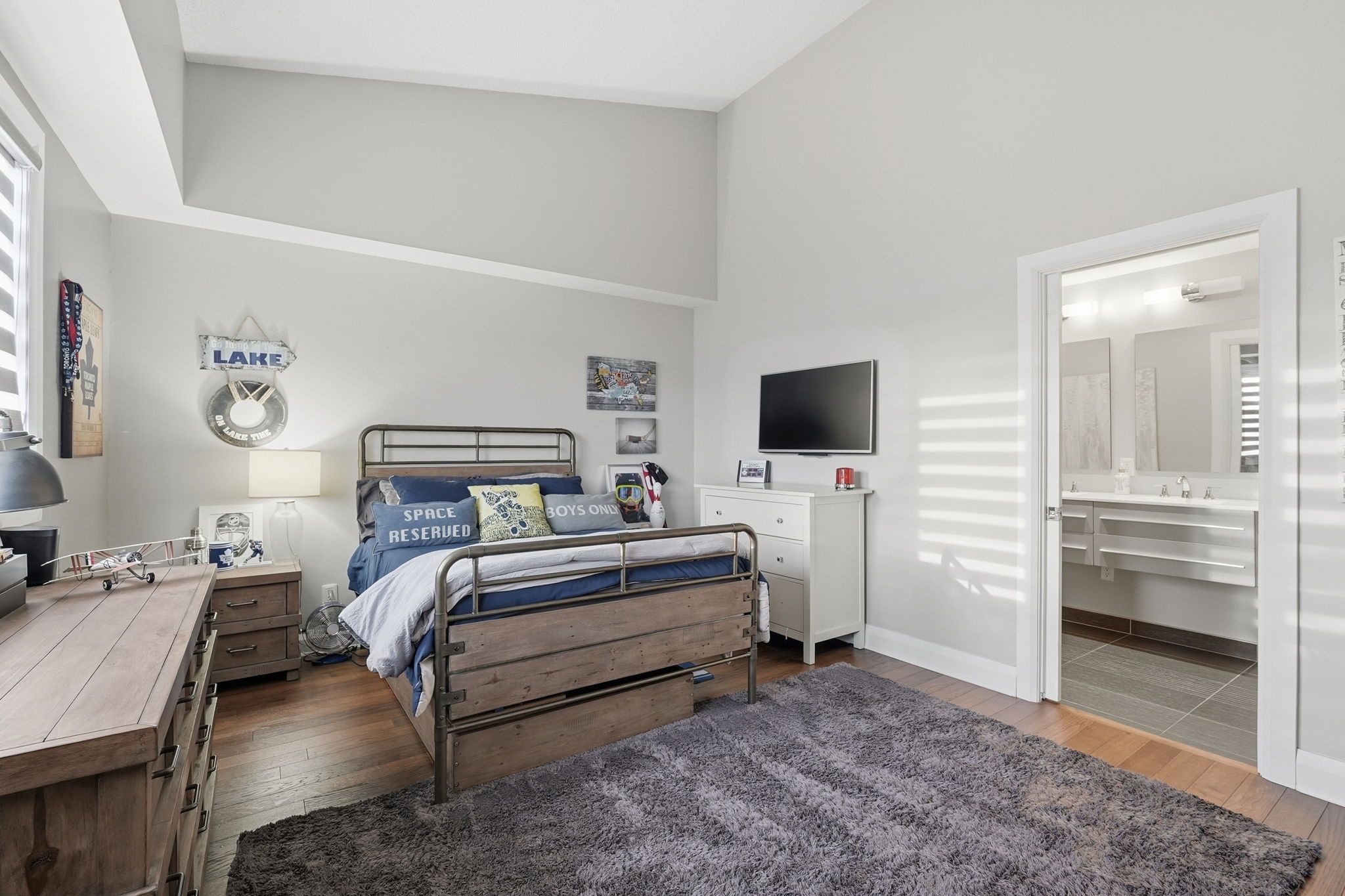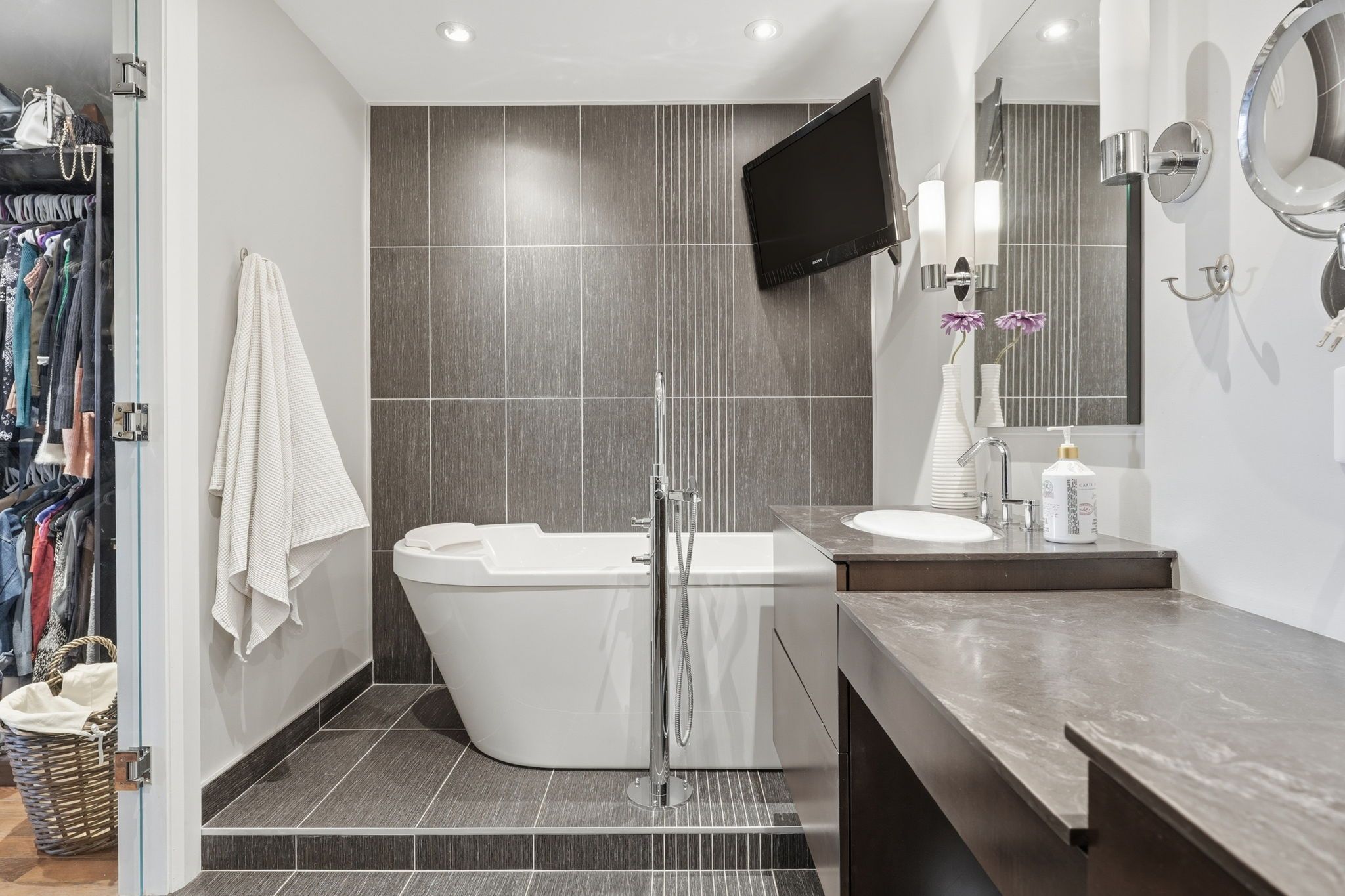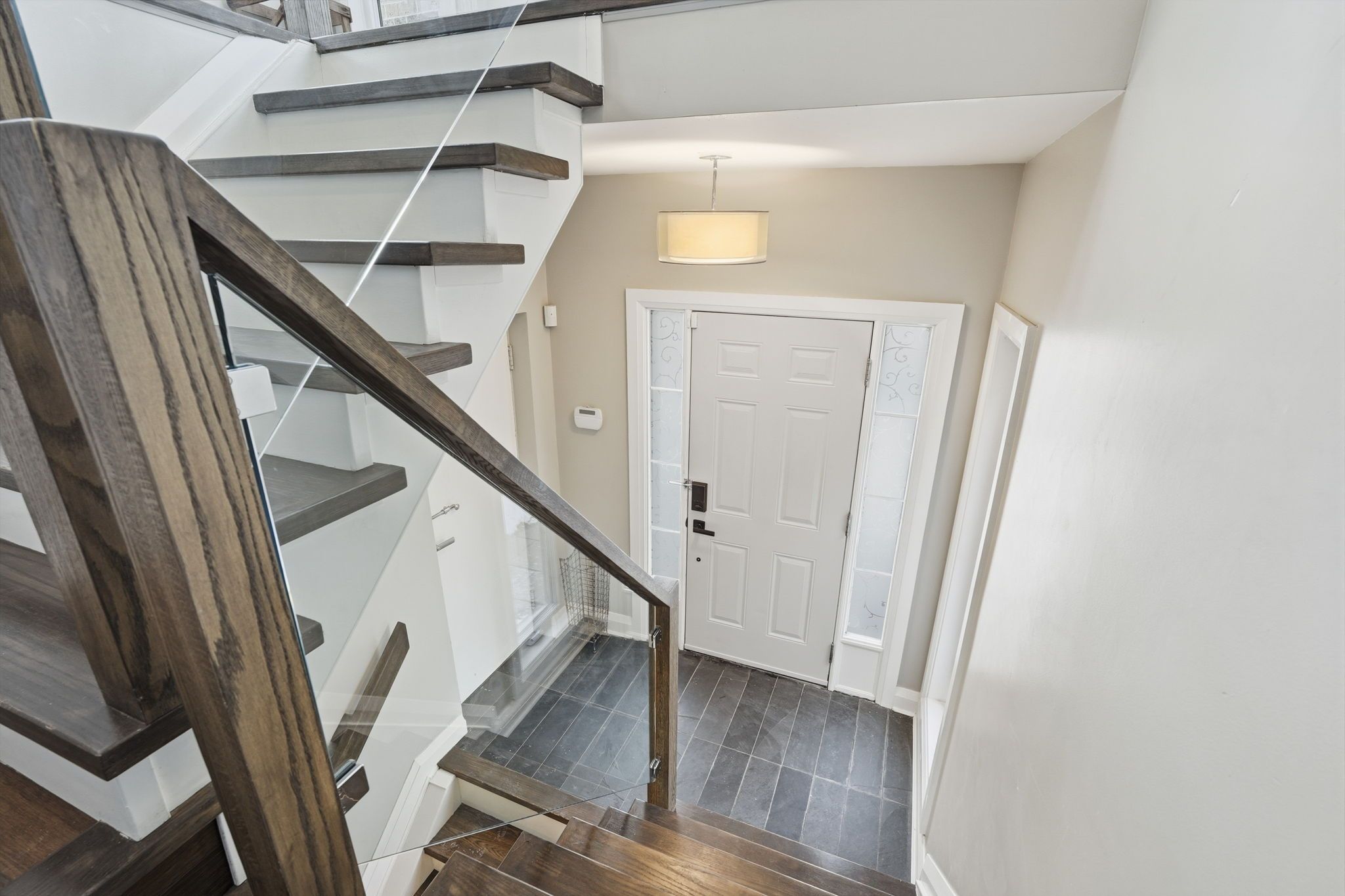 Exceptional executive townhome in the terraces on new street. Sun-filled great room with soaring 15. 5' cathedral ceilings and gas fireplace. Rich hardwood flooring throughout. Chef-inspired kitchen with quartz counters and generous peninsula. East-facing terrace perfect for morning coffee or entertaining. Two main floor bedrooms, each with full bath. Primary suite features a spa-like 5pc ensuite, walk-in and walk-through closets. Second bedroom with ensuite privilege to 4pc bath. Convenient main-floor laundry. Fully finished lower level with full bath, additional walk-in closet with built-ins, multiple storage closets, and versatile space ideal for gym, office, or guest suite. All new windows replaced in 2024. Inside garage entry, ample storage, and maintenance-free living. Steps to downtown burlington, the lake, schools, parks, and shopping. A rare turnkey opportunity in a sought-after location.