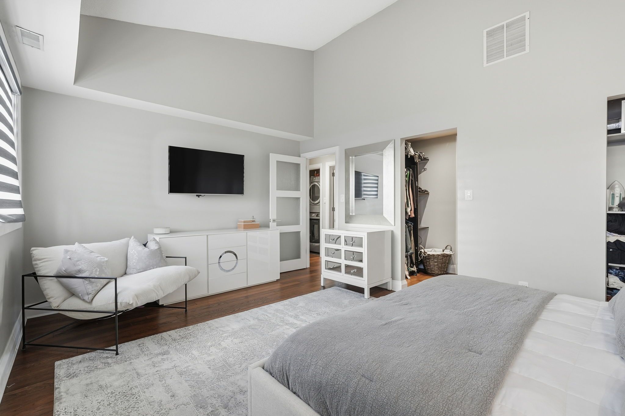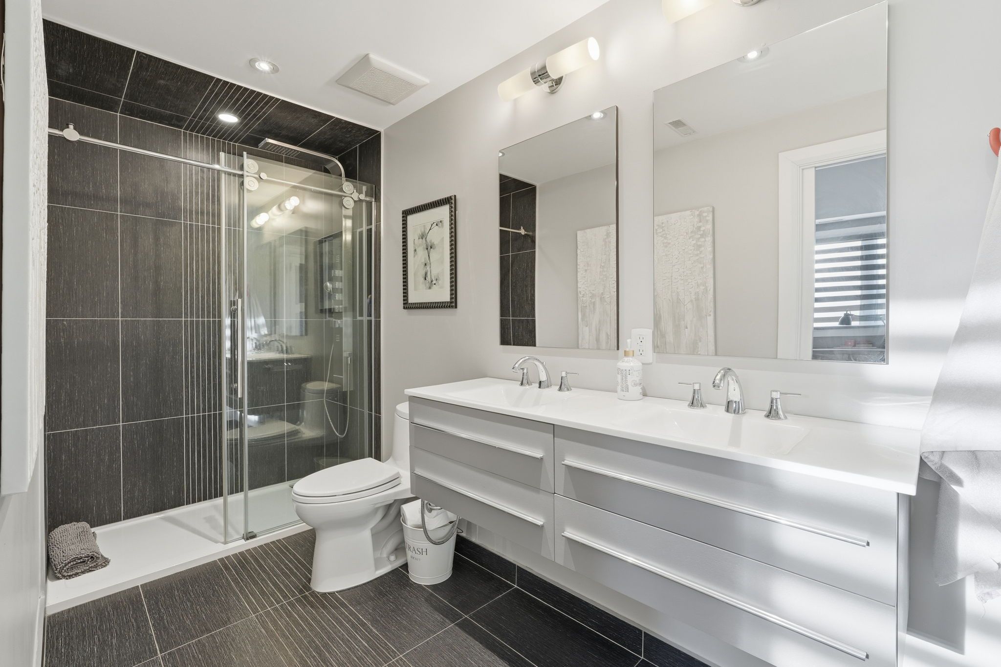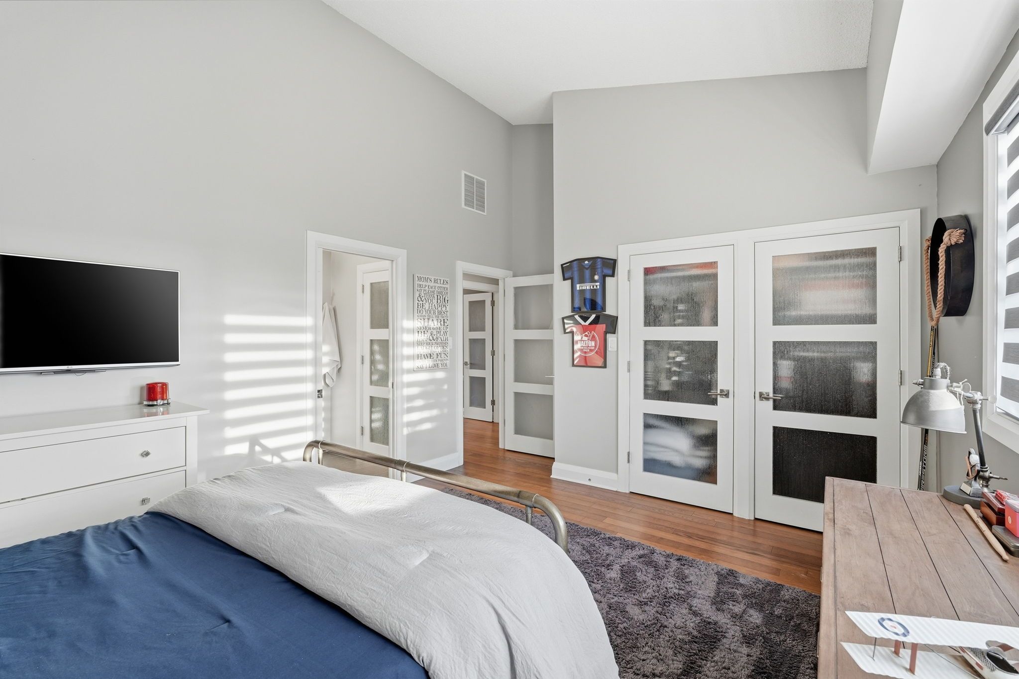 Exceptional executive townhome in the terraces on new street. Sun-filled great room with soaring 15. 5' cathedral ceilings and gas fireplace. Rich hardwood flooring throughout. Chef-inspired kitchen with quartz counters and generous peninsula. East-facing terrace perfect for morning coffee or entertaining. Two main floor bedrooms, each with full bath. Primary suite features a spa-like 5pc ensuite, walk-in and walk-through closets. Second bedroom with ensuite privilege to 4pc bath. Convenient main-floor laundry. Fully finished lower level with full bath, additional walk-in closet with built-ins, multiple storage closets, and versatile space ideal for gym, office, or guest suite. All new windows replaced in 2024. Inside garage entry, ample storage, and maintenance-free living. Steps to downtown burlington, the lake, schools, parks, and shopping. A rare turnkey opportunity in a sought-after location.