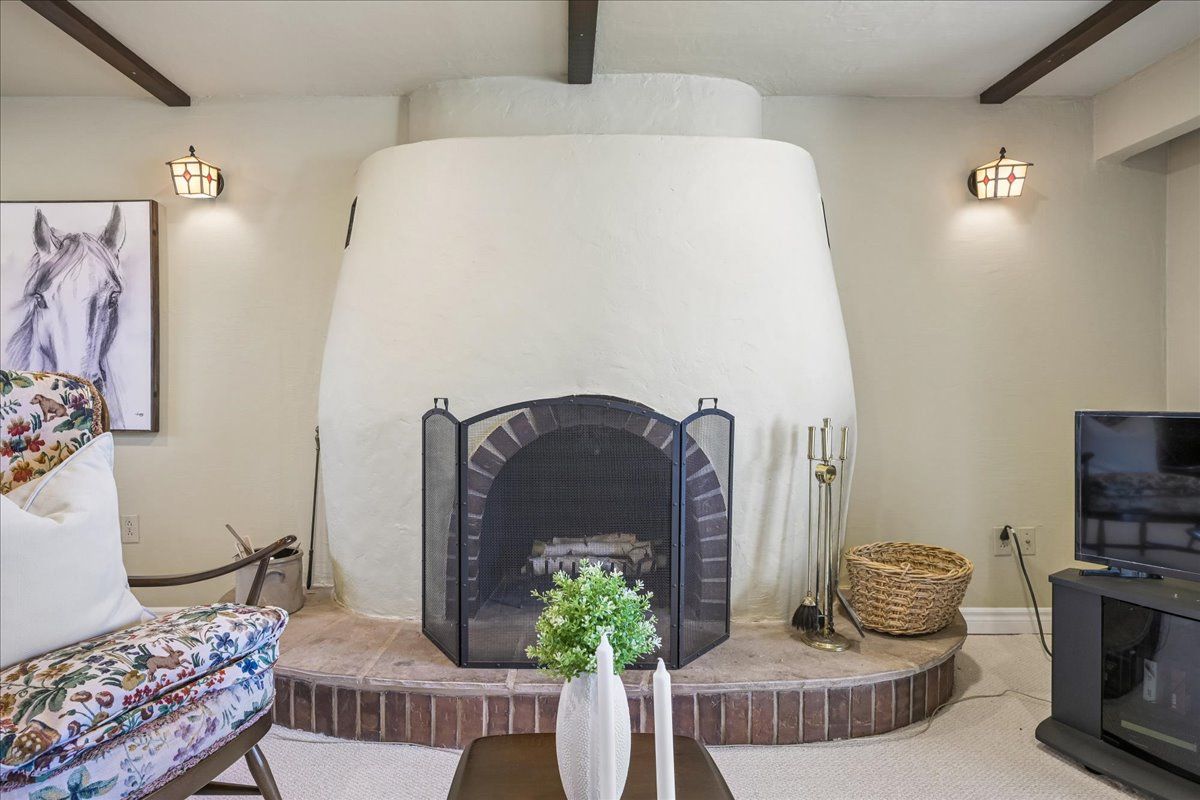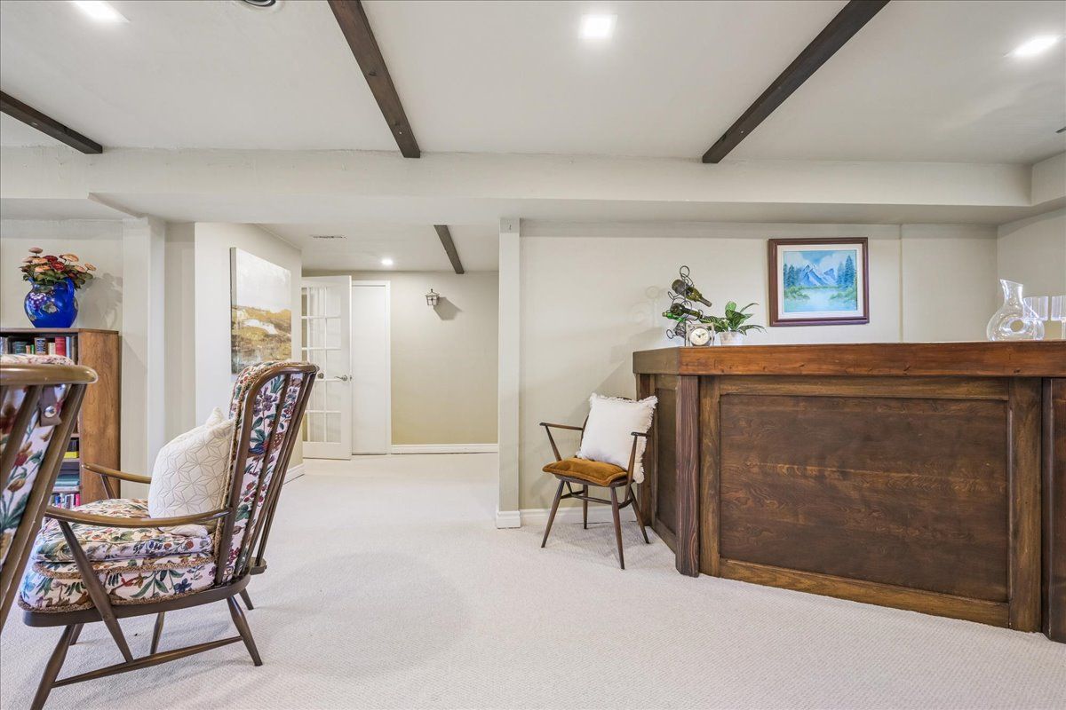 • Versatile lower level with built-in bar and cozy wood-burning fireplace.