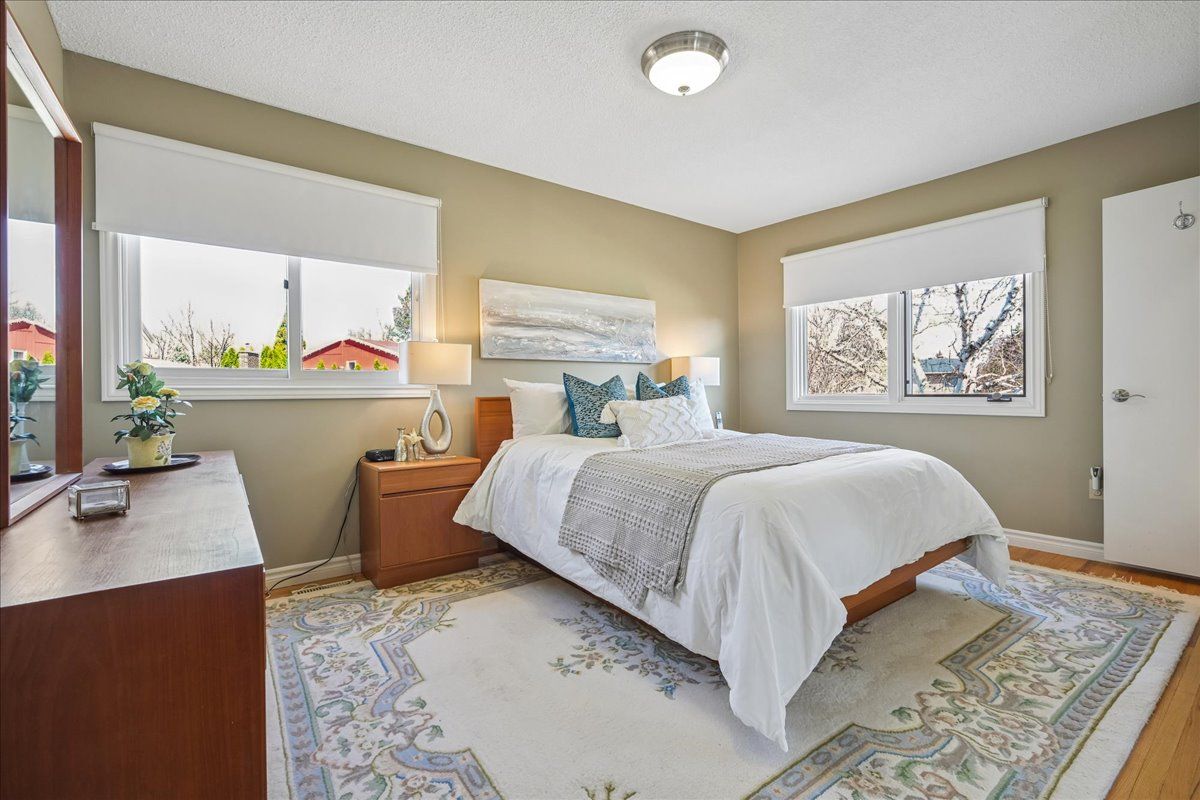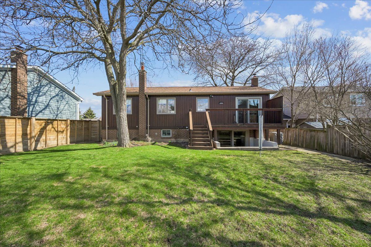 Welcome to this rarely offered raised bungalow, nestled on a quiet and picturesque court. This beautiful home sits on an impressive 59 x 121 ft lot, offering both space and privacy. Featuring a double car garage and a wide frontage, the property provides excellent curb appeal and ample parking. The main floor offers comfortable, functional living with a bright, open living and dining room filled with natural light, highlighted by a charming bay window overlooking the quiet court. The dining area features a walk-out to a deck, perfect for easy access to backyard entertaining. The quaint kitchen includes a convenient built-in breakfast bar and plenty of storage with ample cabinetry, making it both practical and inviting. The home offers three comfortable bedrooms, including a primary bedroom with a large double closet and a rarely available 3-piece ensuite. The additional bedrooms are versatile and well-suited for family. Downstairs, you'll find a spacious open-concept recreation room, ideal for entertaining or relaxing, complete with a built-in bar and a cozy wood-burning fireplace. Bright above-grade windows fill the space with natural light, while a double sliding door walk-out provides direct access to the backyard. This level also features an additional 3-piece bathroom and a well-designed laundry room with washer and dryer set into cabinetry, offering added counter space, storage, and a convenient laundry sink. The basement also offers a fourth bedroom with laminate flooring, ideal for guests, extended family, or a private home office. Just minutes to hwy 403 and the qew, with easy access to shopping, big box stores, and u of t mississauga-truly a rare opportunity you won't want to miss.