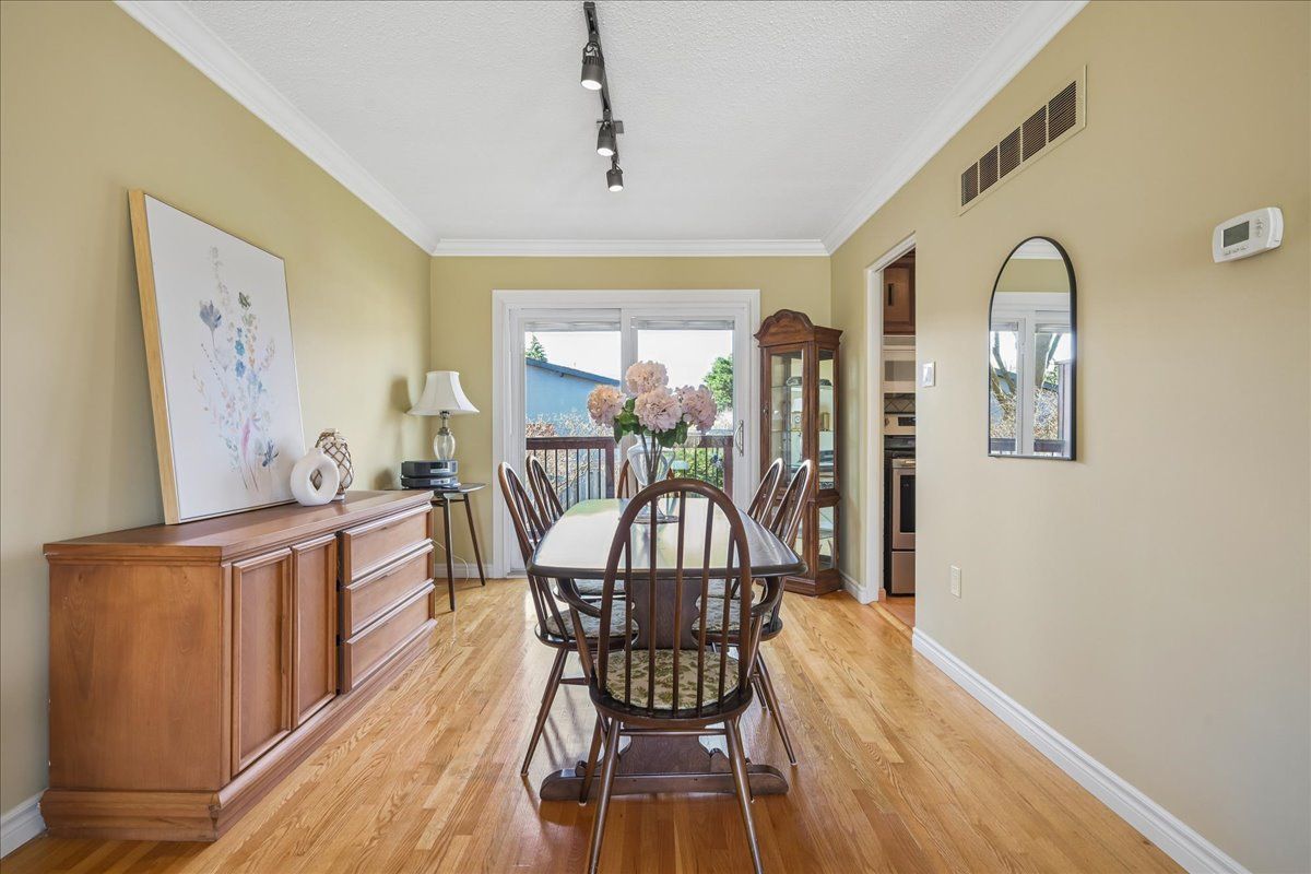 • Bright main floor has an open living/dining area with a charming bay window.