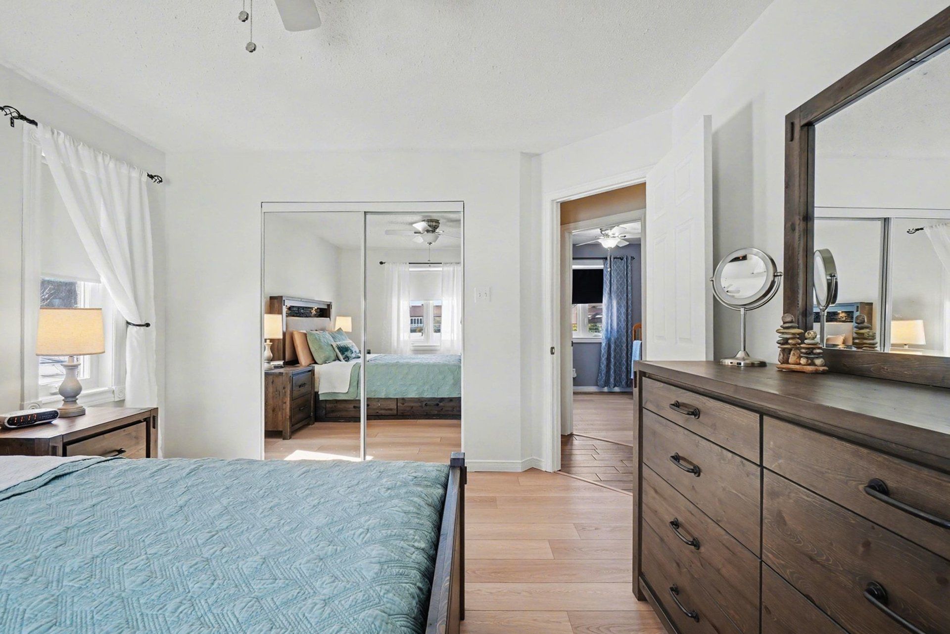 • Farmhouse-inspired kitchen with granite countertops and modern appliances.
