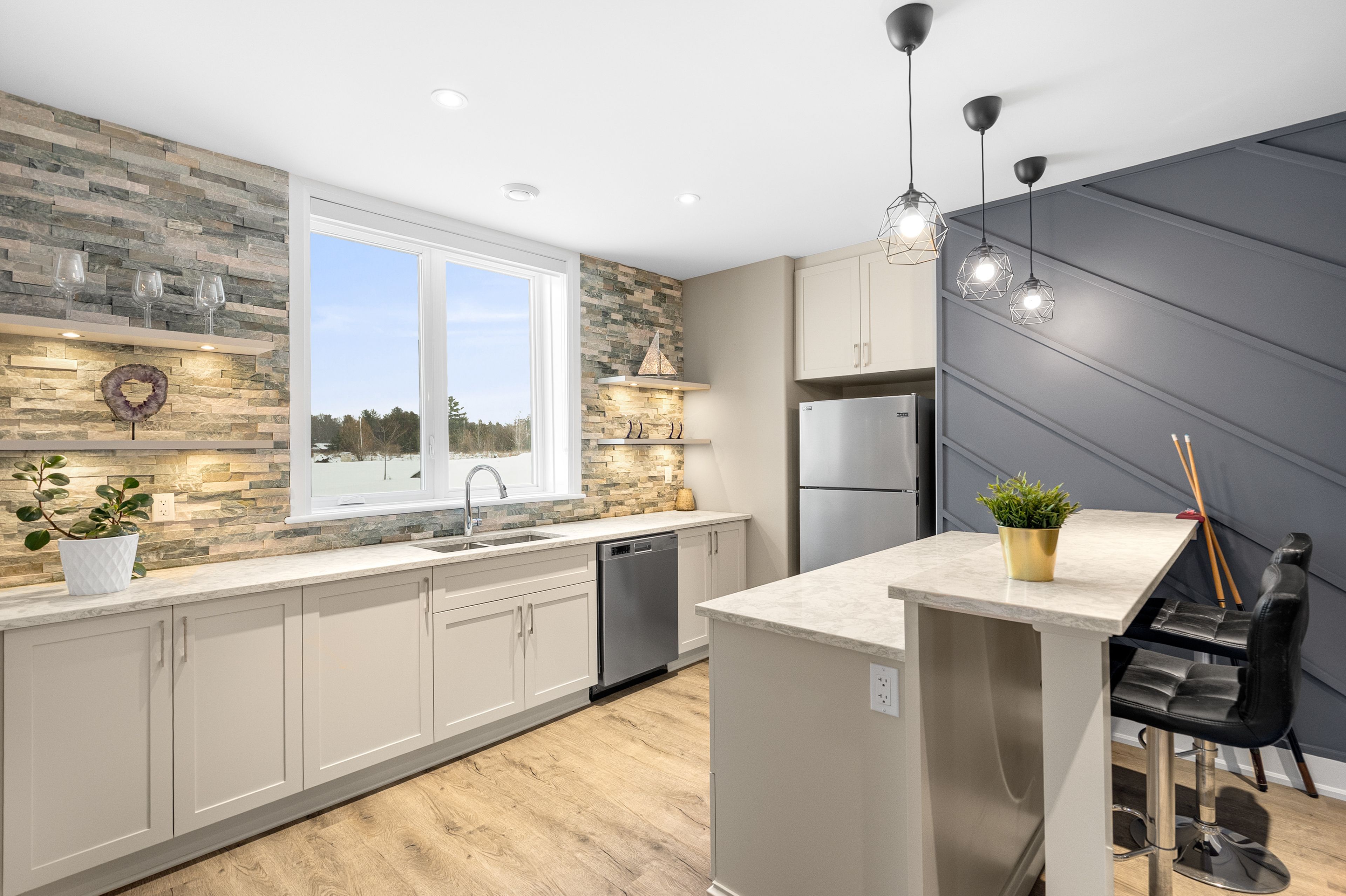 • Modern 2021-built bungalow on a huge private lot backing onto forest.