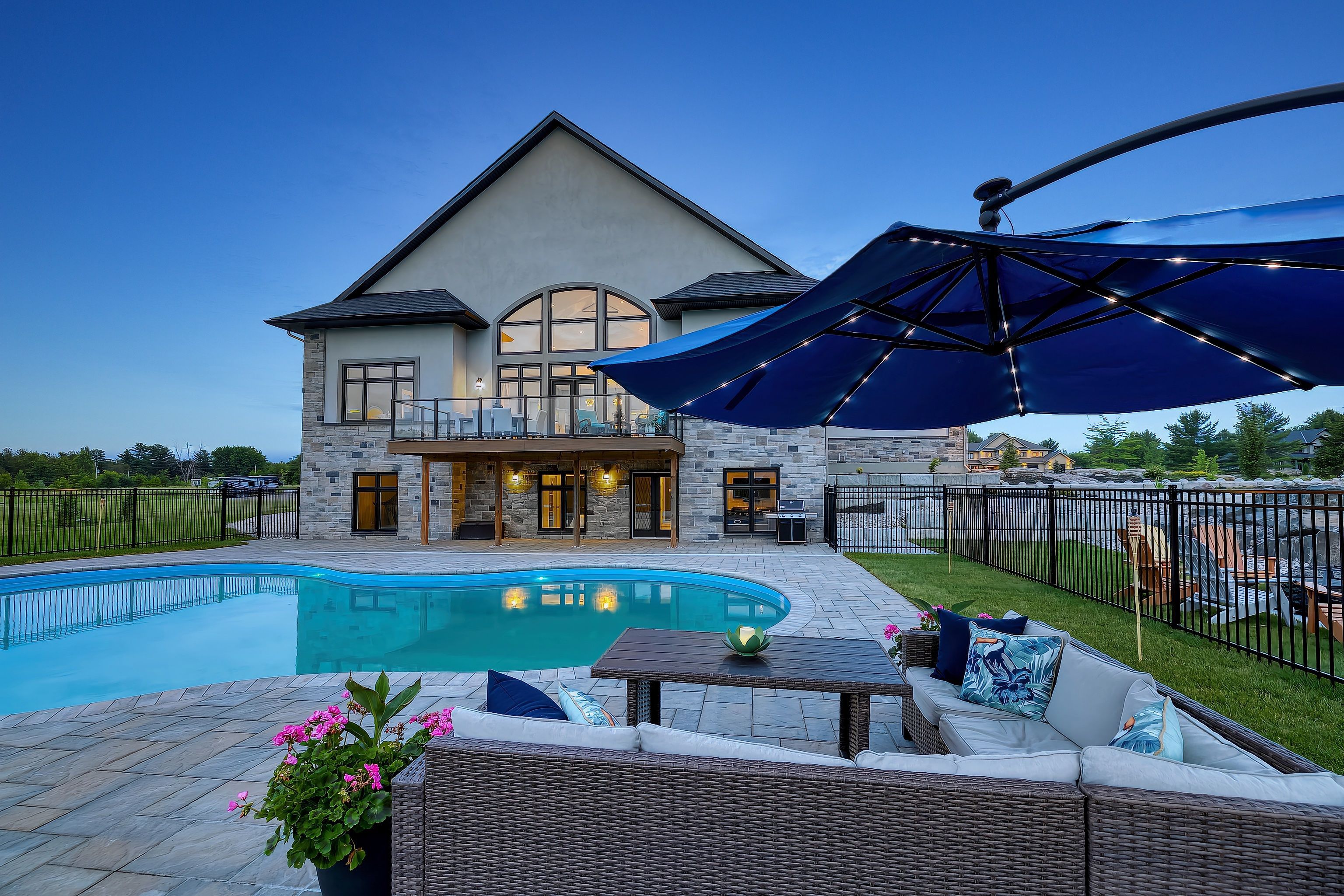 Elevate your lifestyle in this 2021-built executive bungalow at 324 hedley way, set on a rare, expansive 182 x 527 ft private lot in prestigious kanata north, backing onto forest for ultimate seclusion close to everything. A grand driveway approaches the bright 3-car garage, perfect for car enthusiasts or family needs. Step inside to soaring 12-ft ceilings throughout and a breathtaking 19-ft cathedral great room flood the home with light and volume, one-level luxury redefined. The chef's kitchen is exceptional: hand-glazed cabinetry, expansive granite island, induction cooktop with pot filler, dual ovens, frigidaire commercial-grade fridge and freezer, dedicated wine bar, walk-in pantry, and integrated workspace. Retreat to the primary suite oasis featuring a double-sided fireplace and spa-like ensuite with oversized 6. 5 x 6 ft glass shower, deep soaker tub, dual vanities, private water closet, and massive walk-in closet. The primary suite alone lives like a luxury condo, bedroom, spa bath, and boutique walk-in totalling over 700 square feet. A custom staircase descends to the bright walkout lower level (9'6" ceilings, in-floor radiant heat) boasting a dedicated theatre room, wet bar, games area, and two additional bedrooms sharing a jack & jill bath, ideal as a second living space. Outside, resort-style bliss awaits: multi-tiered landscaping, mature forest privacy, and a heated saltwater pool. Your private escape, just minutes from kanata's tech hub and amenities. True refined resort living in one of ottawa's most sought-after enclaves. Don't miss this exceptional opportunity.
