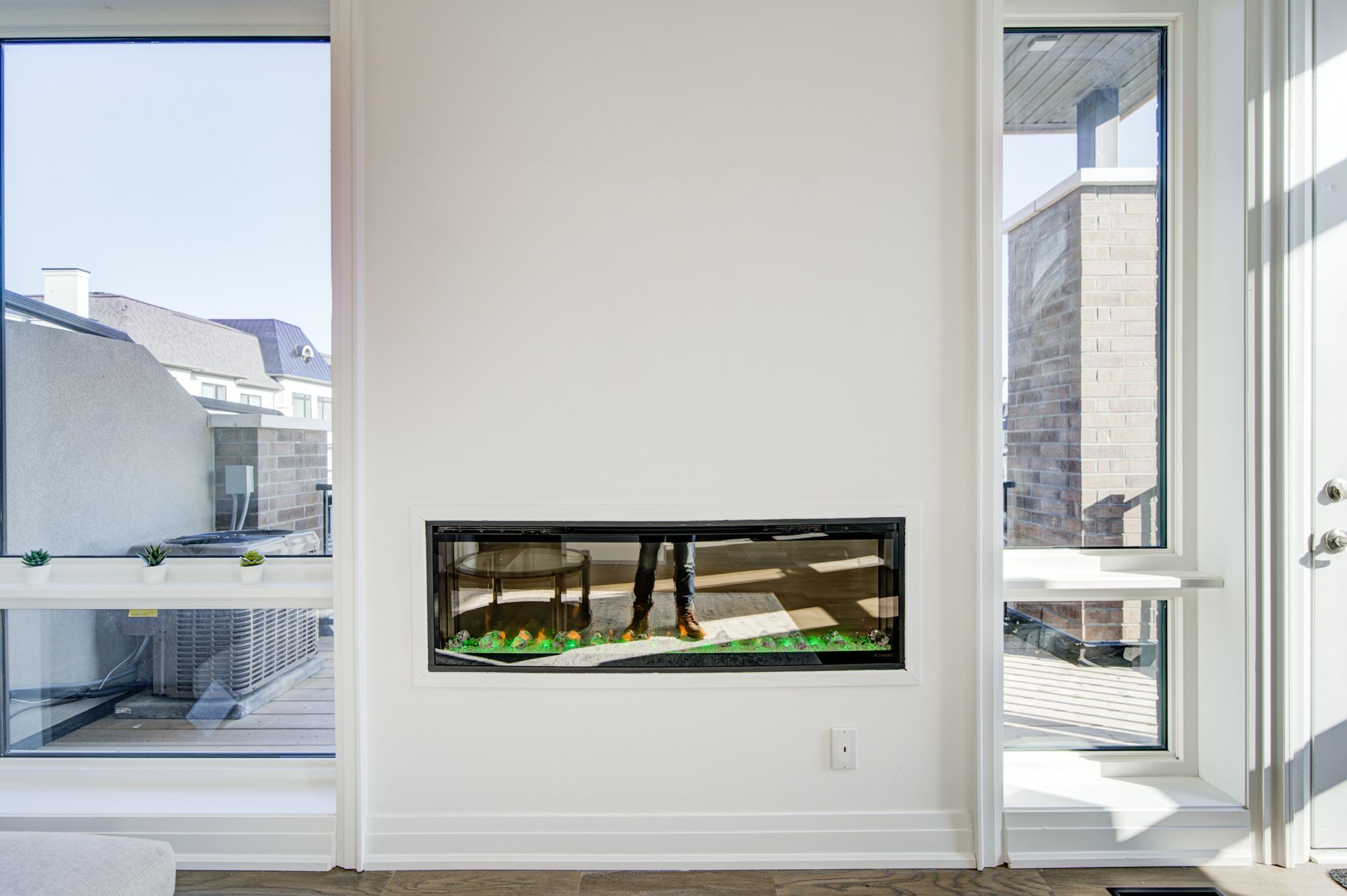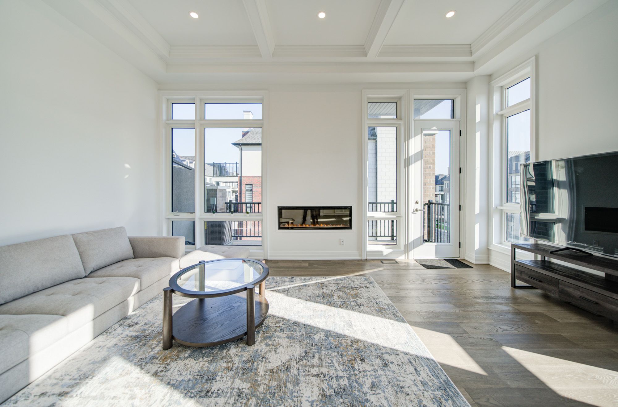 Stunning corner 3-storey townhome with luxury finishes throughout! This spacious 3-bedroom home features a fully finished lower level with a private bedroom and full bathroom-perfect for guests or in-laws. Enjoy soaring ceilings, including an impressive 11-foot ceiling in the living room and kitchen area. Large windows throughout bring in ample sunlight, creating a bright and inviting space. The upgraded gourmet kitchen is a showstopper, complete with designer white cabinetry, a large quartz waterfall island, matching backsplash, and premium appliances including a wolf stove, sub-zero fridge, and sub-zero wine fridge. Walk out directly from the kitchen to an oversized balcony-perfect for entertaining. Elegant details include floor-to-ceiling windows, waffle ceilings, and gas fireplaces. Spacious, sun-filled, and beautifully finished-located in an ideal, highly desirable area.