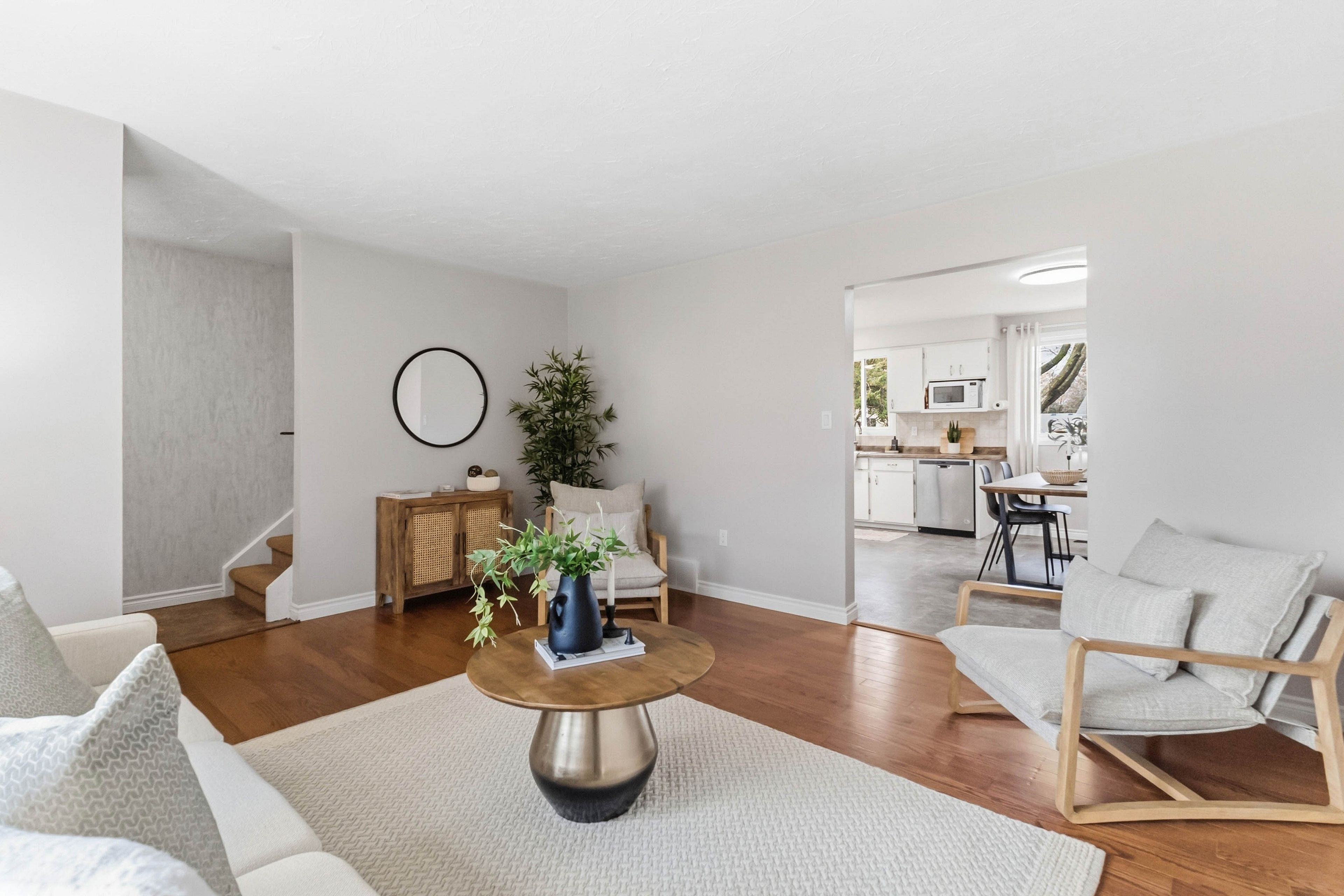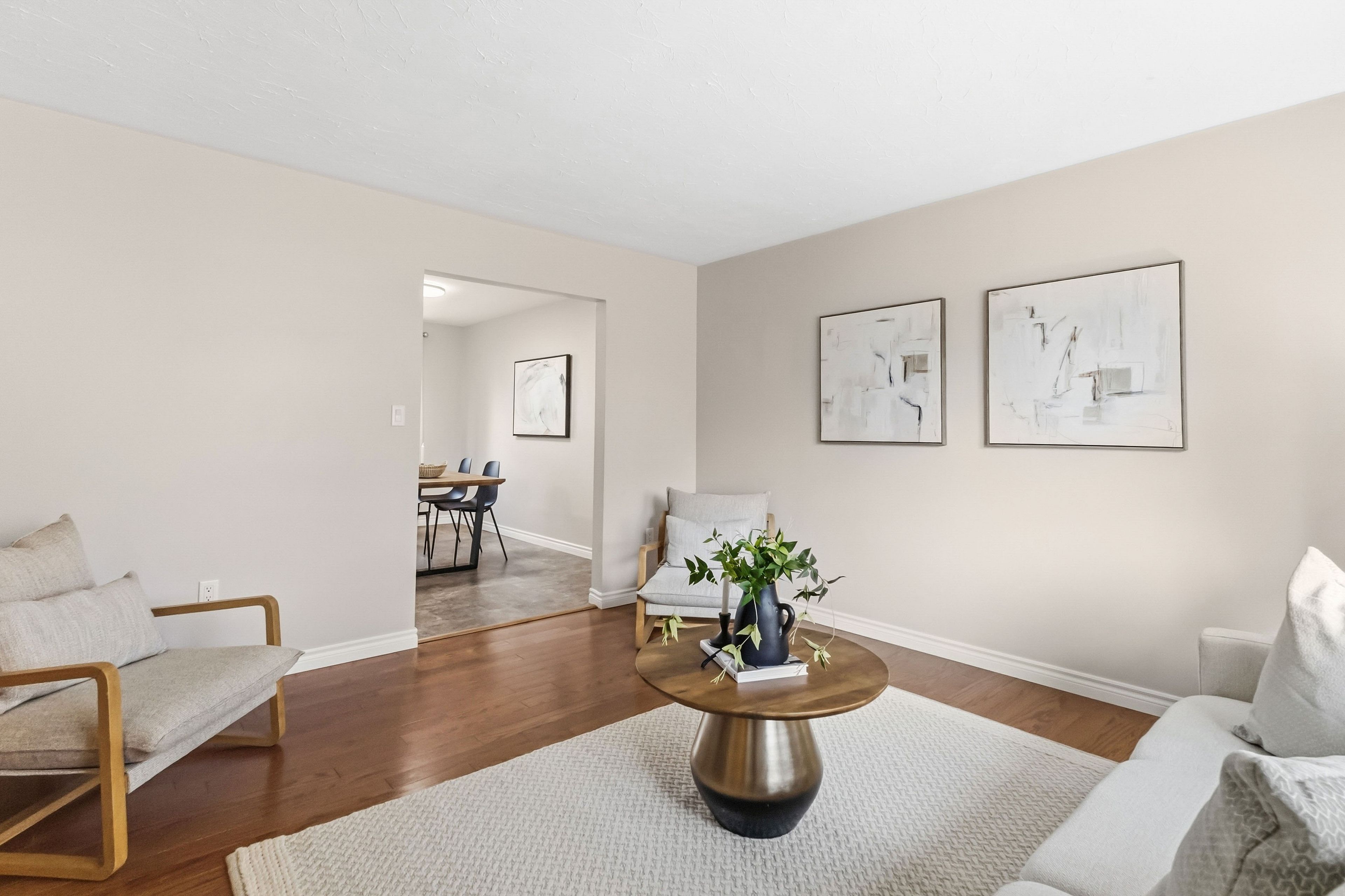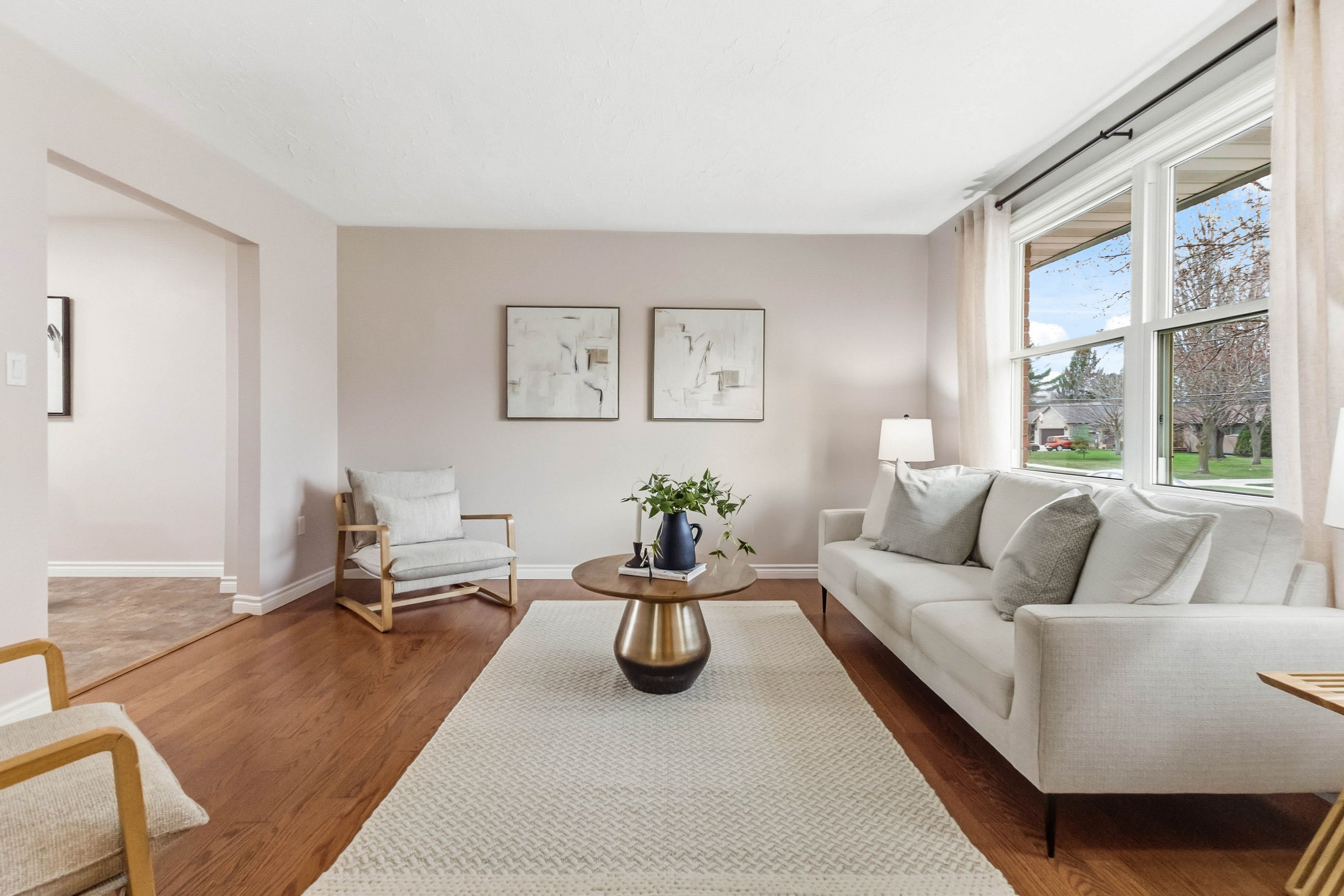 • Bright living room with hardwood floors for a welcoming atmosphere.