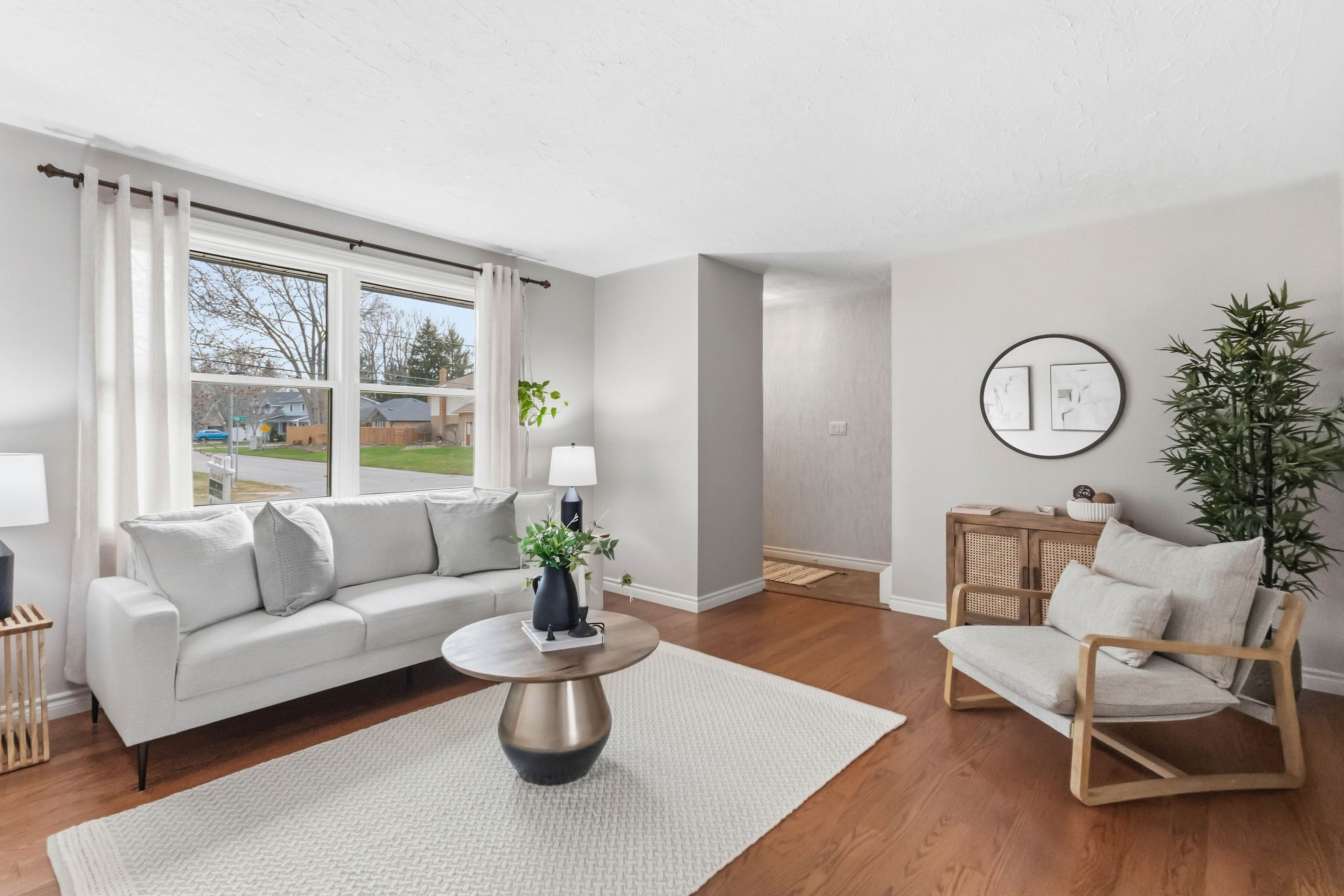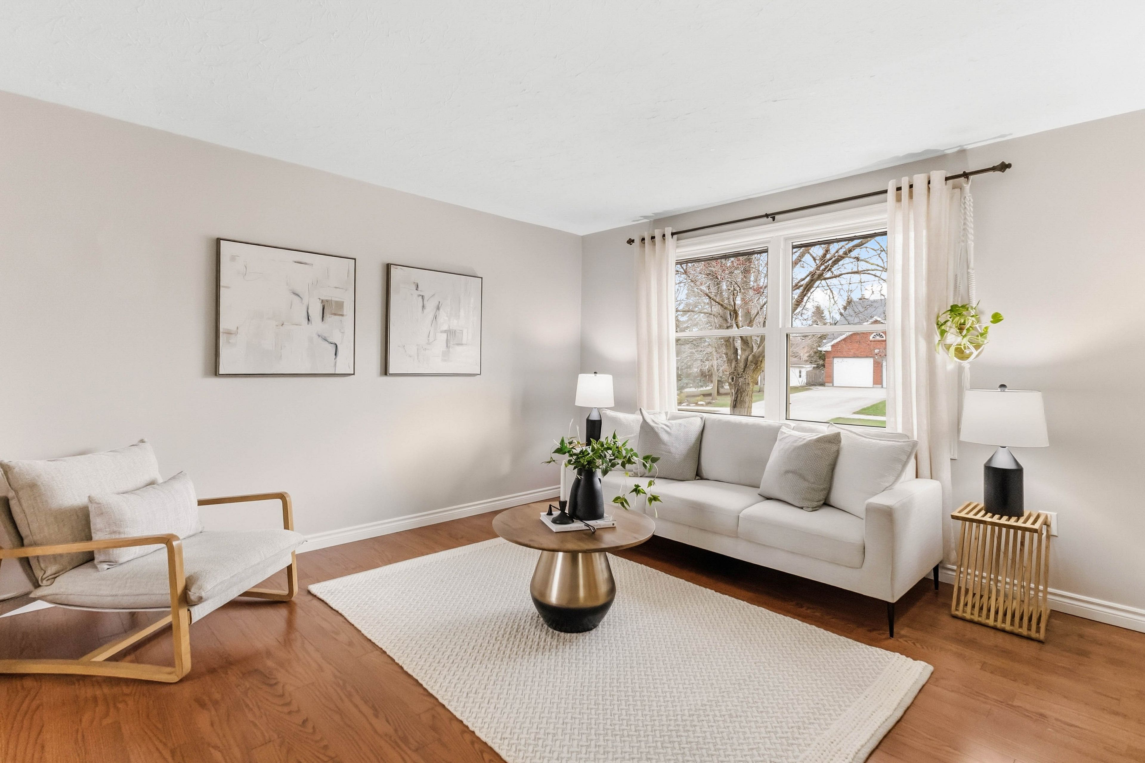 • Bright living room with hardwood floors for a welcoming atmosphere.