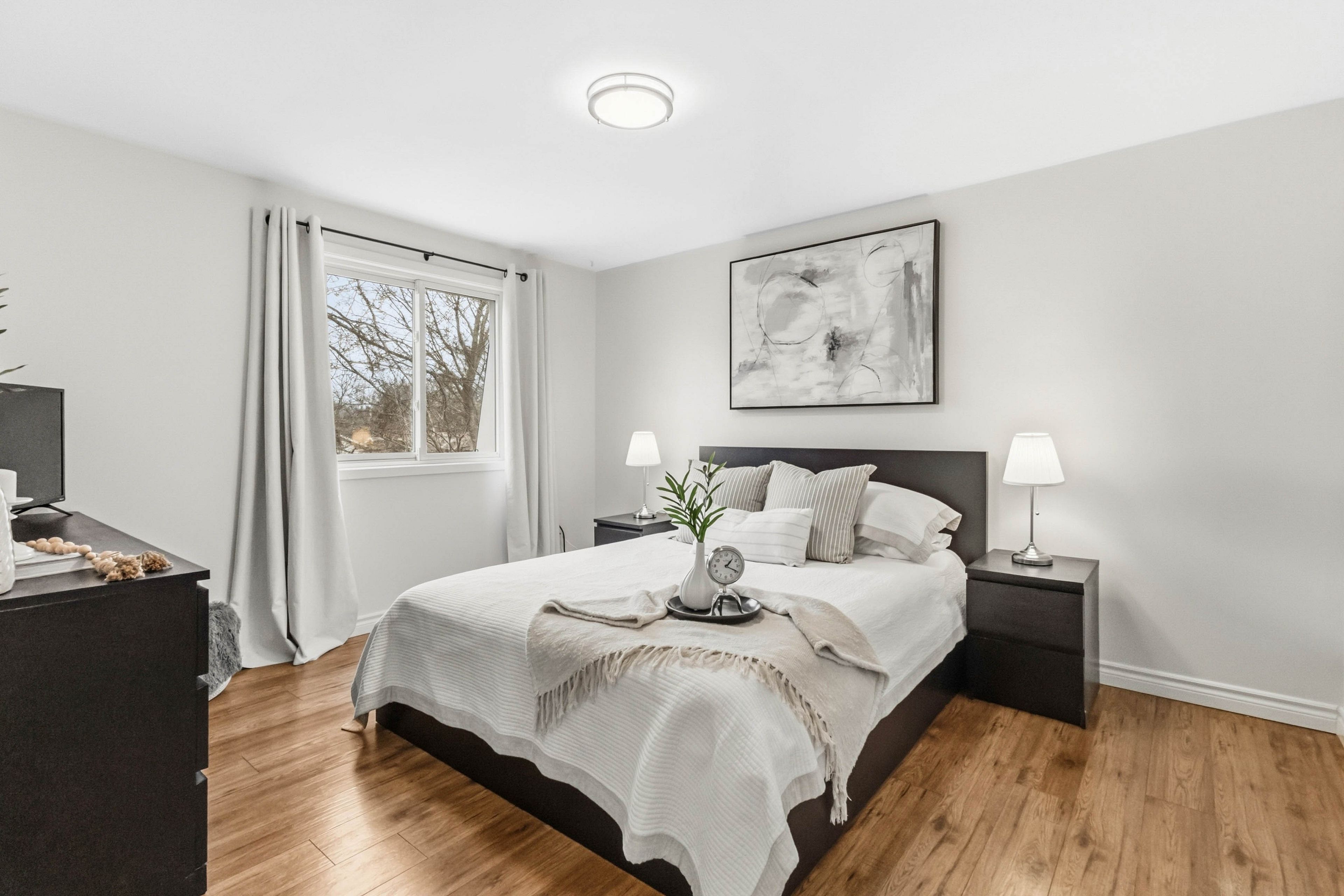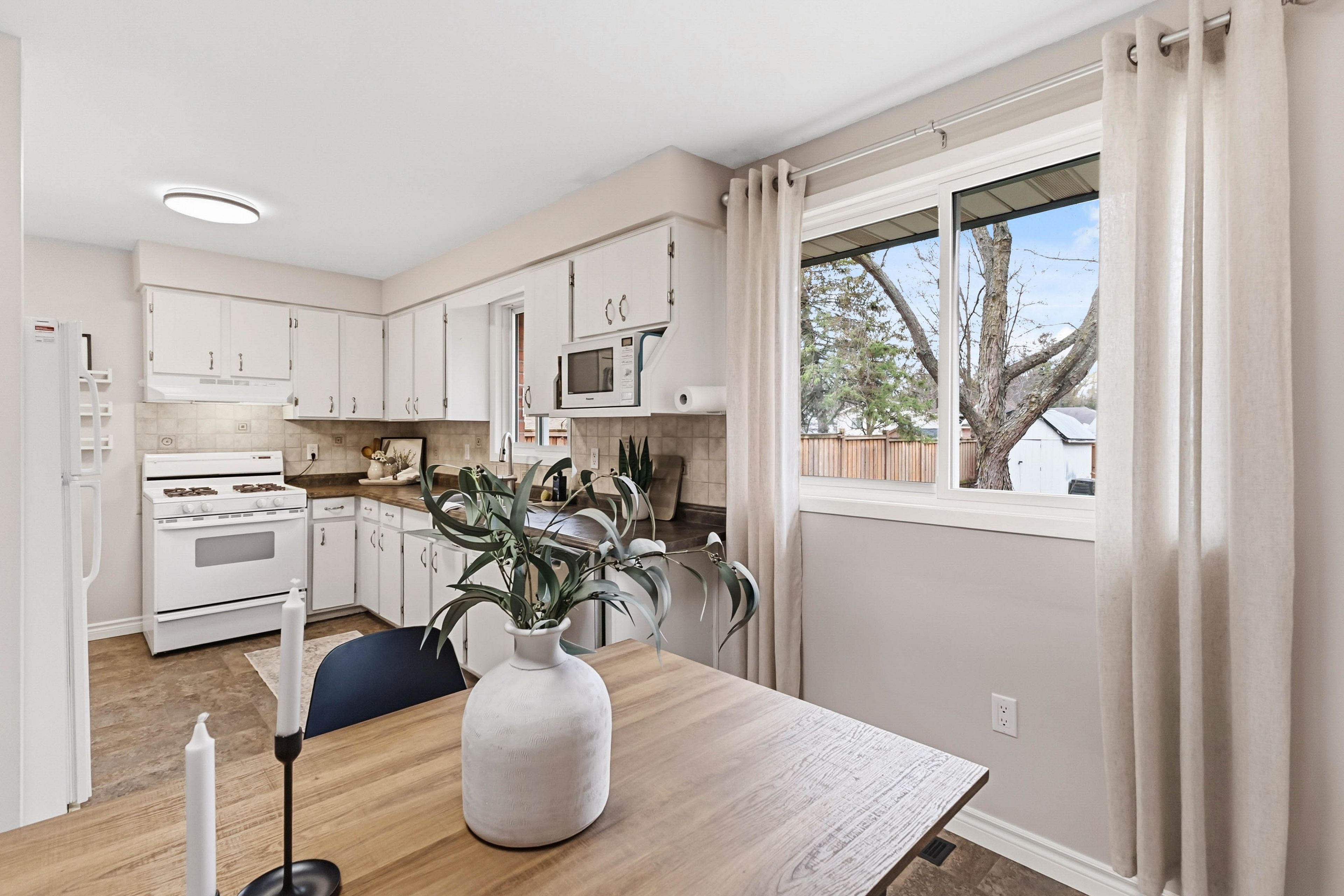 Welcome to this beautifully maintained two-storey semi-detached home, ideally located in an established and highly desirable family-friendly neighbourhood close to excellent schools. The bright and inviting living room features beautiful hardwood floors, while the spacious eat-in kitchen offers updated flooring and plenty of room for family gatherings. Upstairs, you'll find three well-proportioned bedrooms, each thoughtfully designed with ample closet space and even a charming window seat in the both front bedrooms. The partially finished basement provides additional living space with a comfortable recreation room, along with a laundry area and generous storage. Step outside to a fully fenced, landscaped yard complete with a shed and a convenient sand point for lawn watering. Immaculately maintained and filled with natural light, this spotless home is truly turnkey and ready for its next owners.