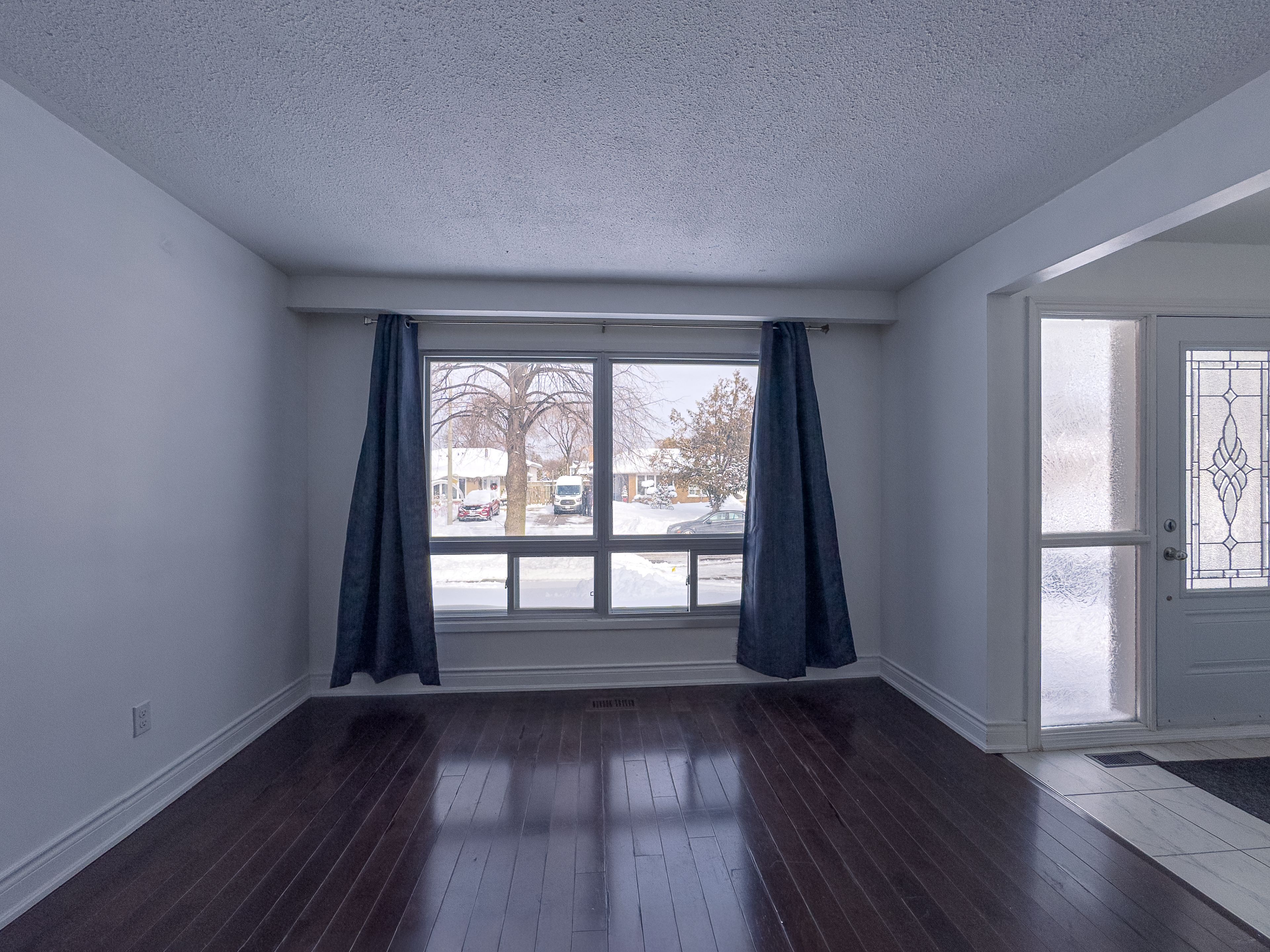 • Open concept living and dining area overlooking the front yard.