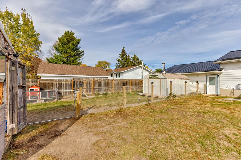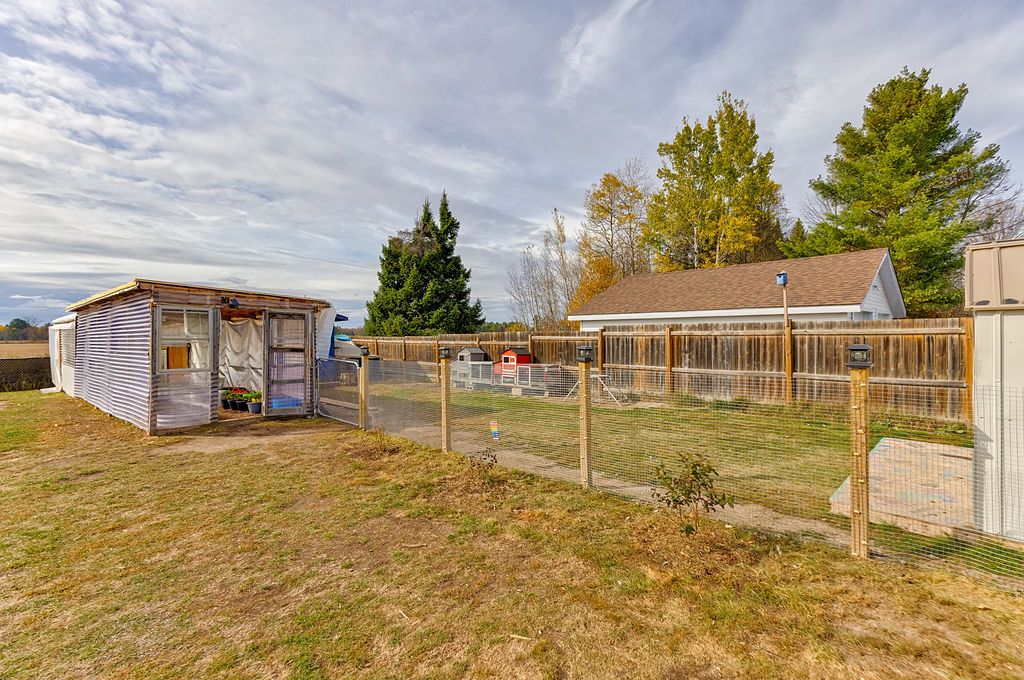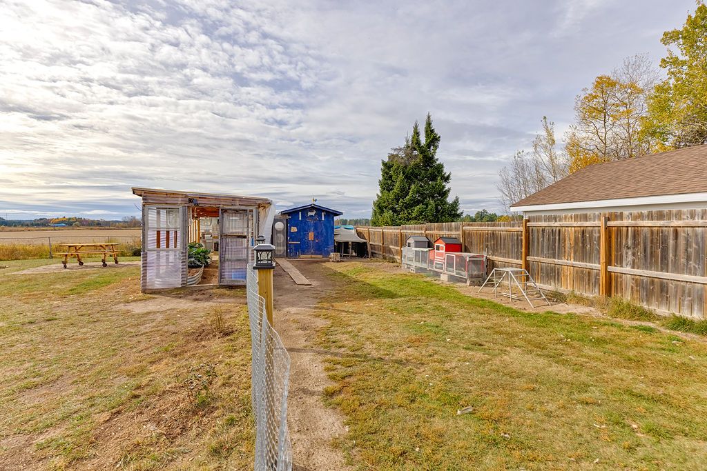 • Expansive fenced backyard with chicken coop and greenhouse options.
