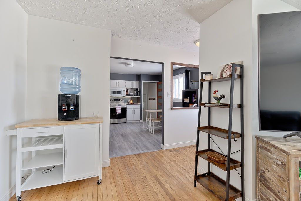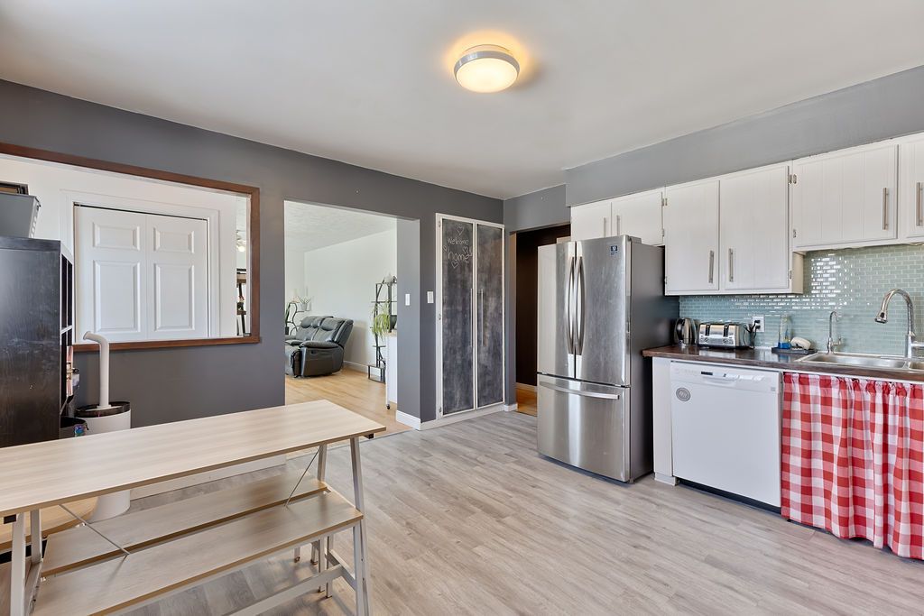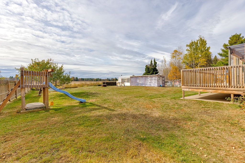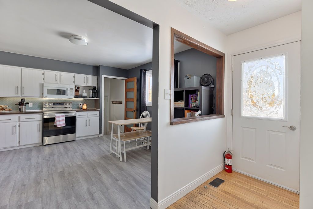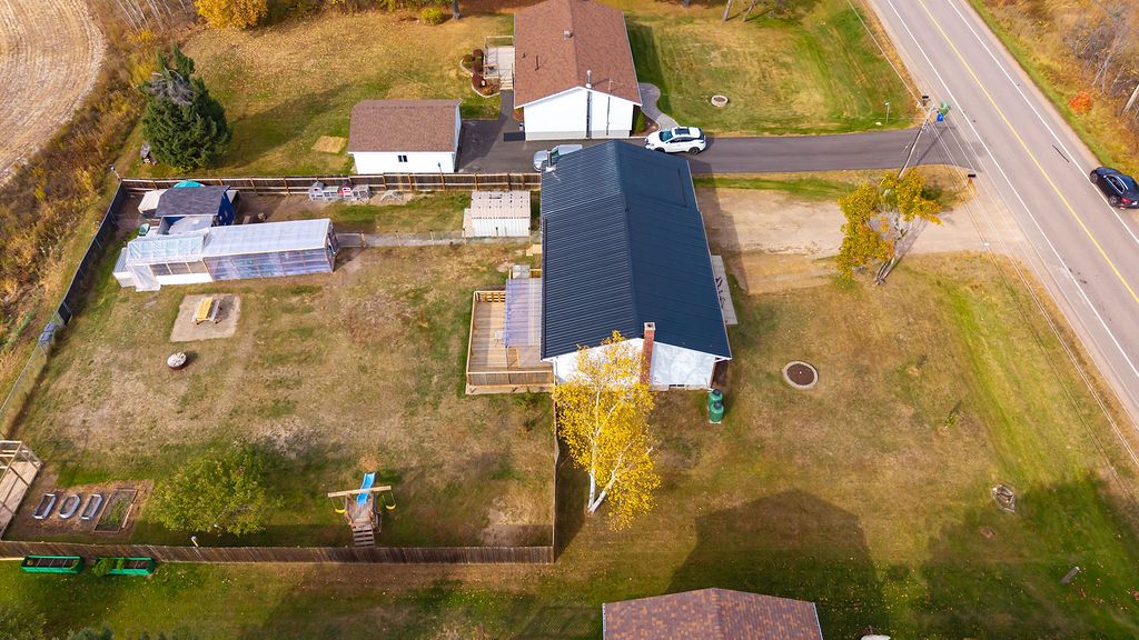 Here's your opportunity to step into homeownership with a property that truly offers space, comfort, and the beginnings of a homesteading lifestyle. Nestled along b-line and surrounded by open fields, this inviting 4-bedroom, 1-bath home blends rural charm with everyday convenience-just minutes from town and all amenities. Inside, you'll find a bright, move-in ready interior featuring a modern kitchen, updated bathroom, and warm hardwood floors throughout the main level. Three generously sized bedrooms are thoughtfully located on the same floor, making it ideal for families. The fully finished basement adds even more living space with a fourth bedroom, a cozy family room, and a large laundry/workshop area-perfect for hobbies or extra storage. Step outside and discover a backyard designed for both family living and self-sufficiency. Fully fenced and expansive, this property is ready for your homesteading dreams with a chicken coop, greenhouse, and plenty of room for gardens, play areas, or simply enjoying the peaceful surroundings. Kids and pets can roam safely while you take in the wide-open views of the neighbouring fields. A convenient breezeway connects the home to the attached garage, adding function and ease year-round. With a durable metal roof installed in 2015 and all appliances included, this home is truly turn-key. A rare blend of country living, family-friendly features, and close-to-town convenience-don't miss your chance to make it yours!
