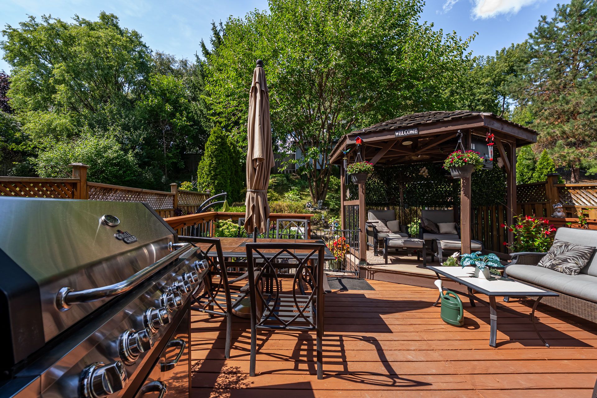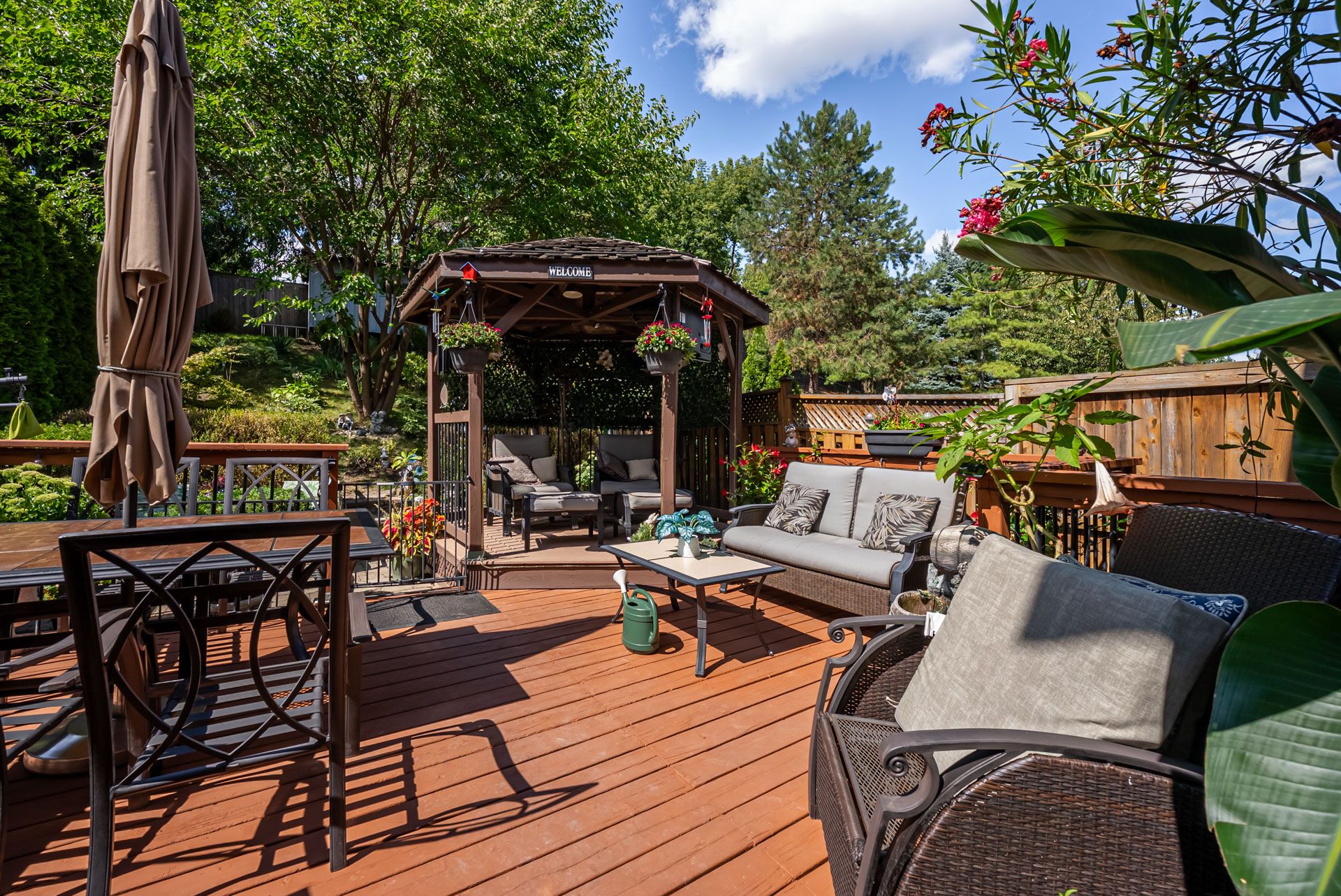 • Landscaped backyard with a large deck for entertaining and relaxing.