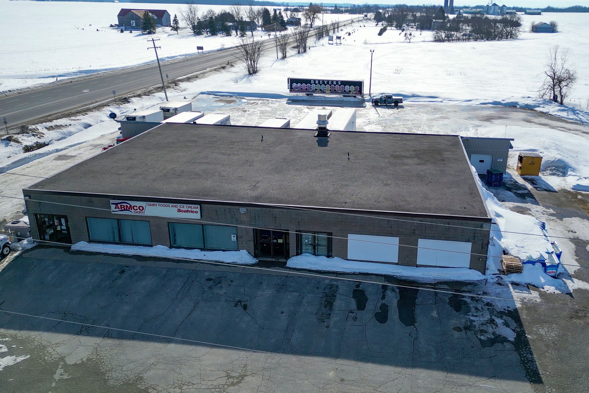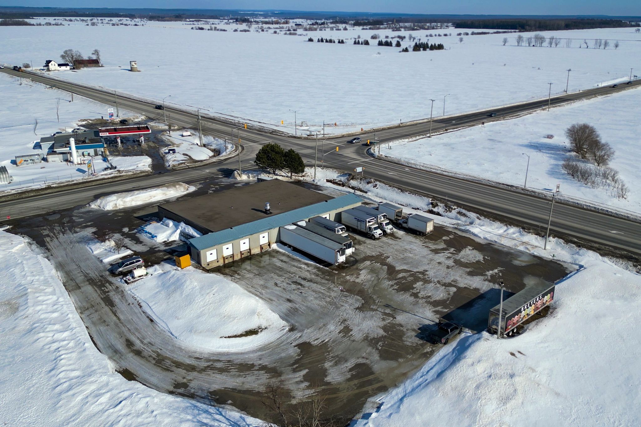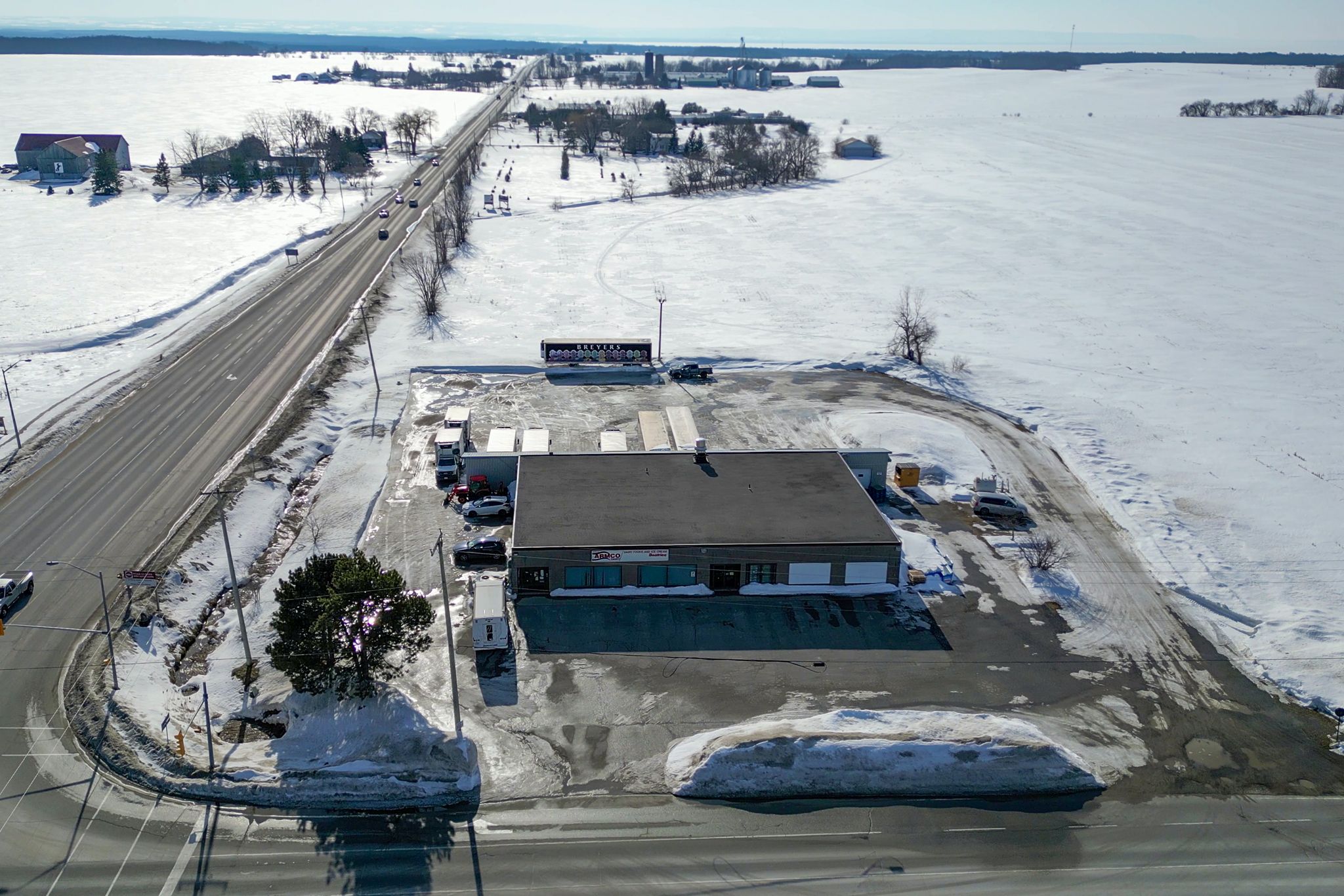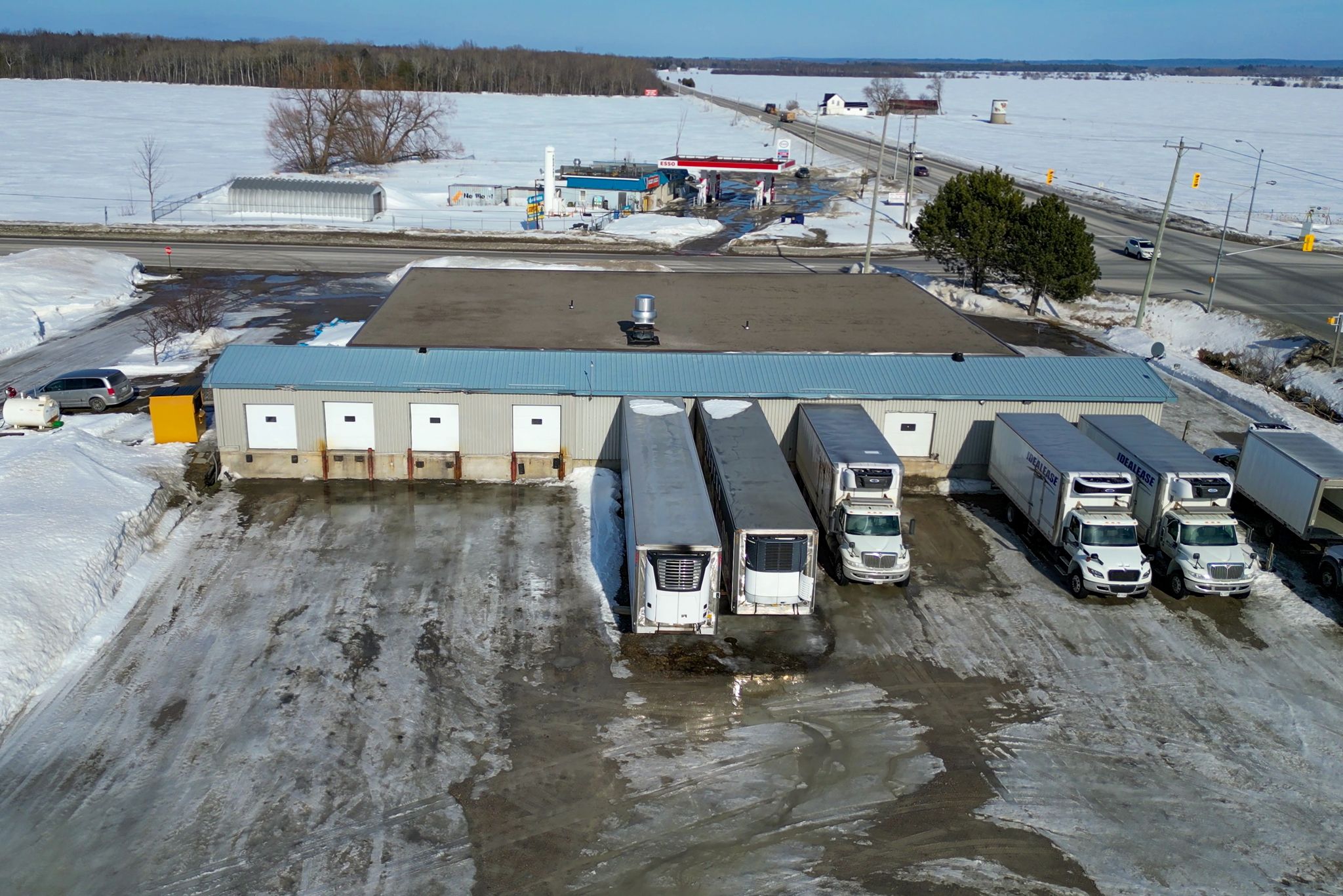 Land and building only. Located at the intersection of two high traffic roads, this property offers an excellent opportunity for future development, while enjoying passive income from the current owner, who occupies the property. The current owner is flexible and would be open to staying on as a tenant for the entire building for a few years, renting a portion of the building, or vacating the property, if that suits your needs. The property is strategically located on a highly visible corner with traffic lights between the communities of elmvale and wasaga beach, which continue to grow towards one another. Many tourists and cottagers pass through this intersection en-route to cottage areas, such as tiny beaches and wasaga beach, as well as blue mountain. The existing building is over 8,000 square feet with loading docks with multiple doors and large walk in refrigerator and freezer rooms. The highway commercial zoning supports many uses, including gas stations, convenience stores, restaurants and coffee shops with or without a drive-through, repair garages and vehicle sales, building supply outlets, and many other possibilities.