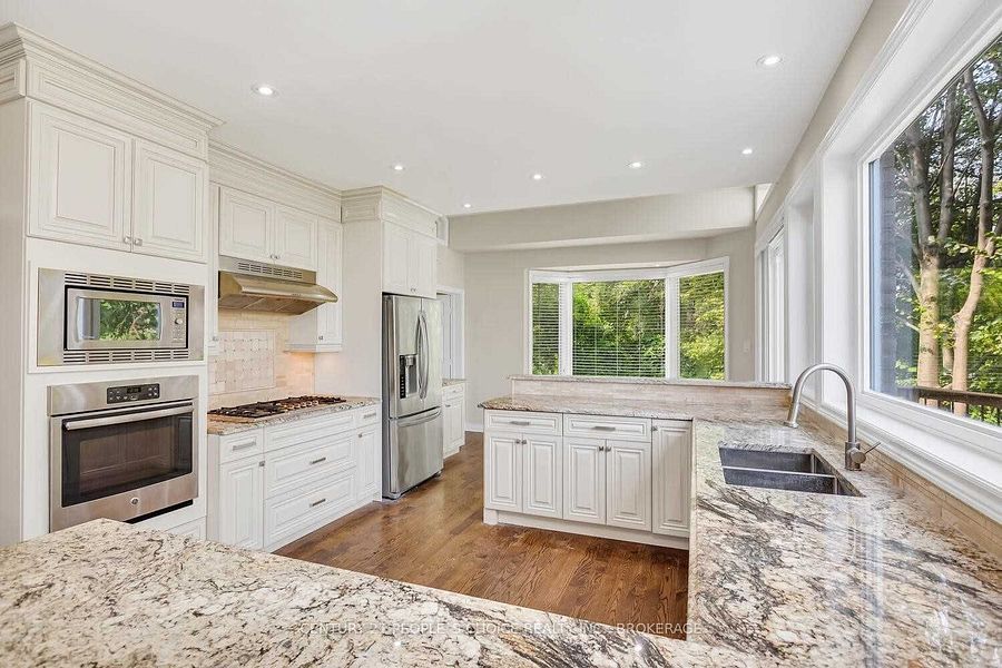 Spectacular lake views, executive water front custom built 4000 sqft above grade ,renovated from top to bottom,5 bed rooms,kit/fam room brkfst rm, master w/fireplace ,walk in closet, large ensuite bath+en suite dressing rm, separate nanny/guest suite w/private staircase ,adjacent to conservation area with creek ,located at end of quit and private court ,gourmet kitchen with large windows with lake view.